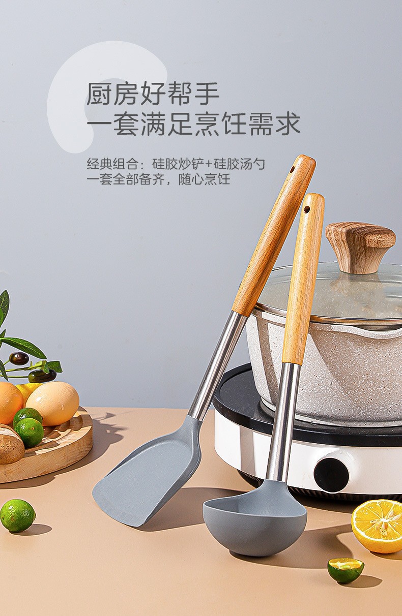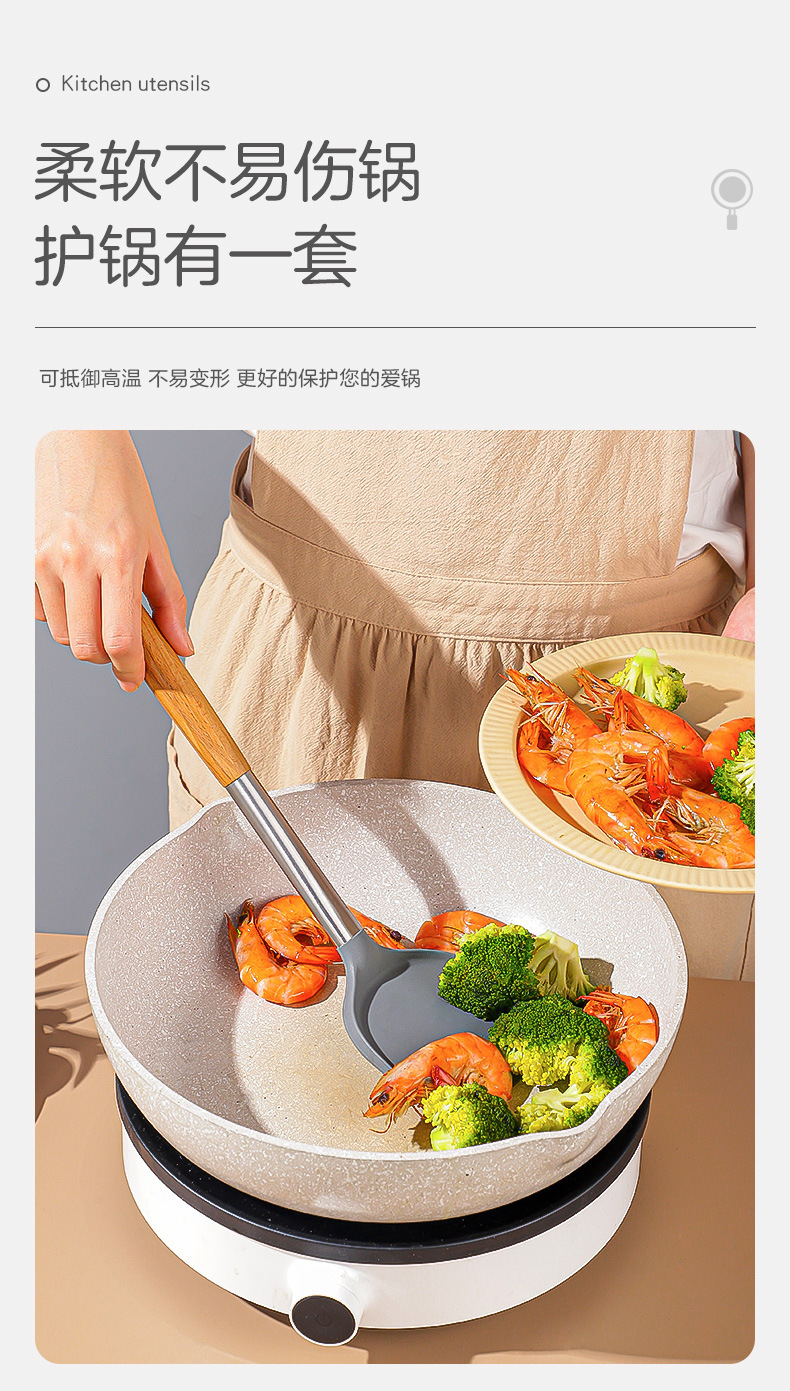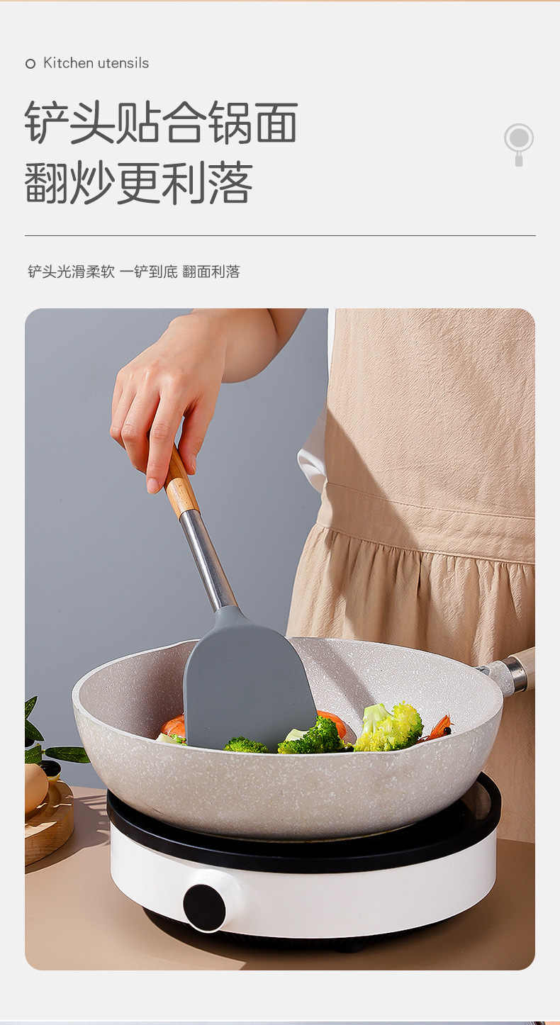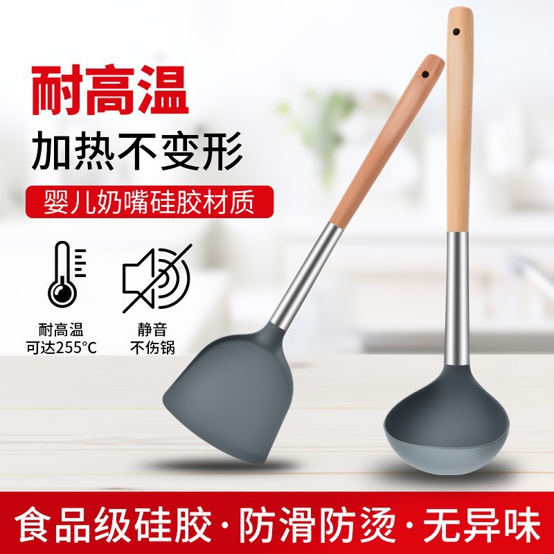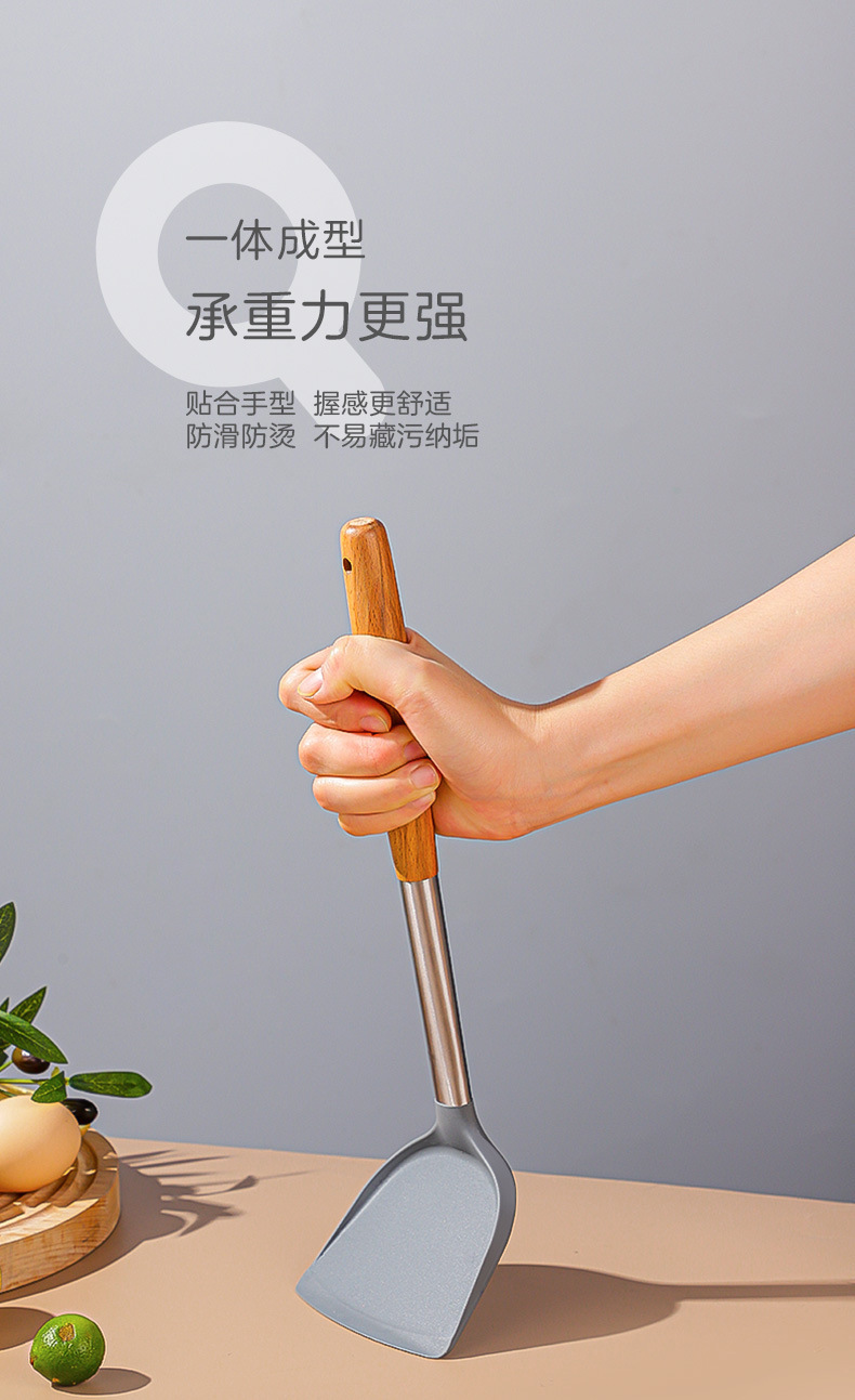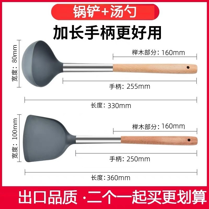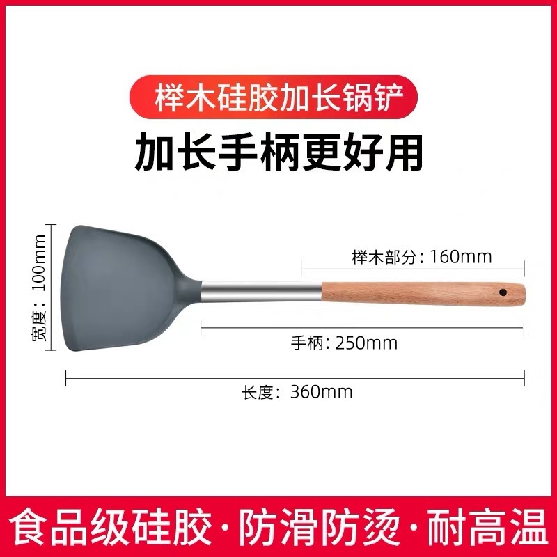 严选硅胶锅铲加长木柄耐热易清洗家用炒菜铲不粘锅专用套装跨境