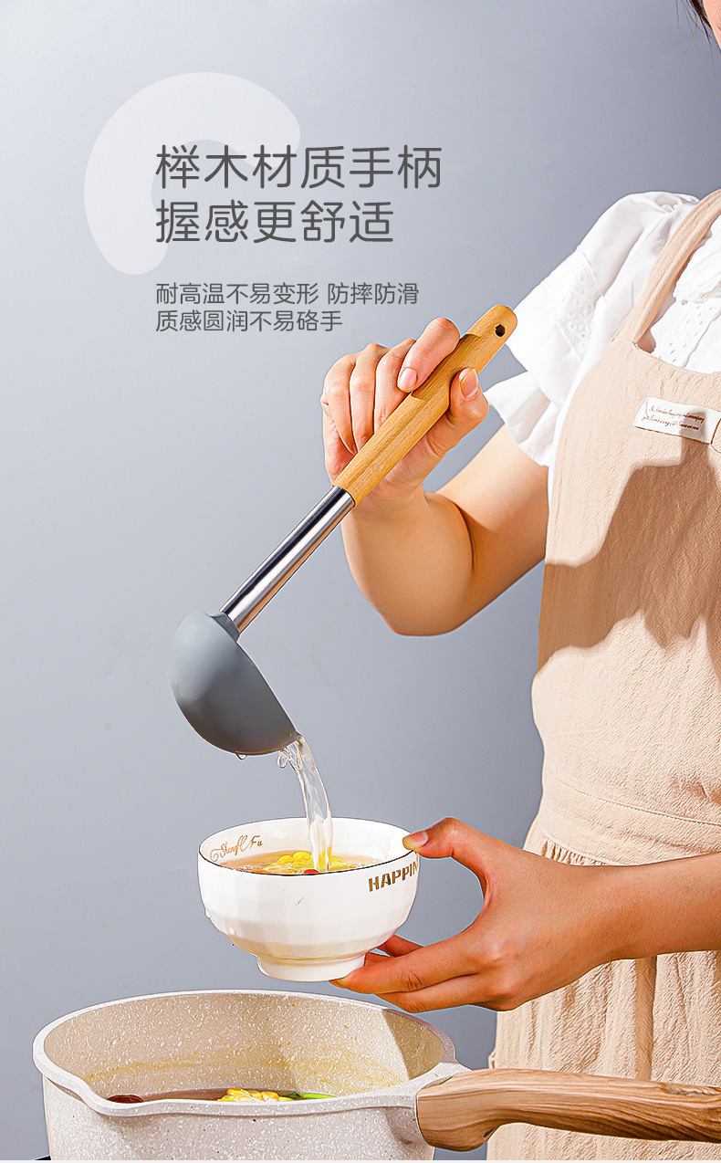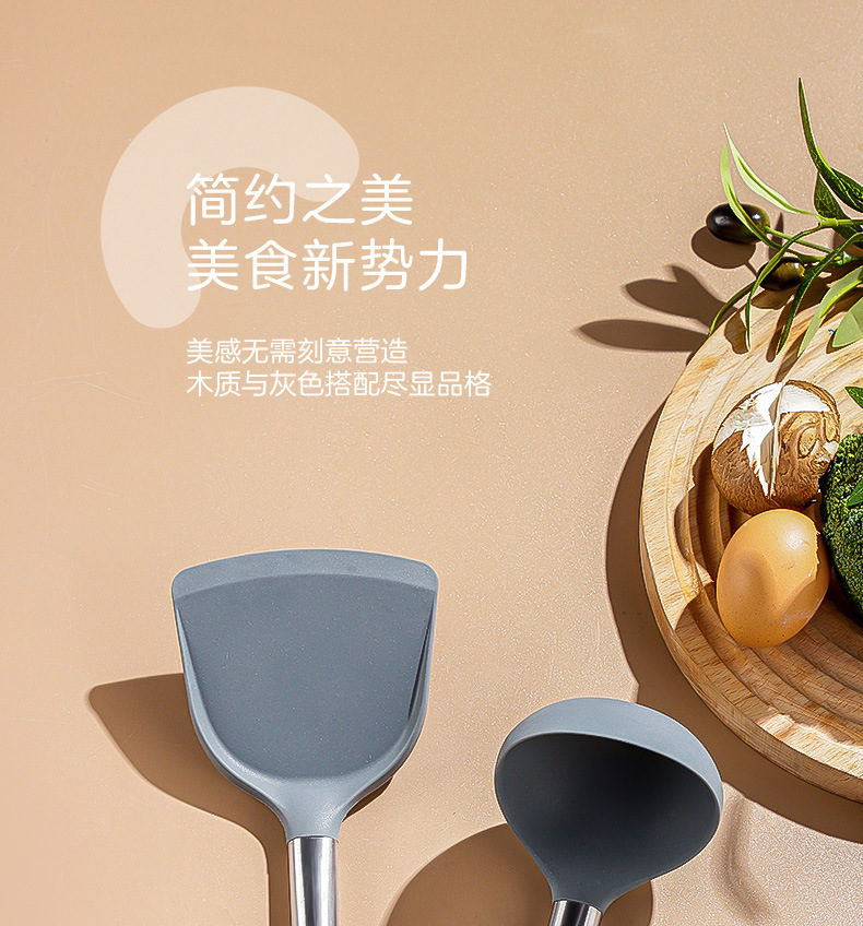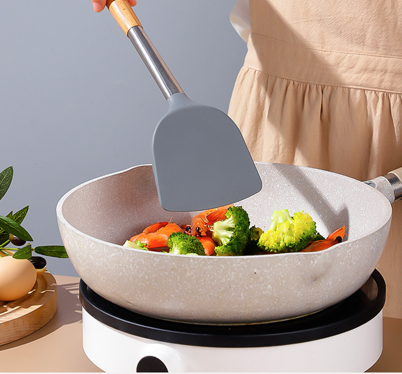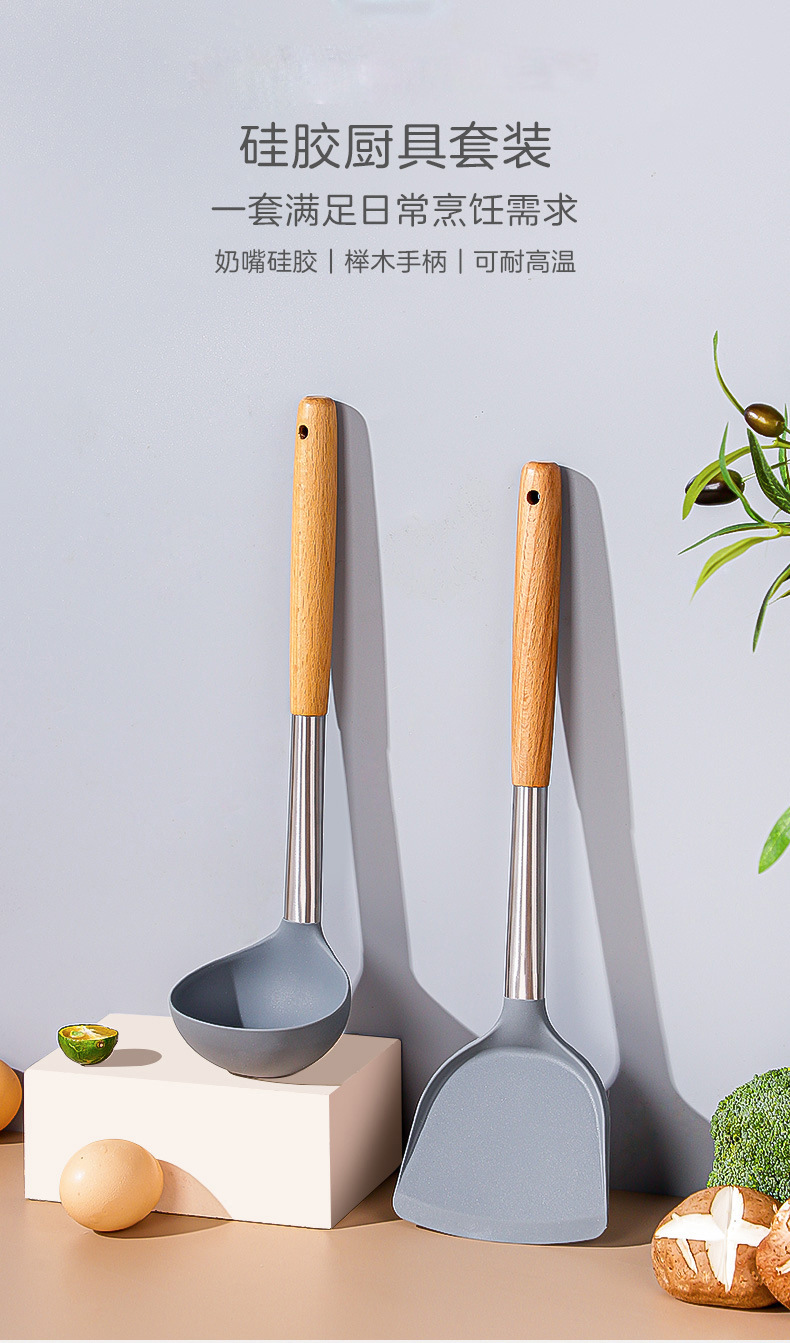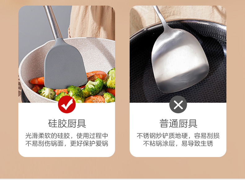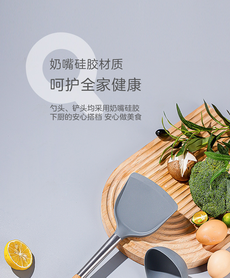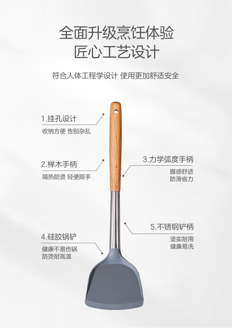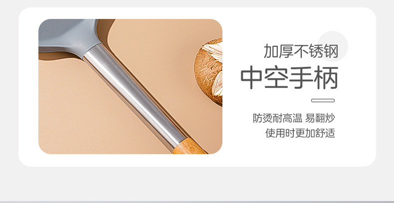 严选硅胶锅铲加长木柄耐热易清洗家用炒菜铲不粘锅专用套装跨境