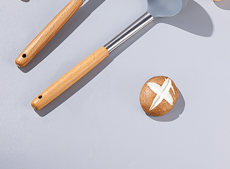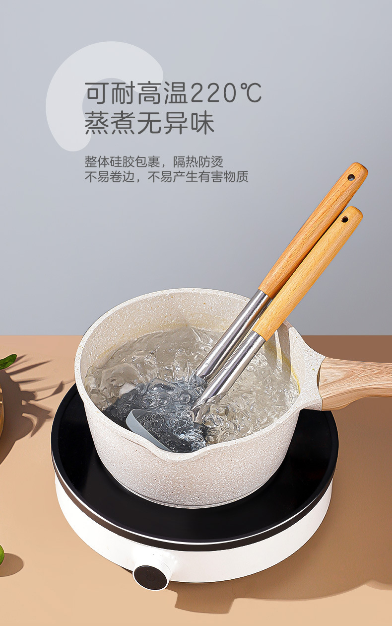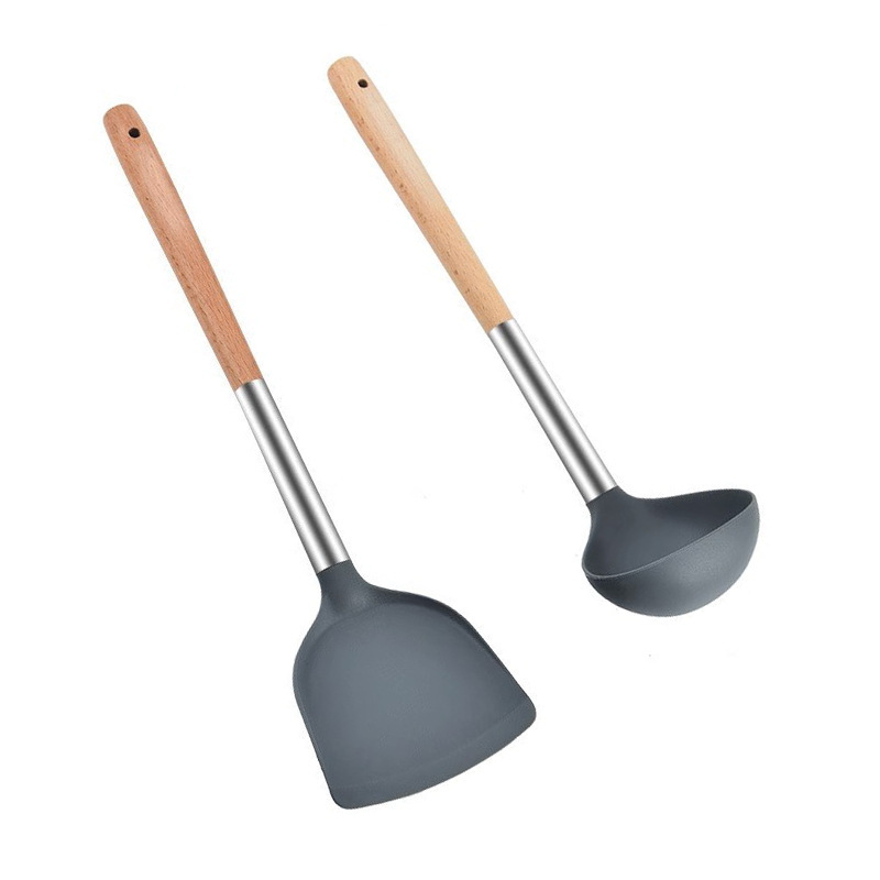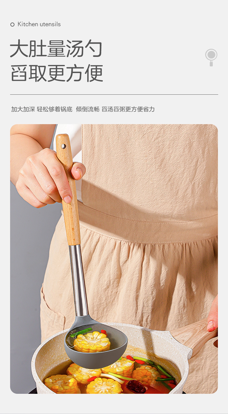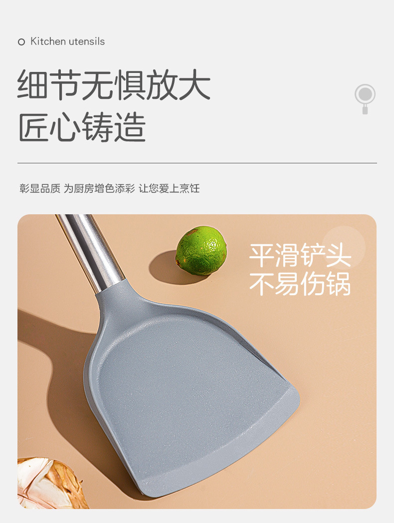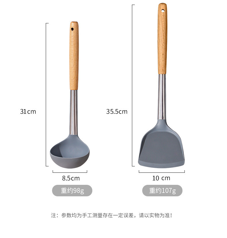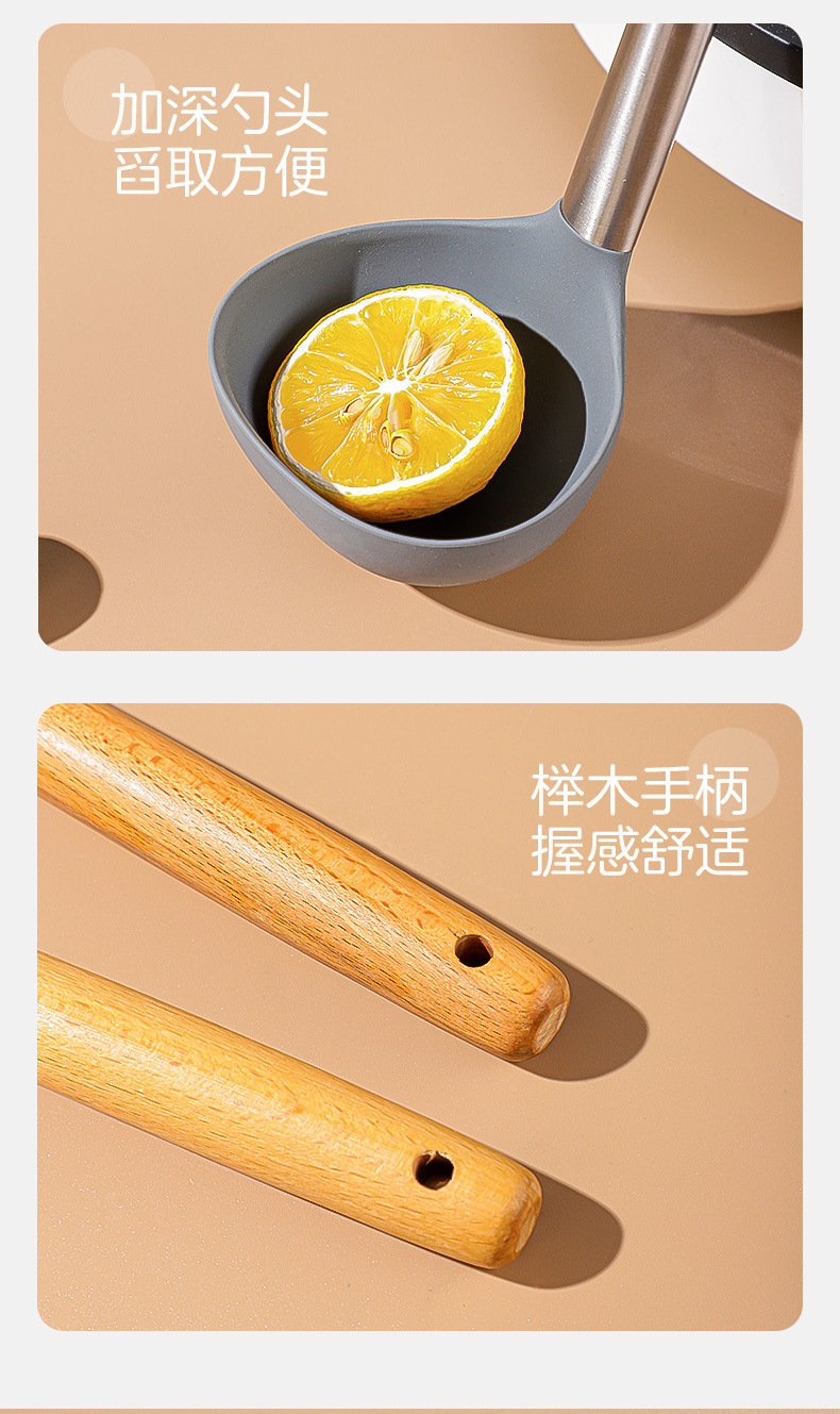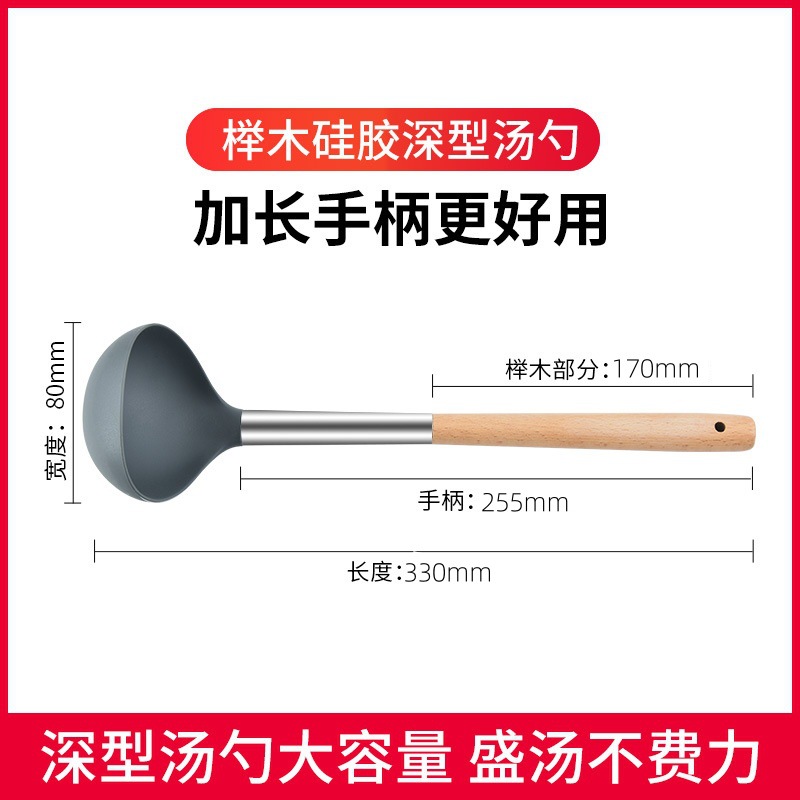 严选硅胶锅铲加长木柄耐热易清洗家用炒菜铲不粘锅专用套装跨境