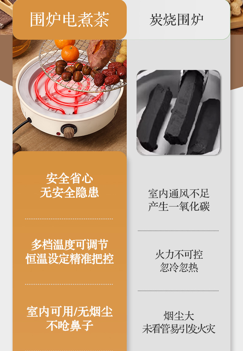 电围炉电烤煮茶烧烤一体多功能蒸煮茶壶家用烧烤电炉