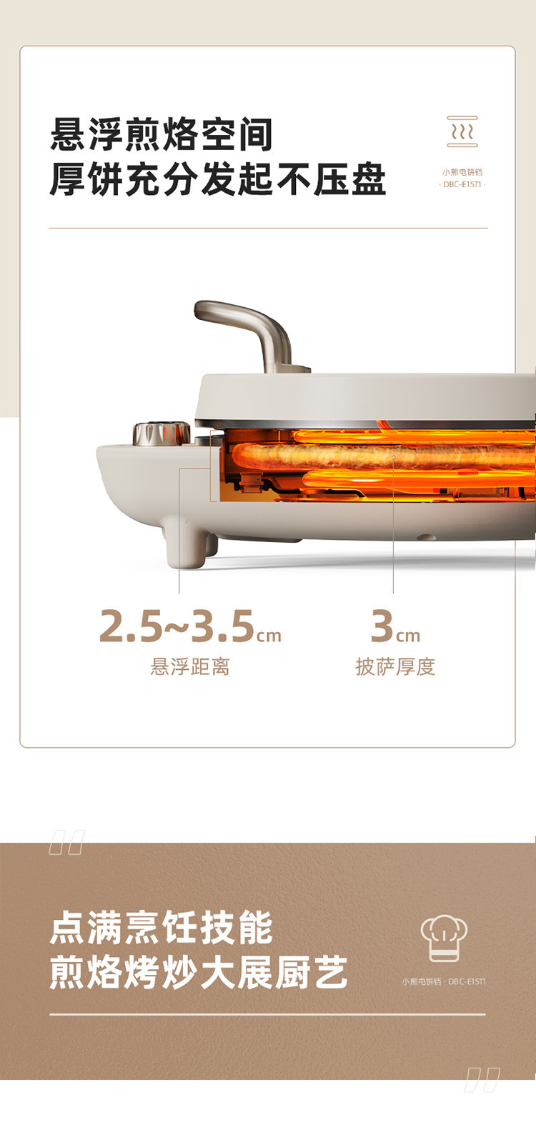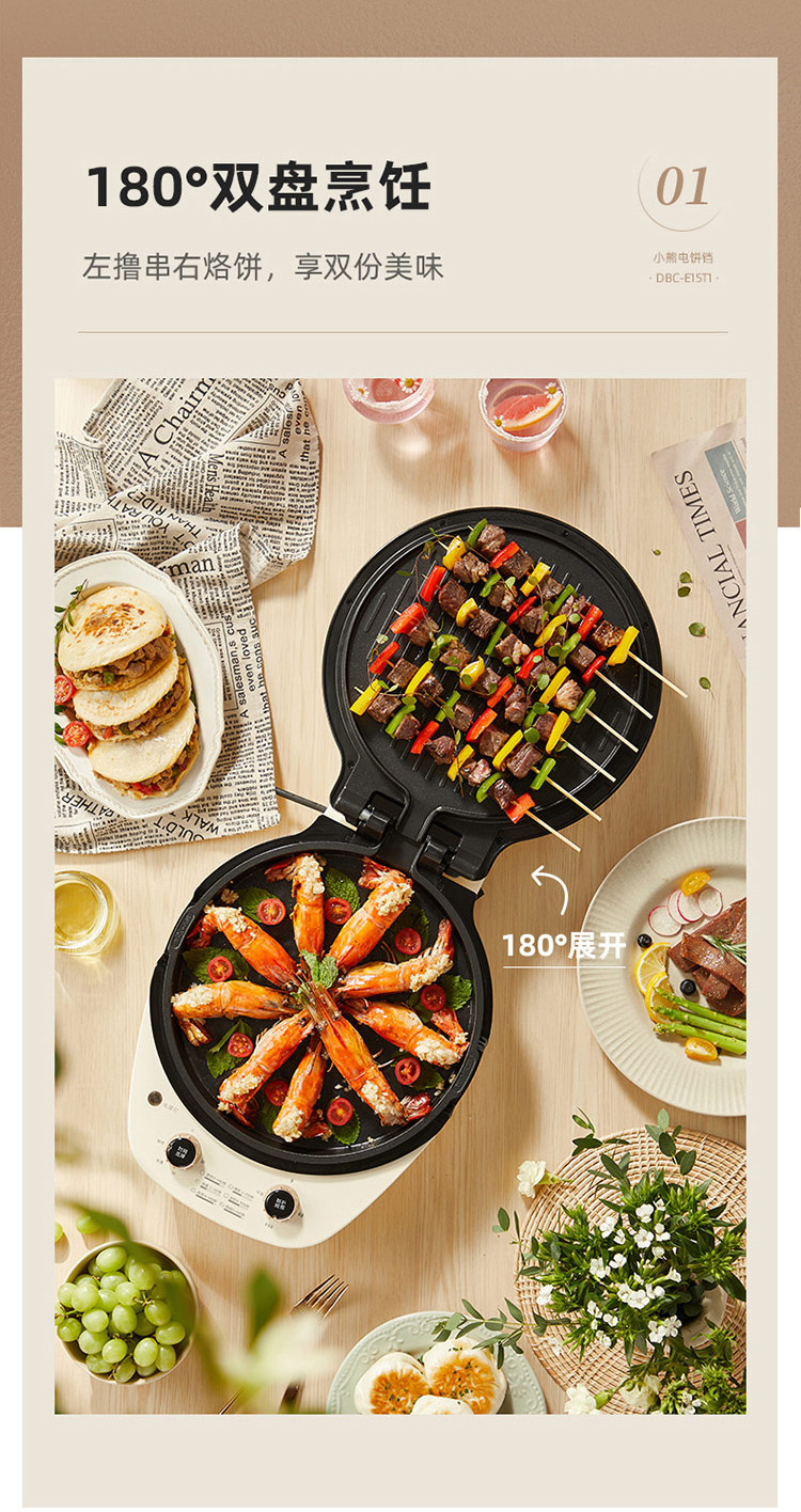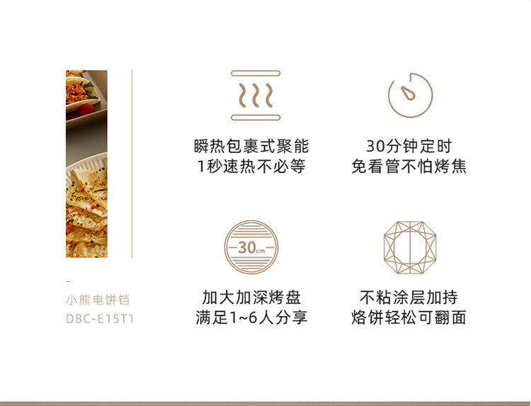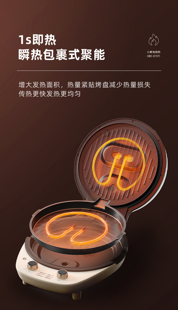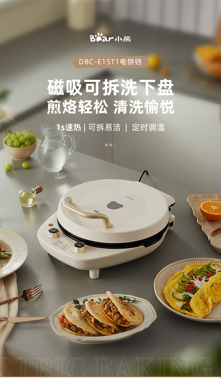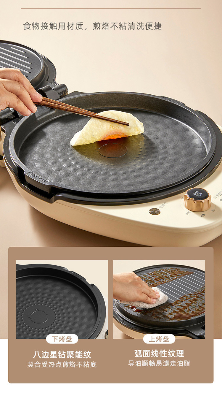 Bear/小熊 电饼铛深烤盘可拆洗家用早餐煎烙饼双盘加热DBC-E15T1
