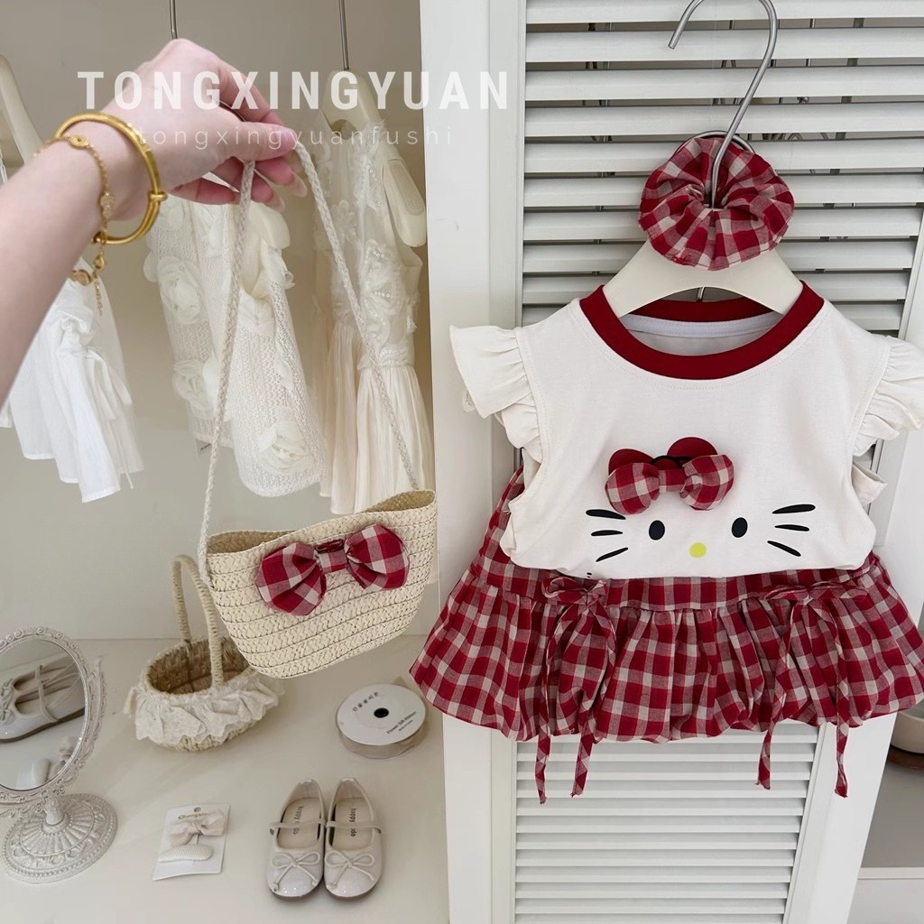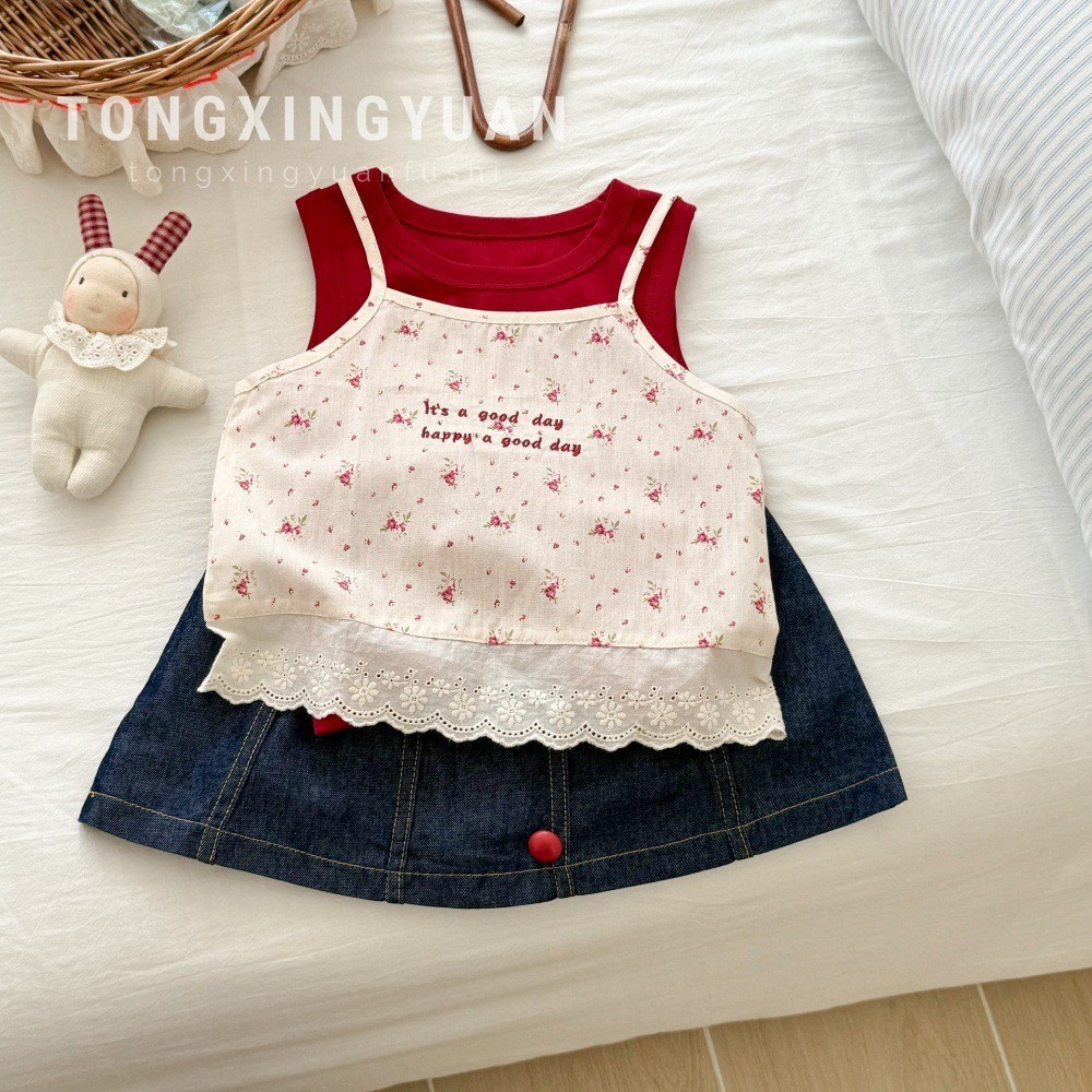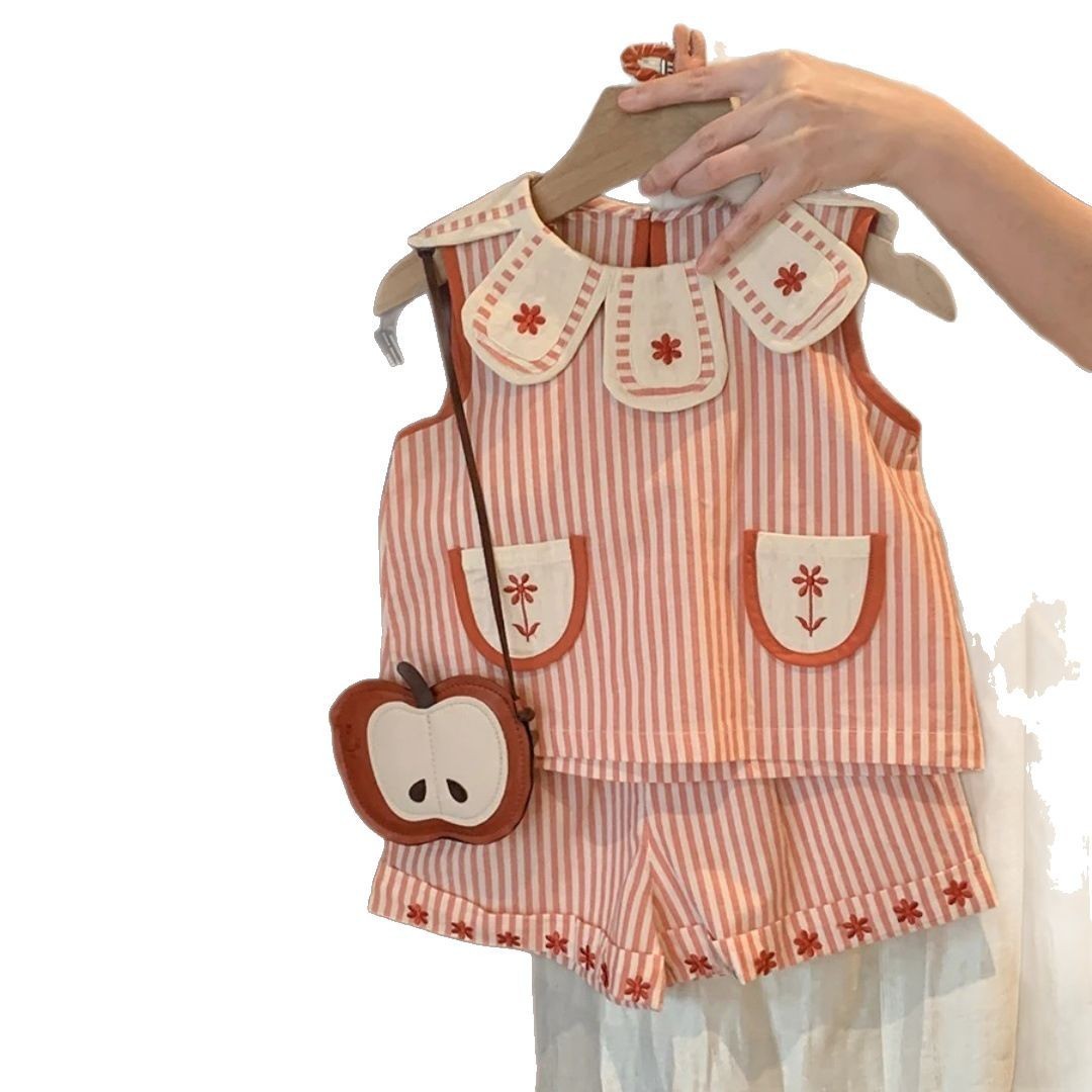 童星圆女童洋气套装夏天新款中小童女宝宝条纹短裤背心两件套韩版
