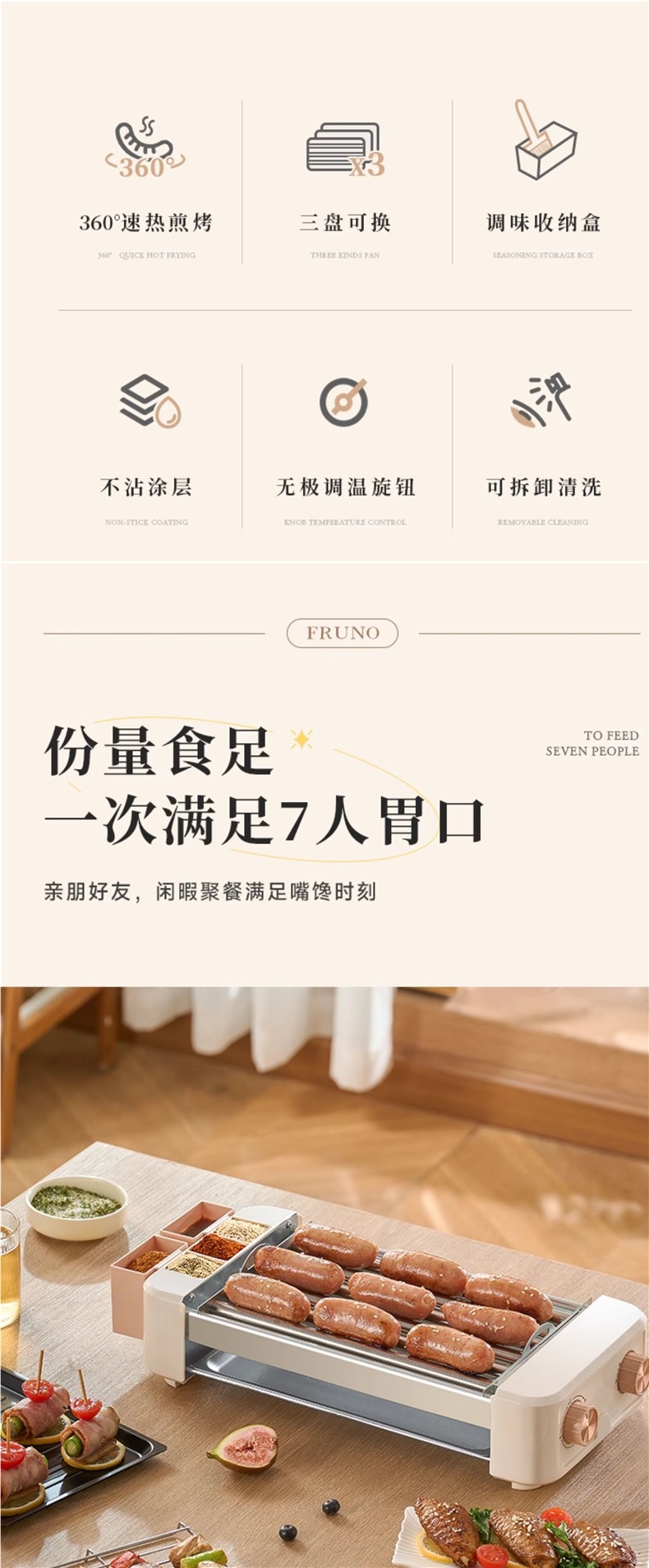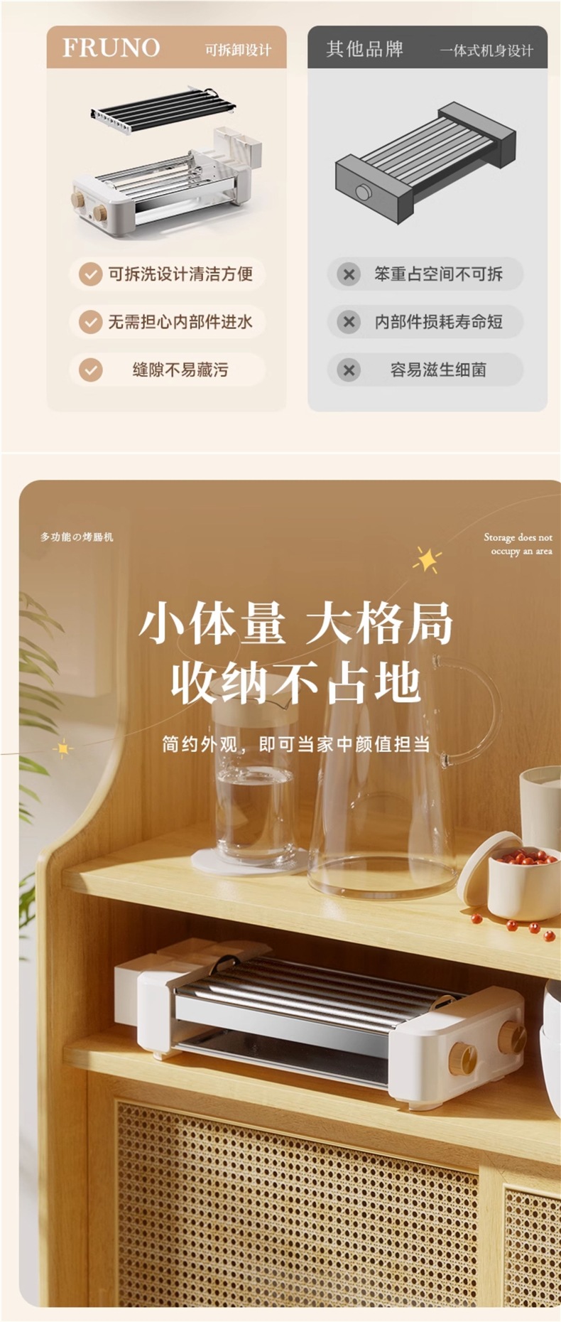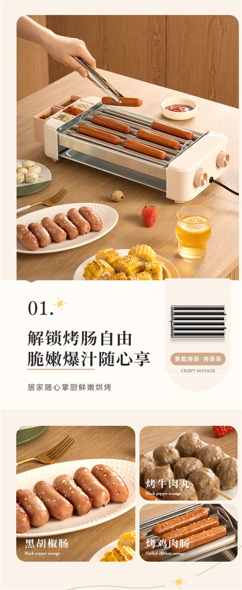 FRUNO烤肠机家用小型迷你宿舍全自动热狗机多功能烤香肠网红
