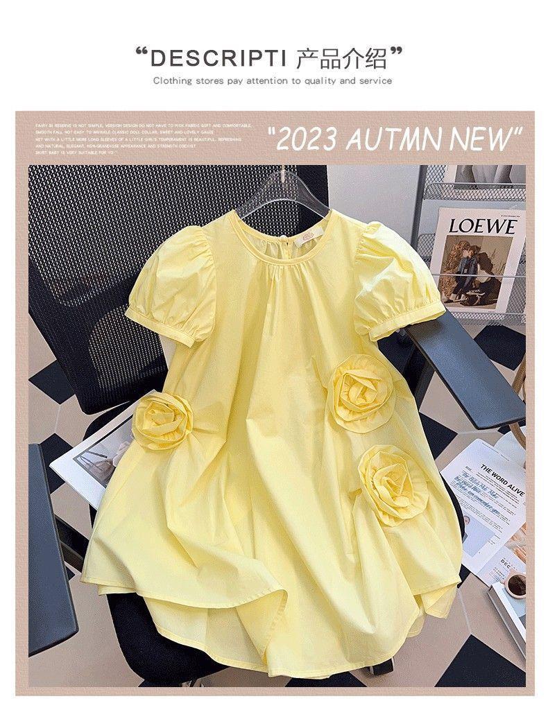 女童连衣裙夏装时髦洋气短袖女孩公主裙韩版薄款中大儿童休闲裙子