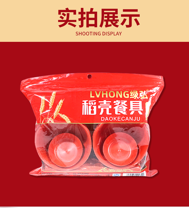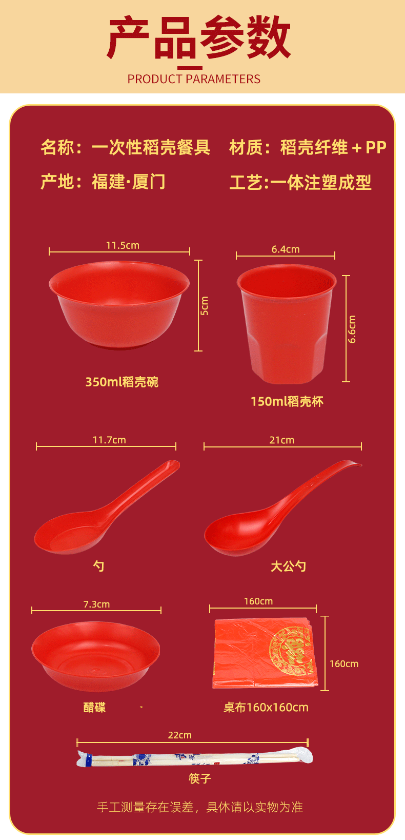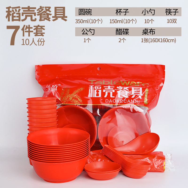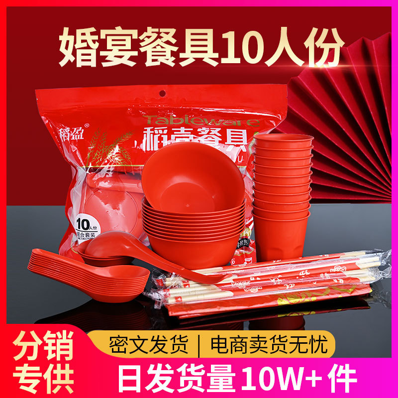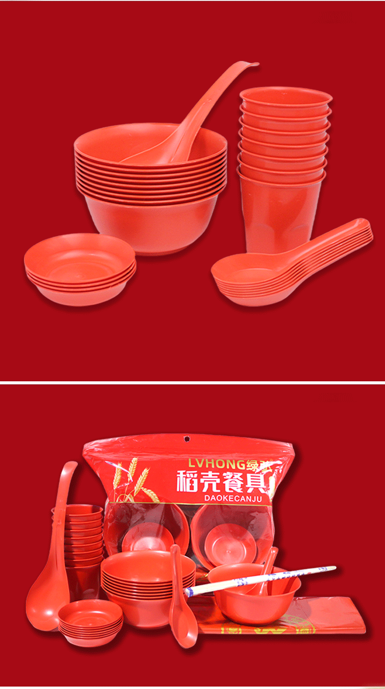 结婚一次性碗筷套装酒席稻壳餐具商用筷子碗红色质量好的一次性碗