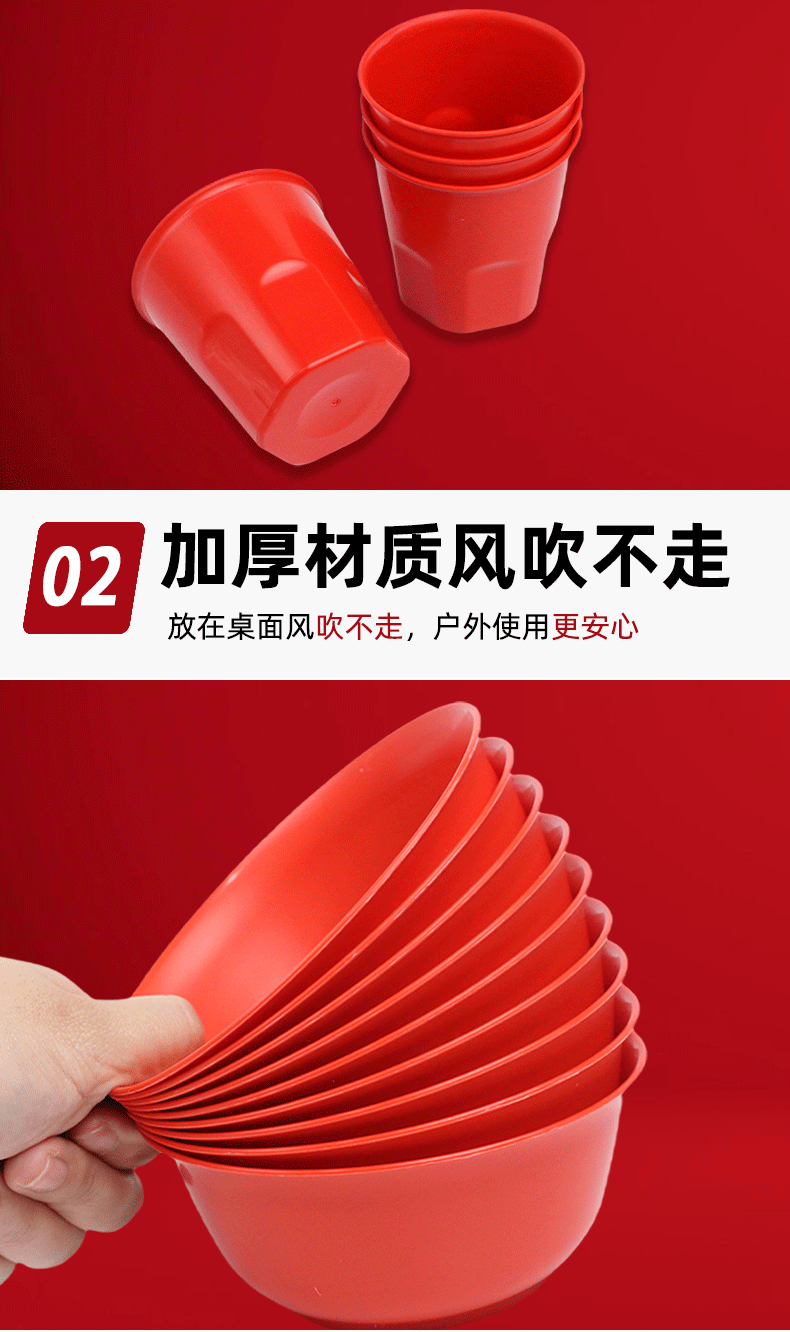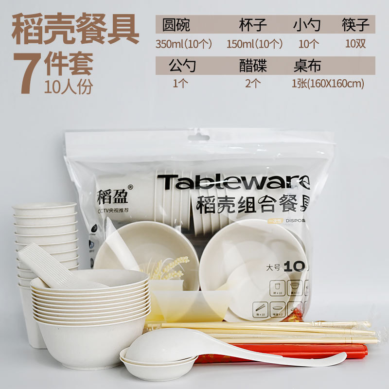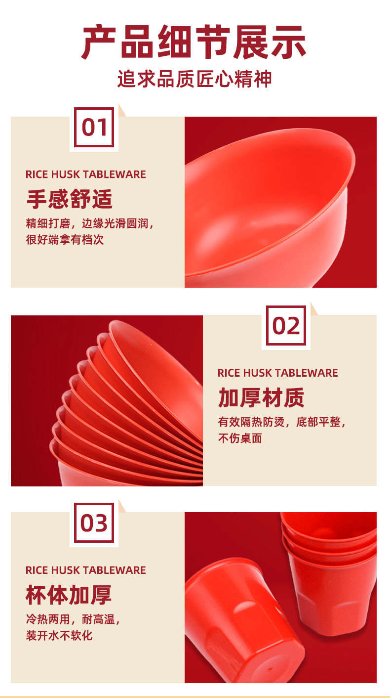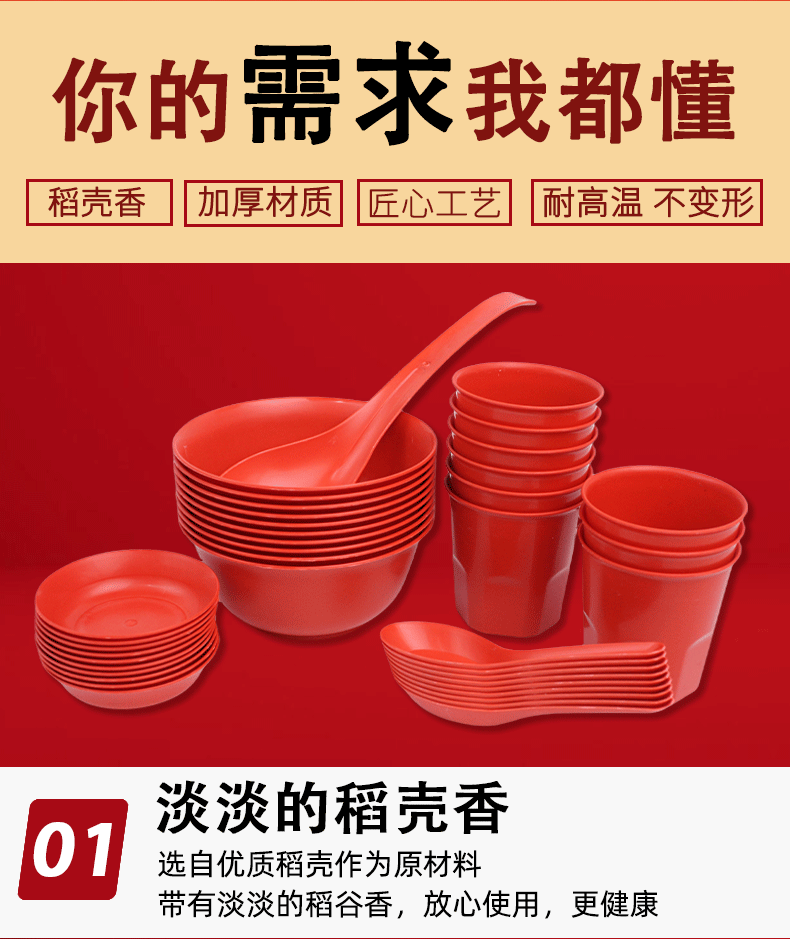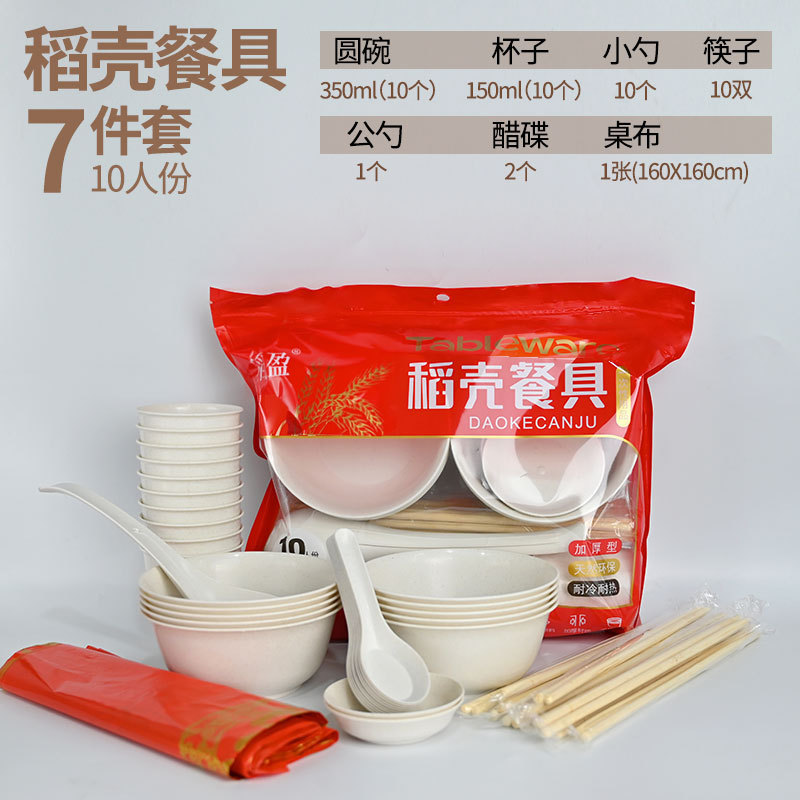 结婚一次性碗筷套装酒席稻壳餐具商用筷子碗红色质量好的一次性碗