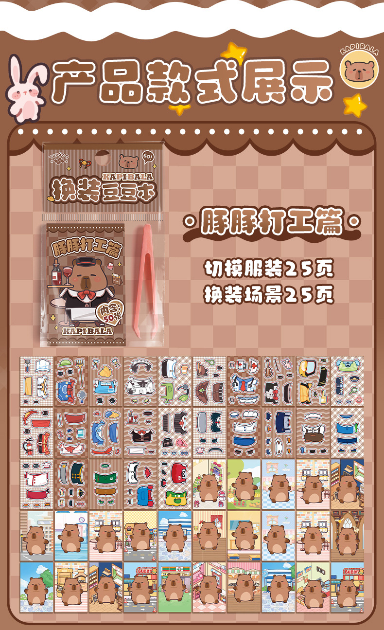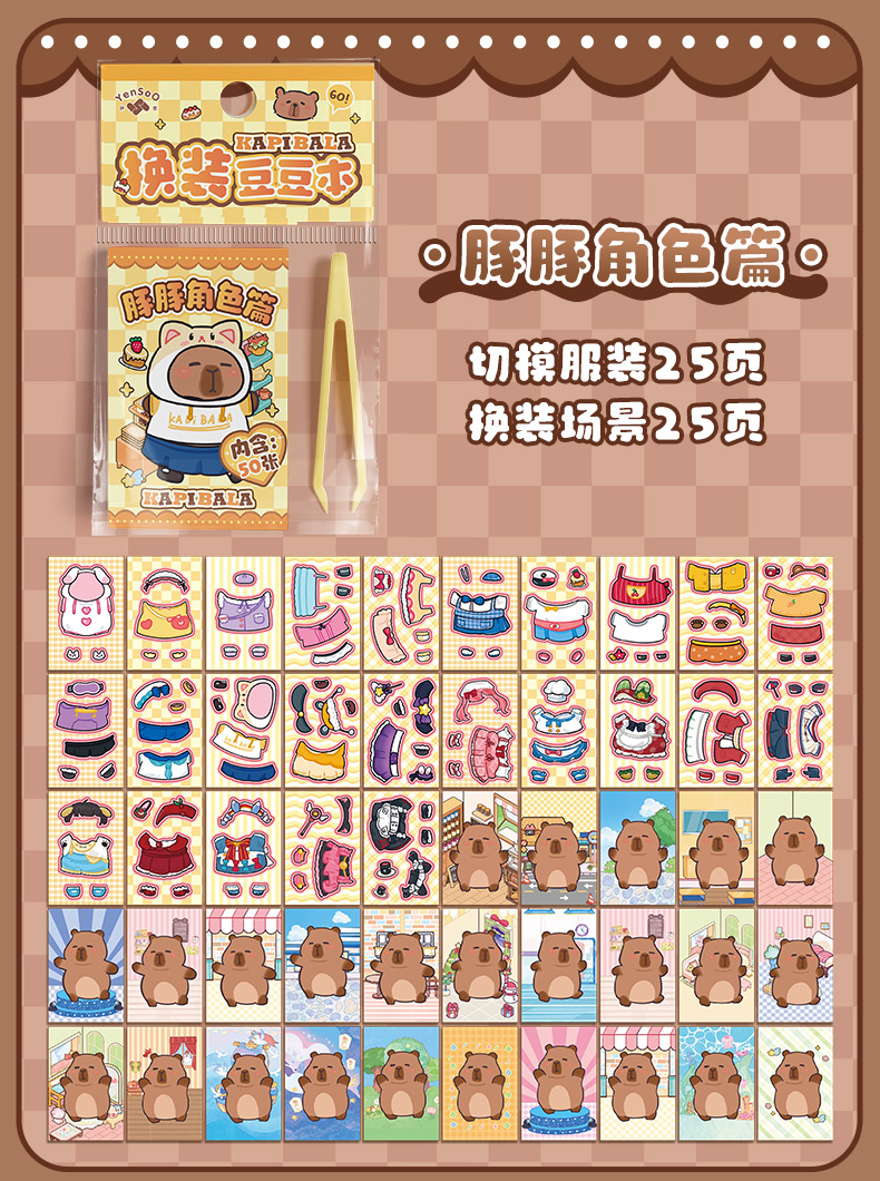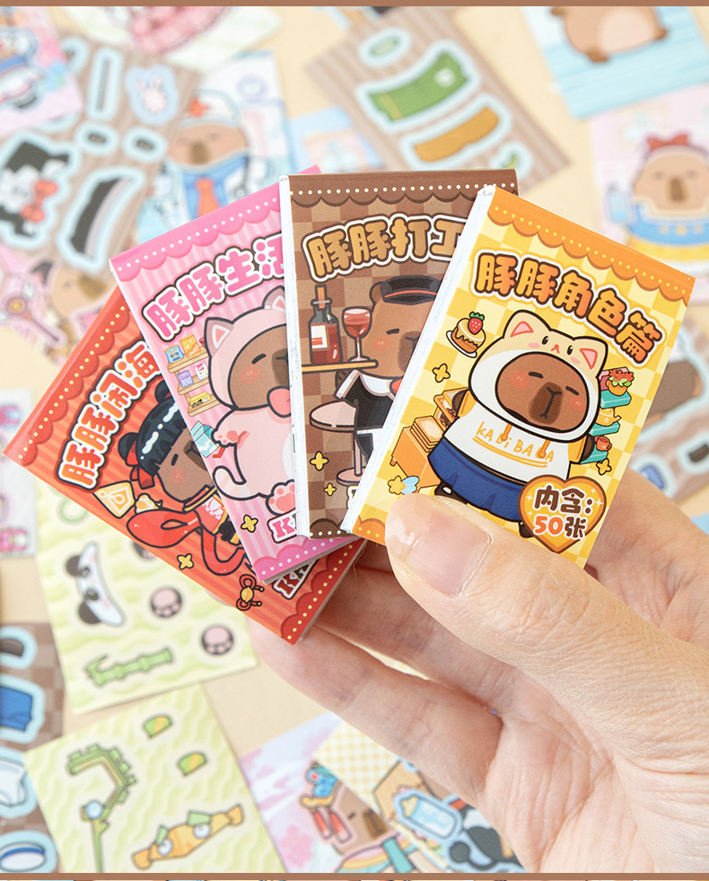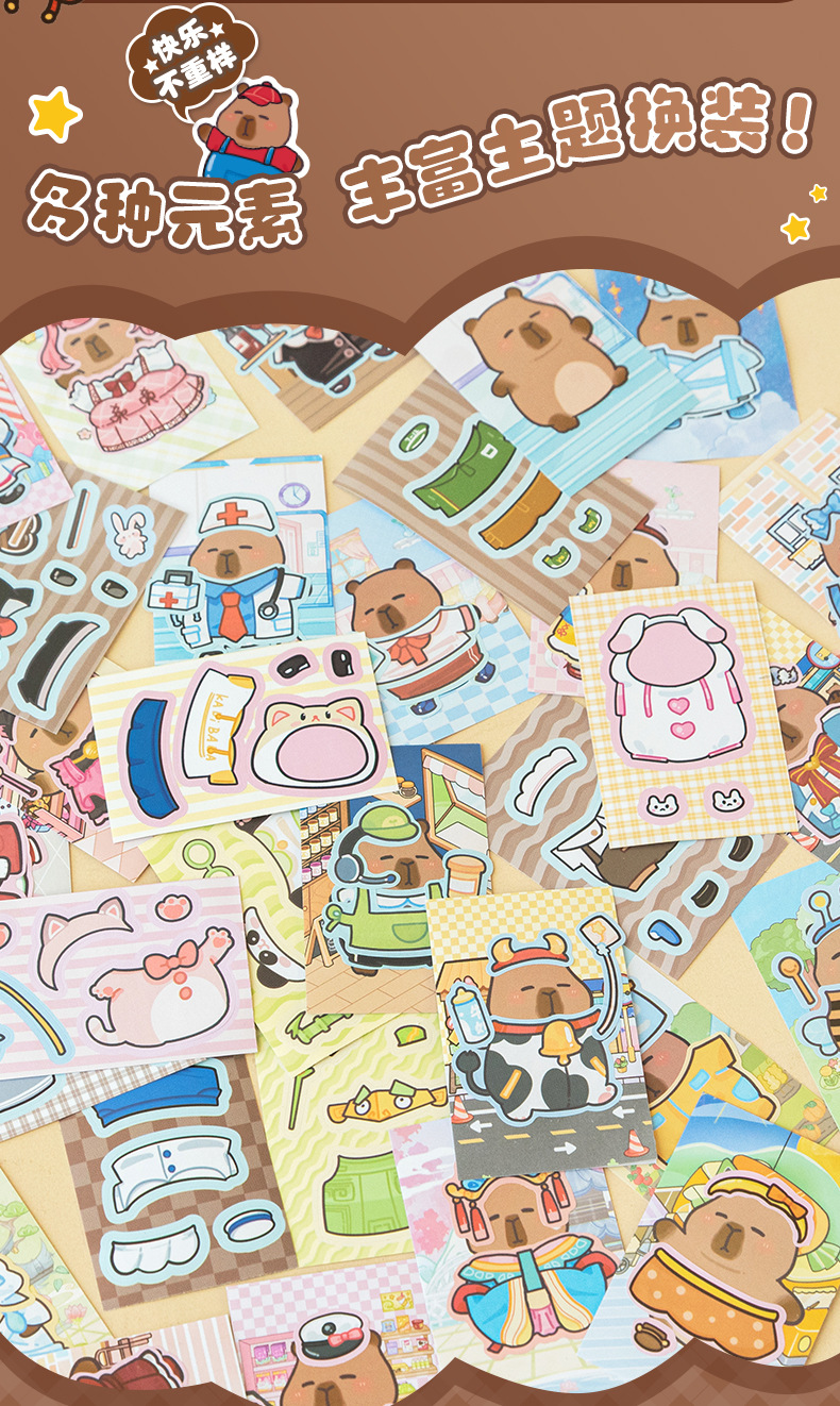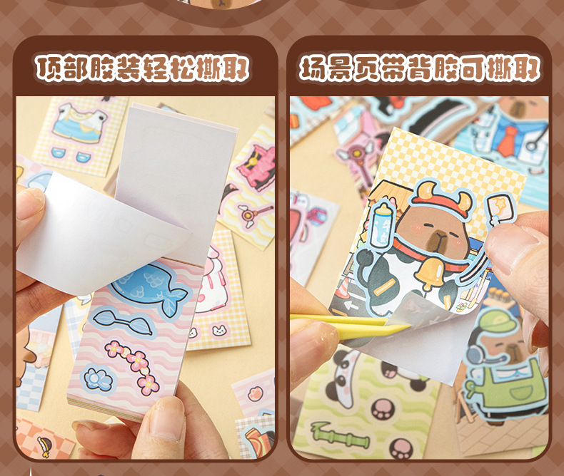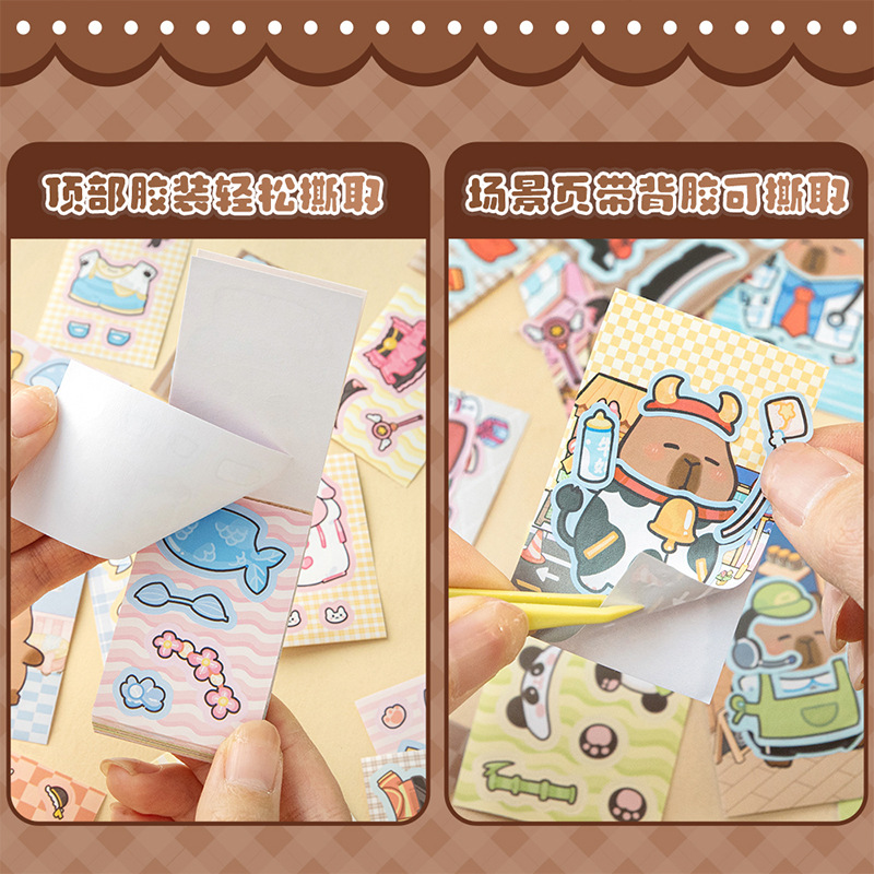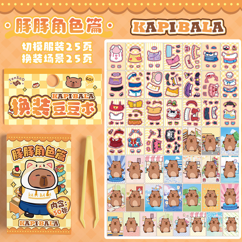 卡皮巴拉换装豆豆本高颜值可爱卡通换装贴纸本迷你便携口袋本贴纸