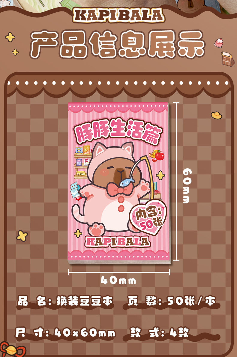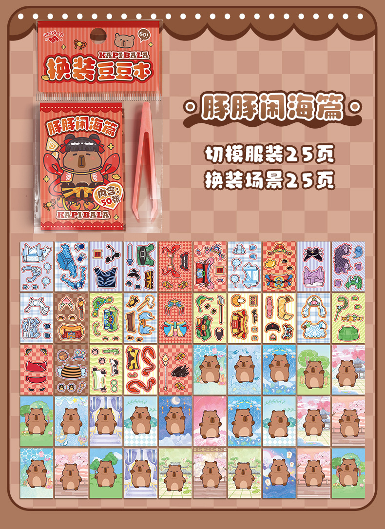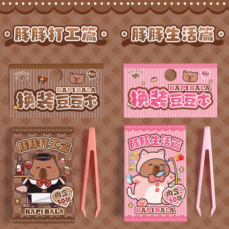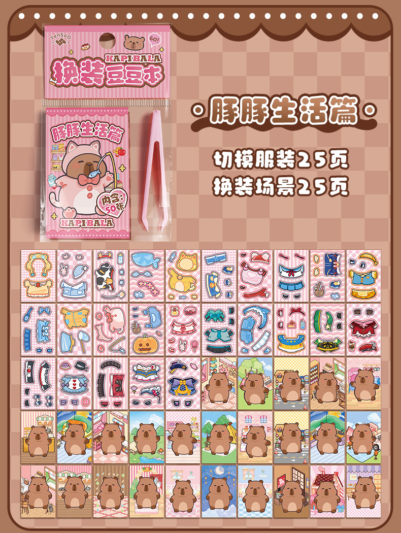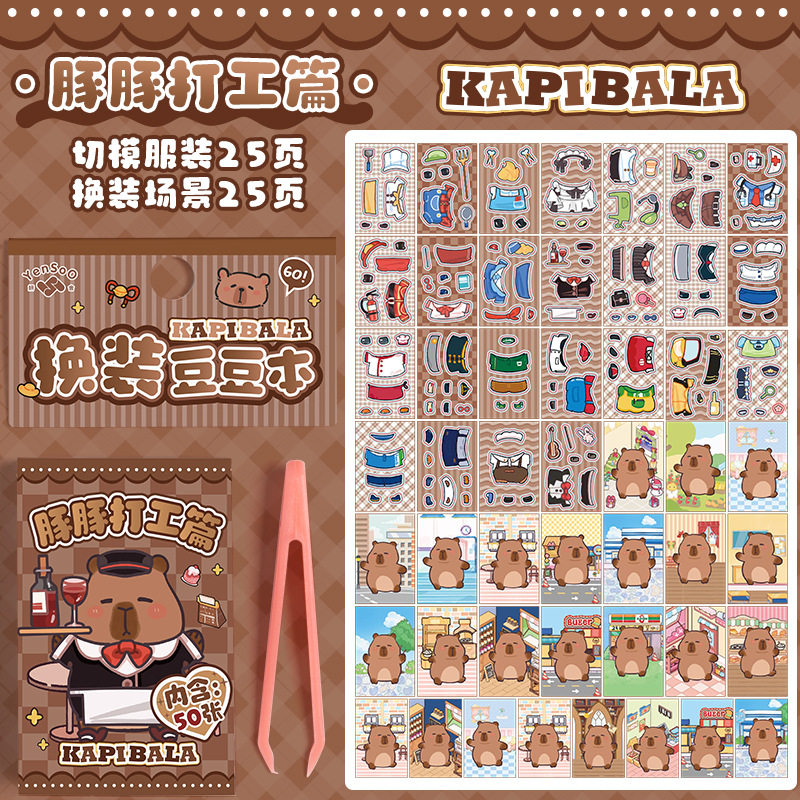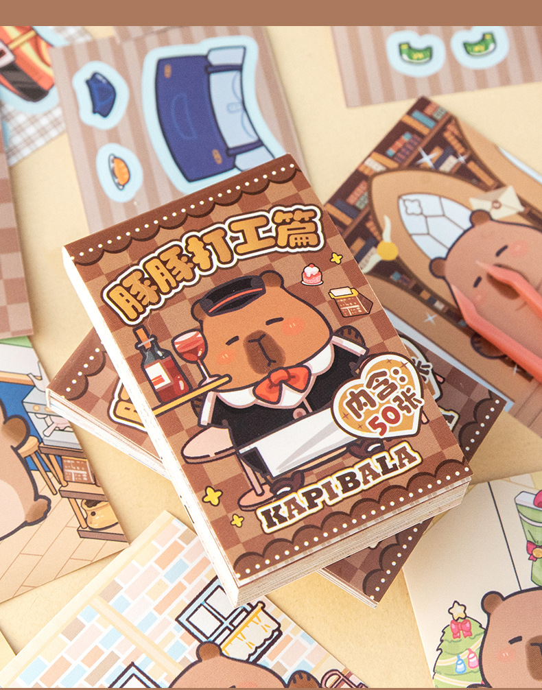 卡皮巴拉换装豆豆本高颜值可爱卡通换装贴纸本迷你便携口袋本贴纸