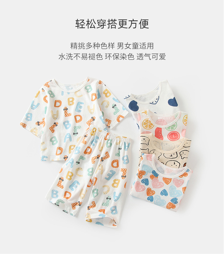 儿童套装空调服宝宝夏季两件套薄款网眼透气婴儿衣服纯棉夏装
