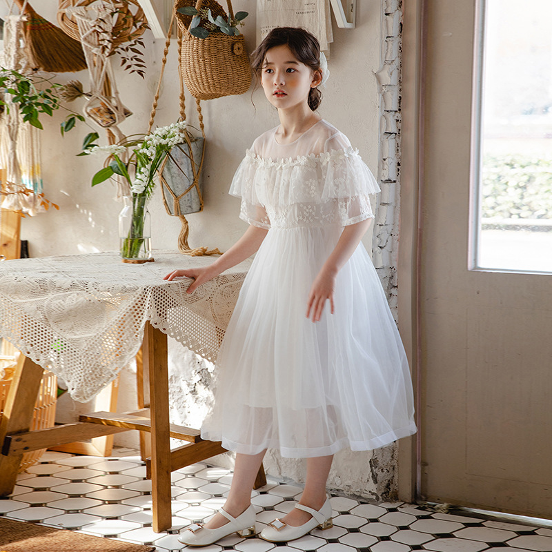 女童2025连衣裙新款夏装女孩公主裙韩版洋气刺绣大童蕾丝网纱裙子