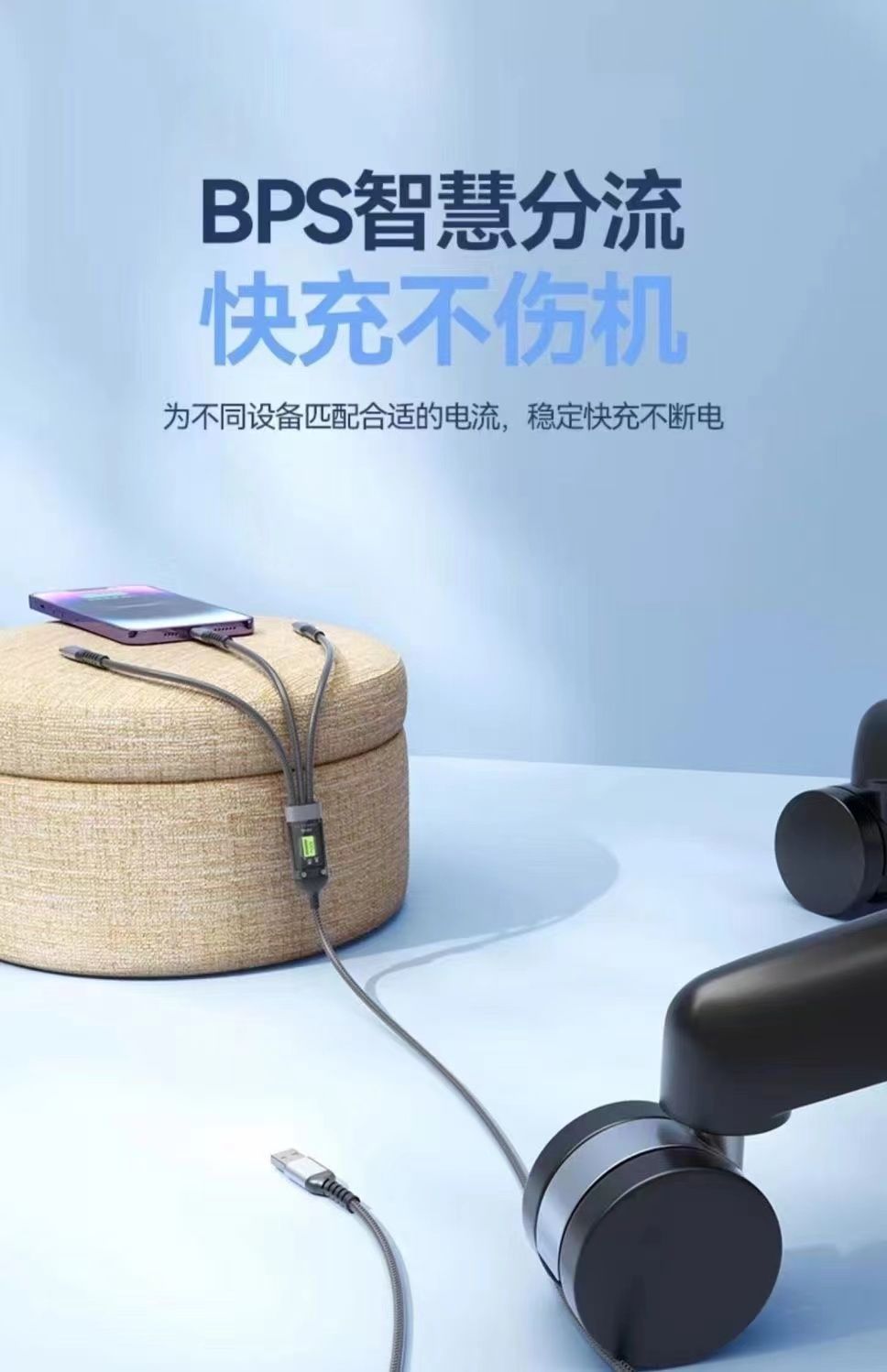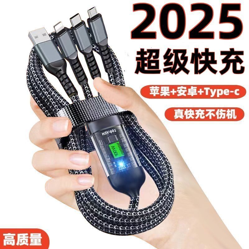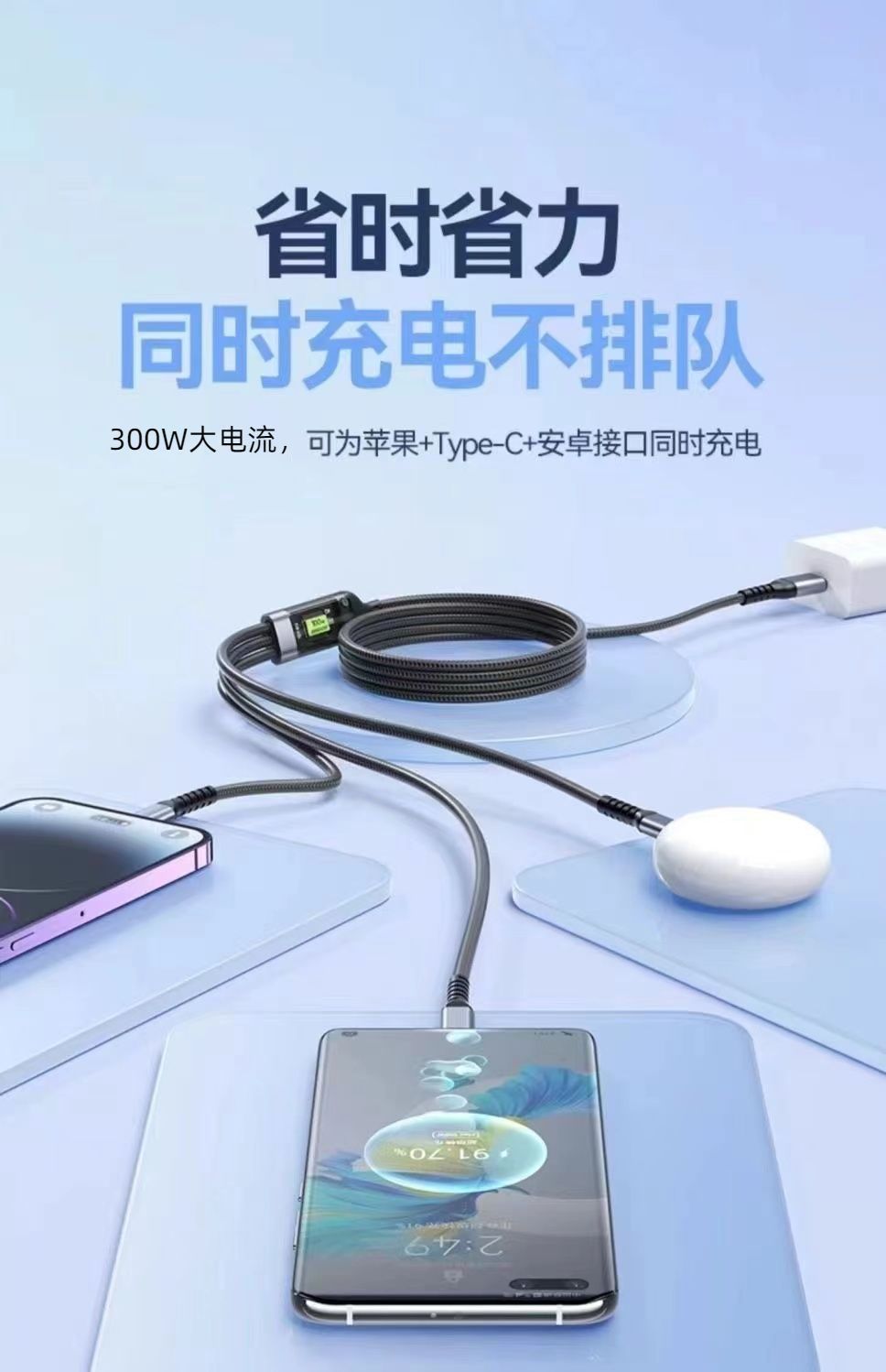 300W超级快充手机充电线三合一数据线一拖三适用苹果VIVO华为安卓