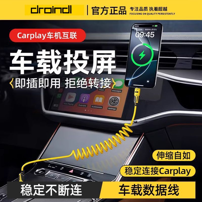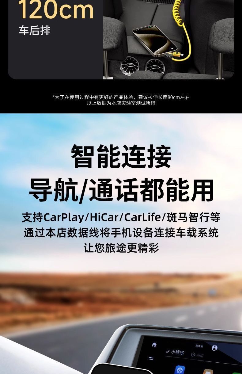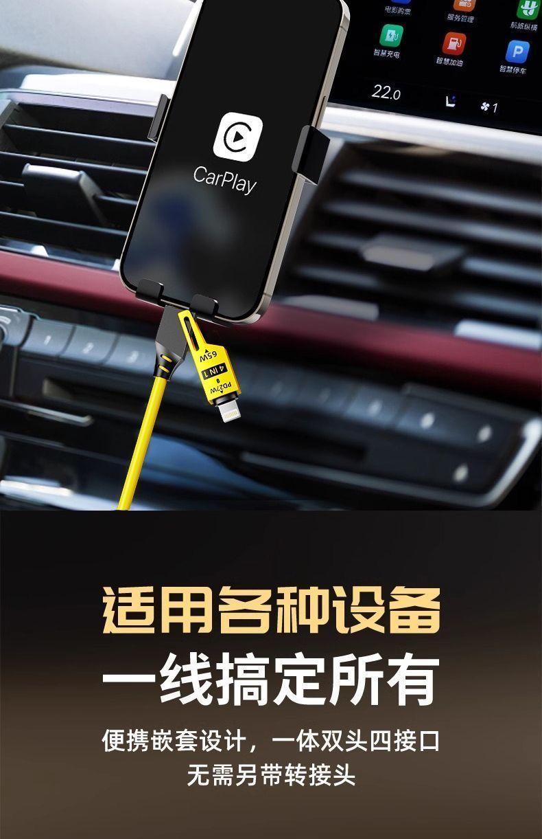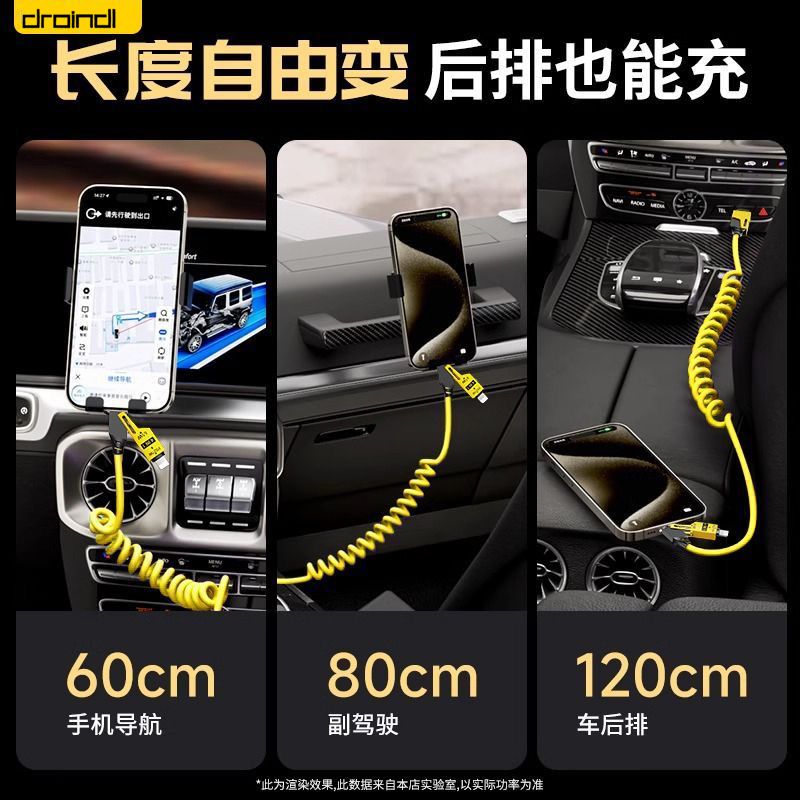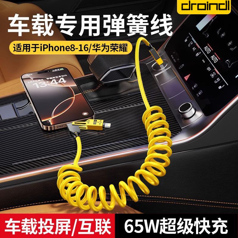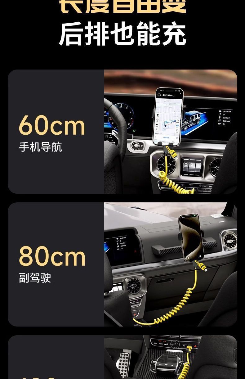 65W车载弹簧四合一超级快充数据线PD27适用苹果华为OPPO小米typec