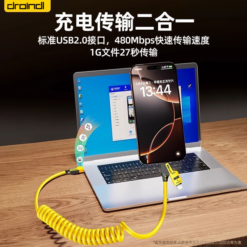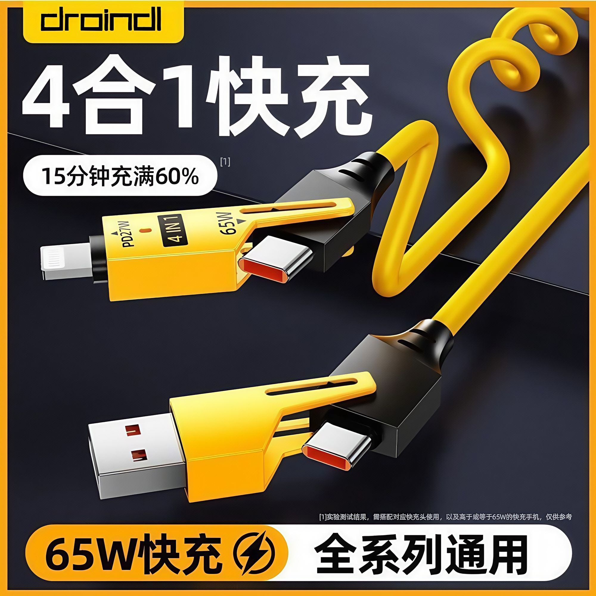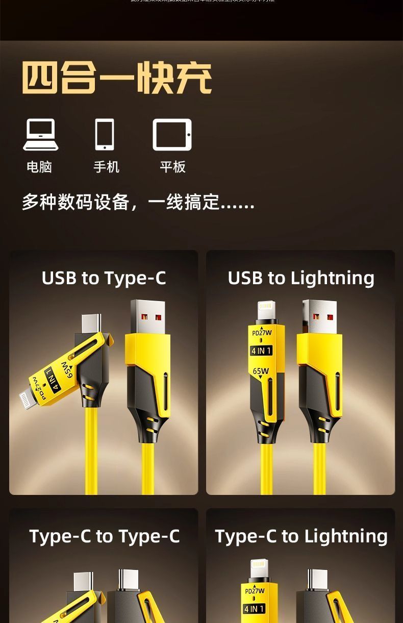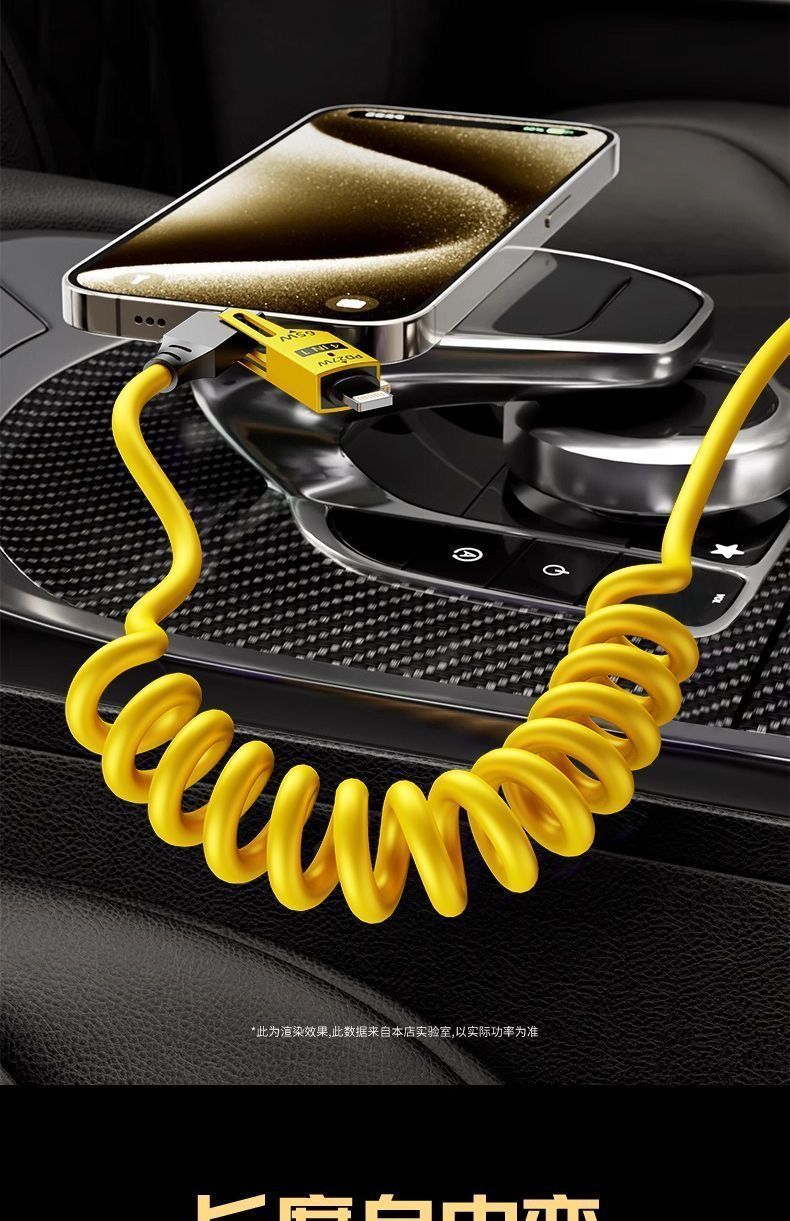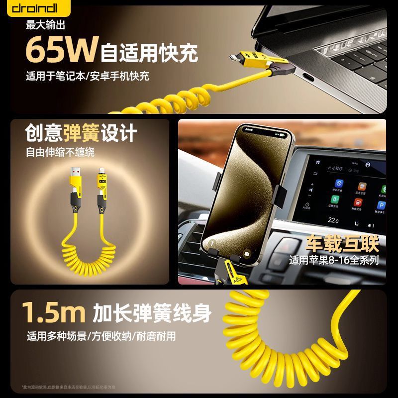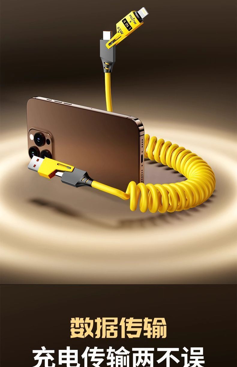 | spring retractable four-in-one 65w fast charge data cable yellow(弹簧伸缩四合一65w快充数据线黄) | USD $4.45 | 999999 piece available |