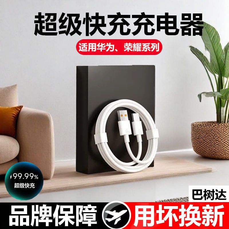 适用华为120w超级快充头P60/mate40/nova9数据线6A荣耀手机充电器