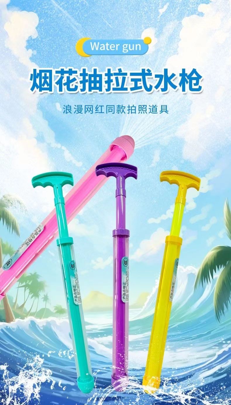 抖音同款烟花水枪儿童玩具抽拉式水喷水漂流沙滩戏水打水仗神器
