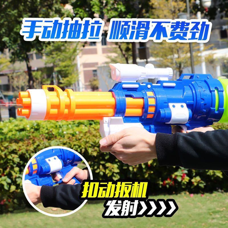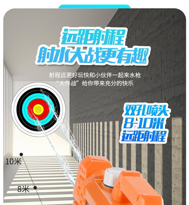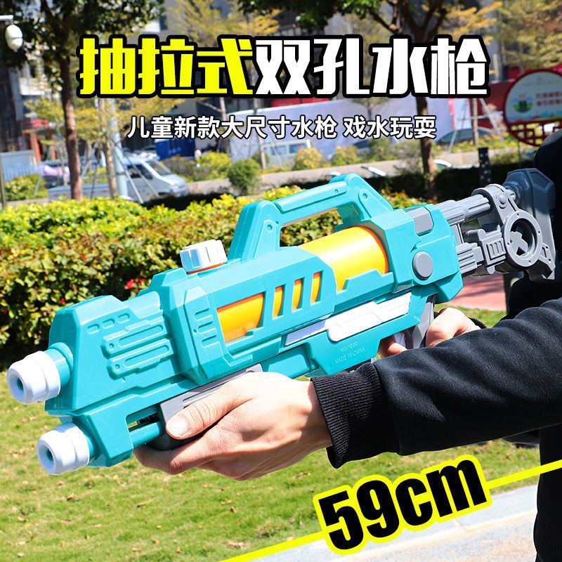 网红水枪儿童玩具双喷头呲水高压抽拉式喷水枪男孩大容量打水仗