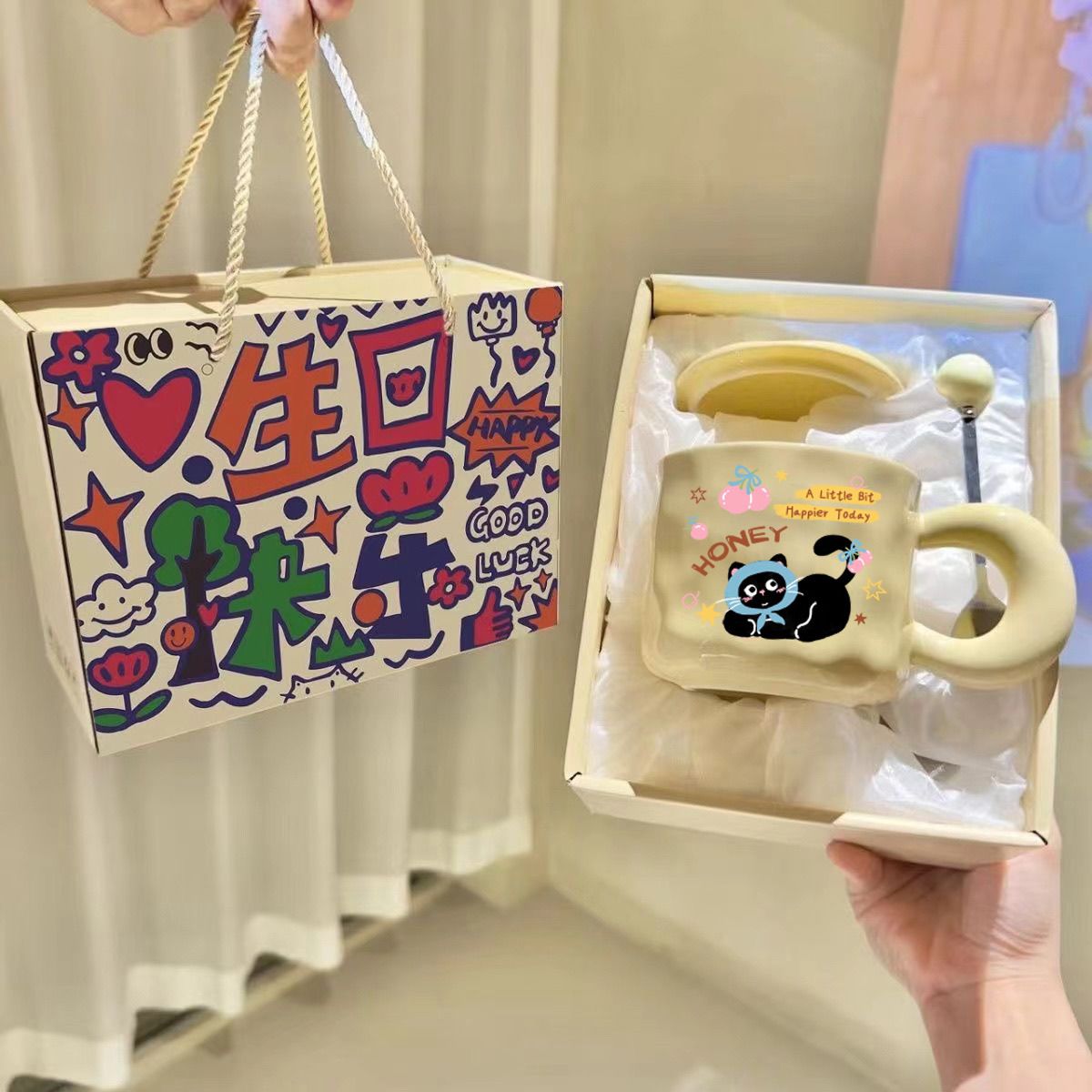 可爱猫猫杯子女生生日礼物送闺蜜马克杯带盖办公室陶瓷水杯伴手礼