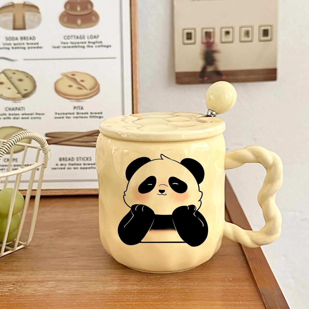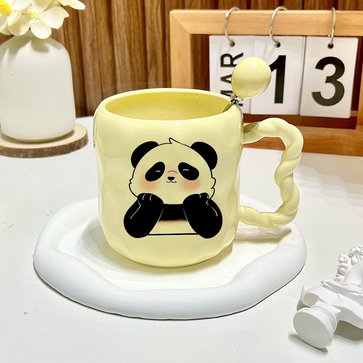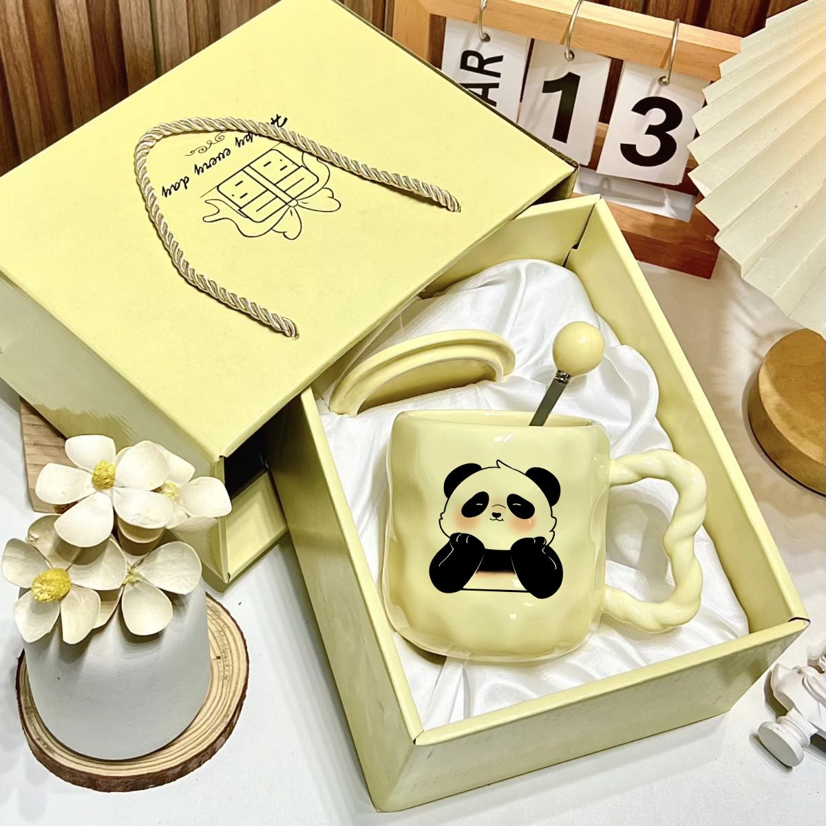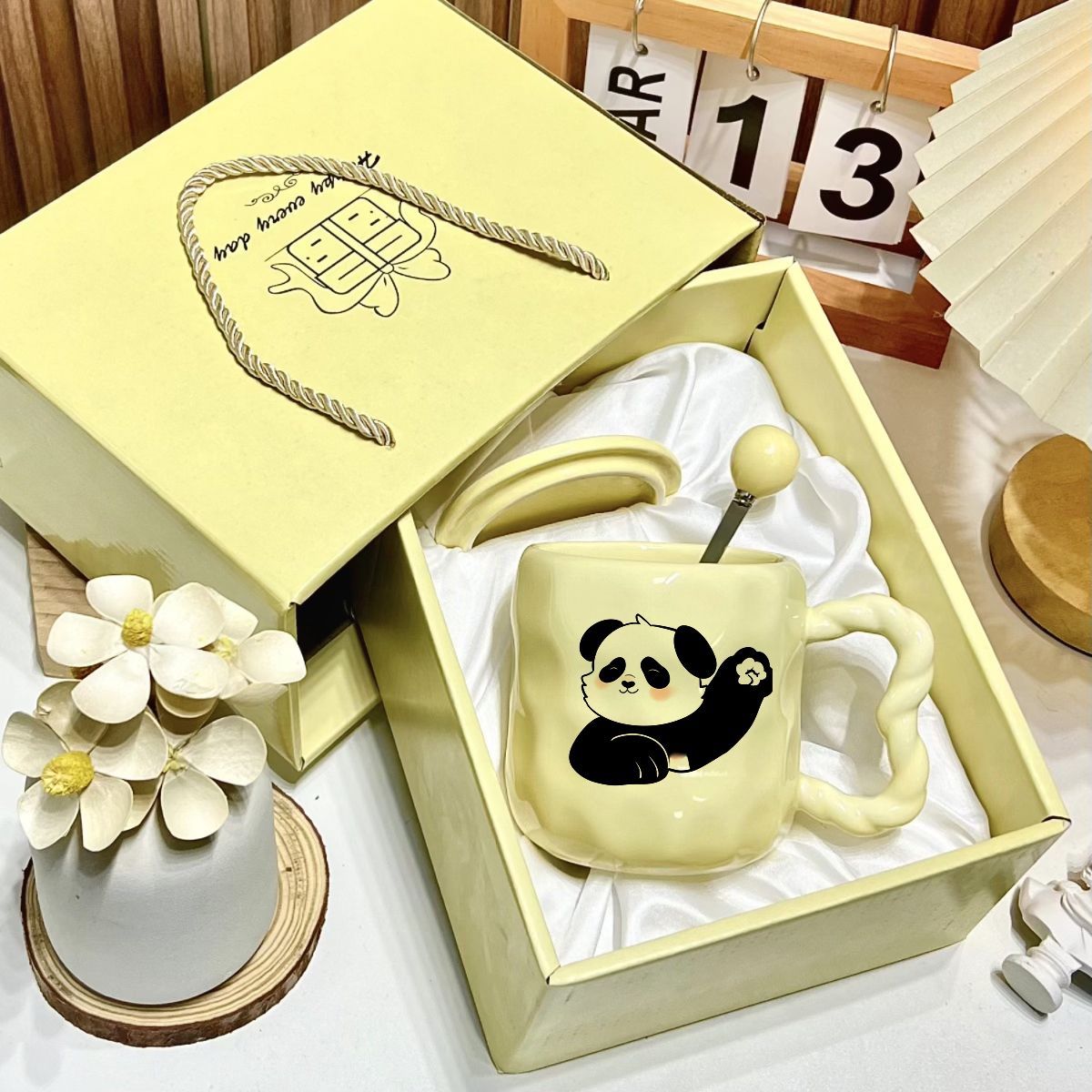 可爱熊猫马克杯带盖勺陶瓷水杯生日礼物送女生姐妹闺蜜有意义礼品