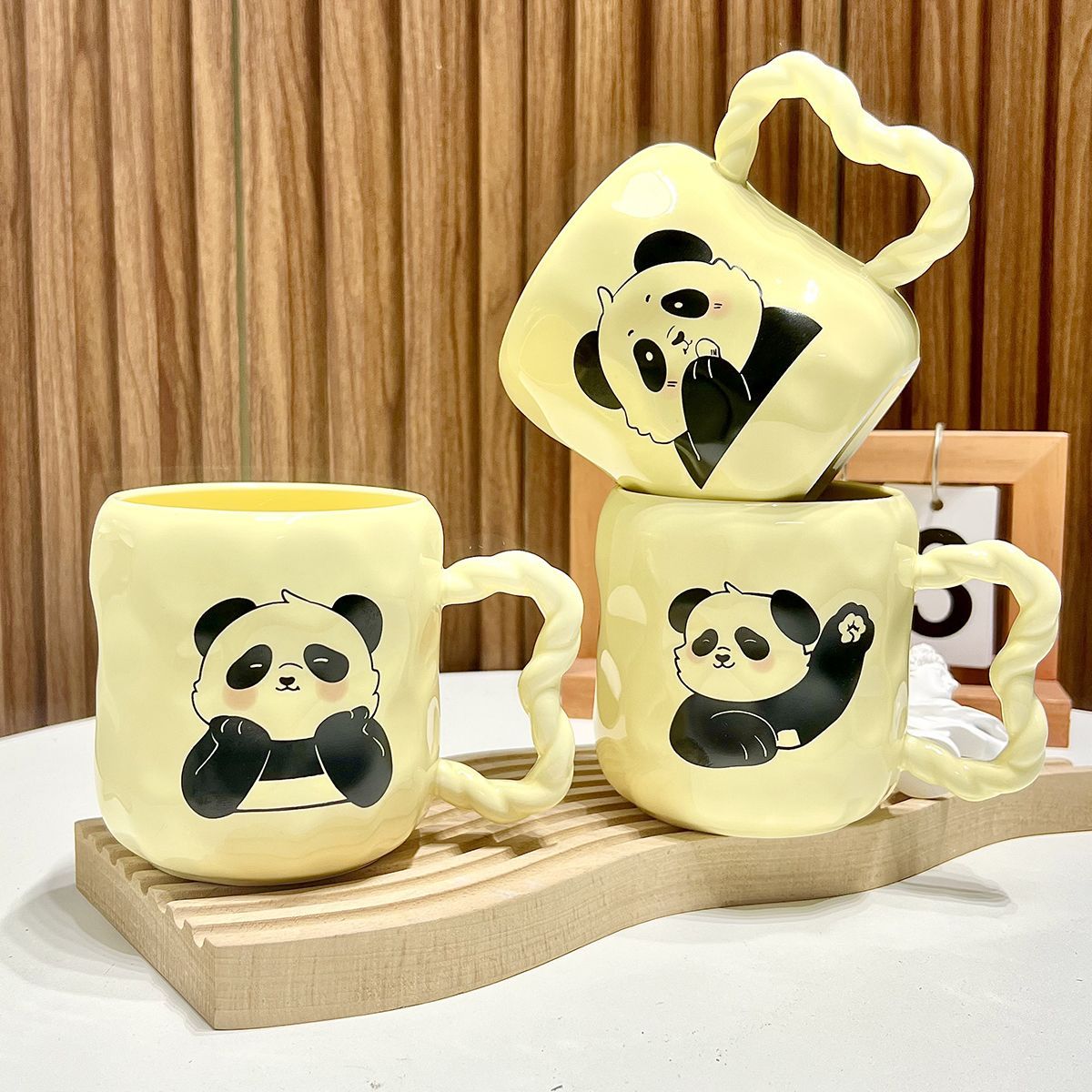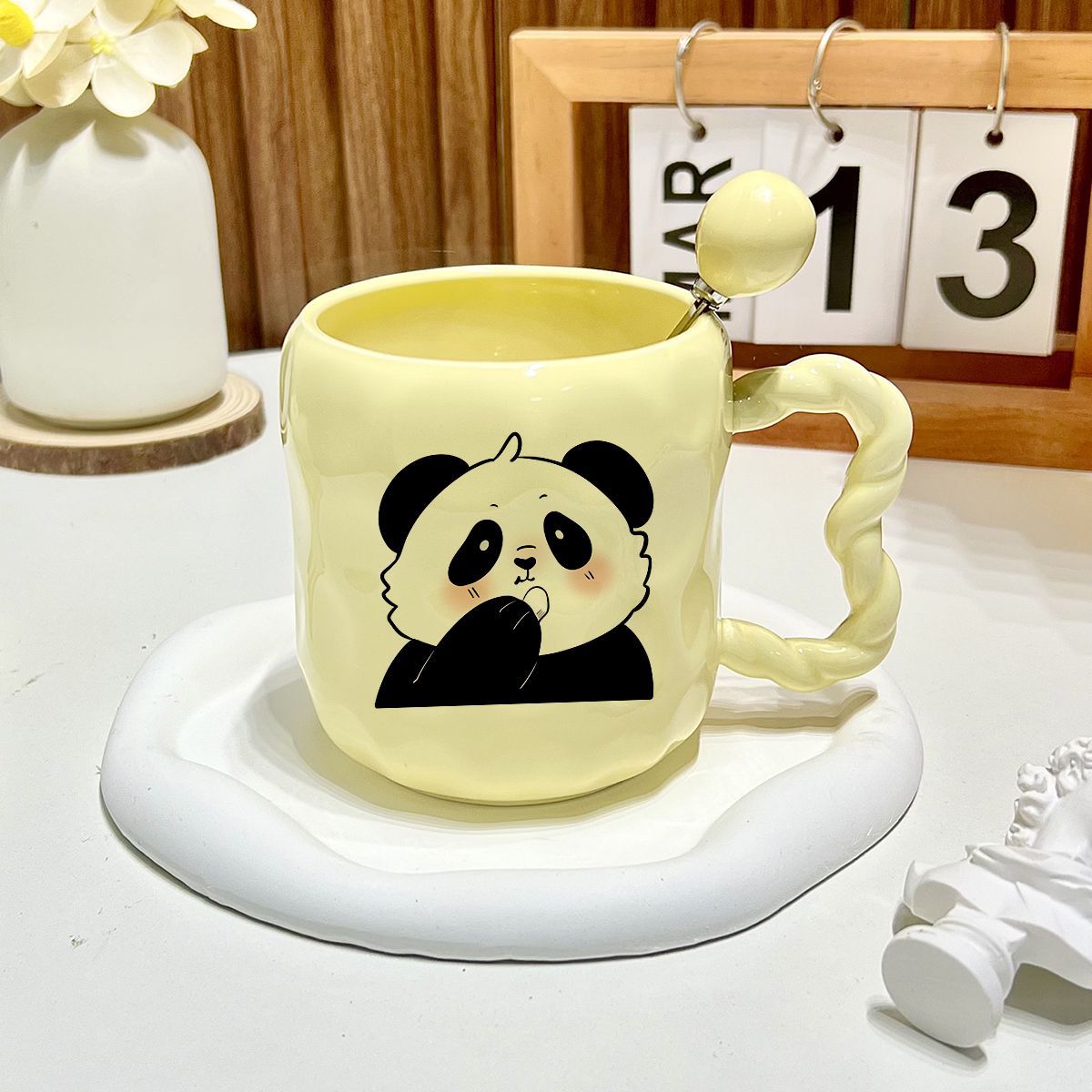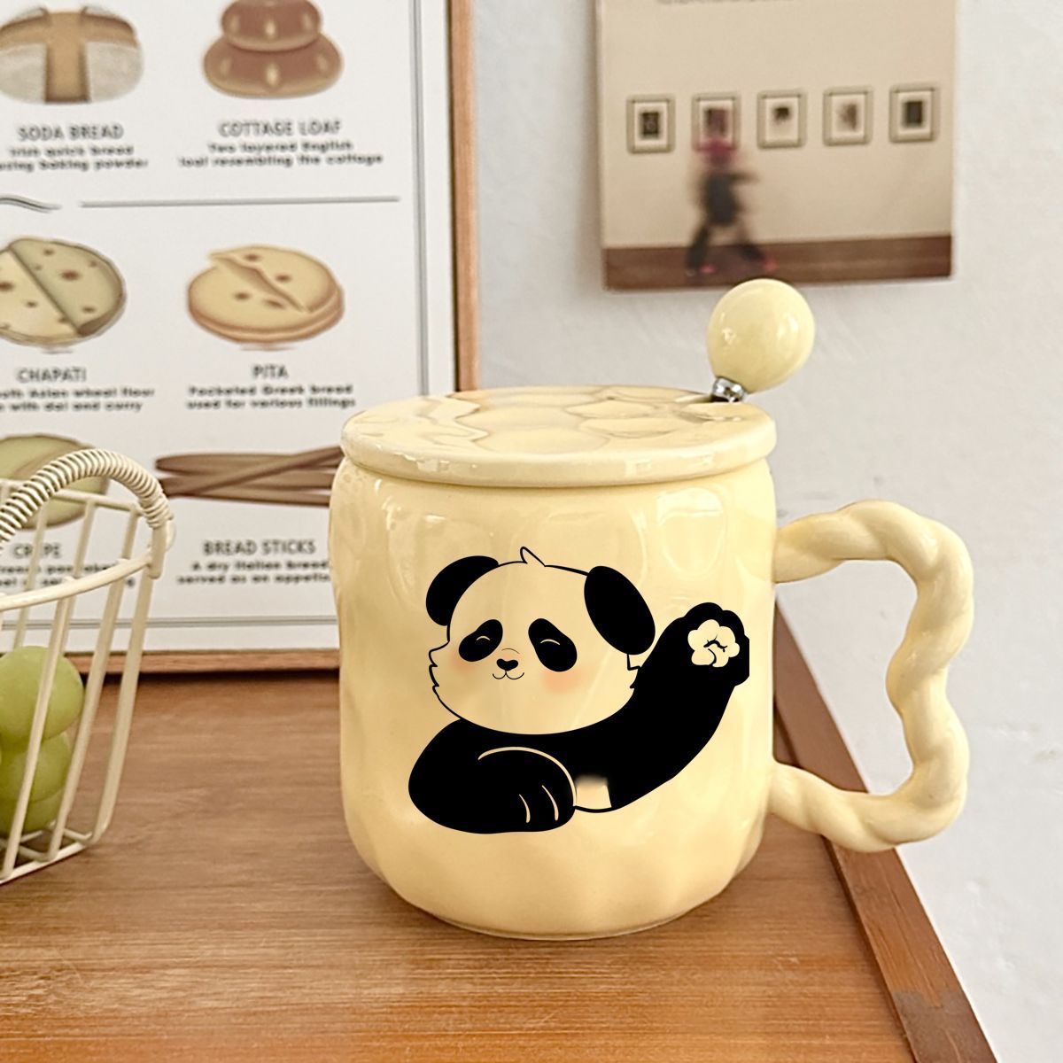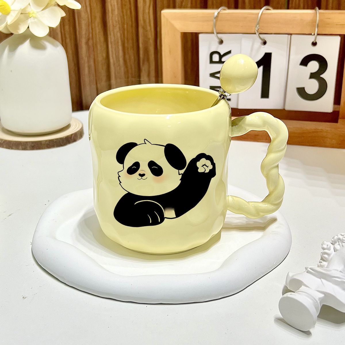 可爱熊猫马克杯带盖勺陶瓷水杯生日礼物送女生姐妹闺蜜有意义礼品