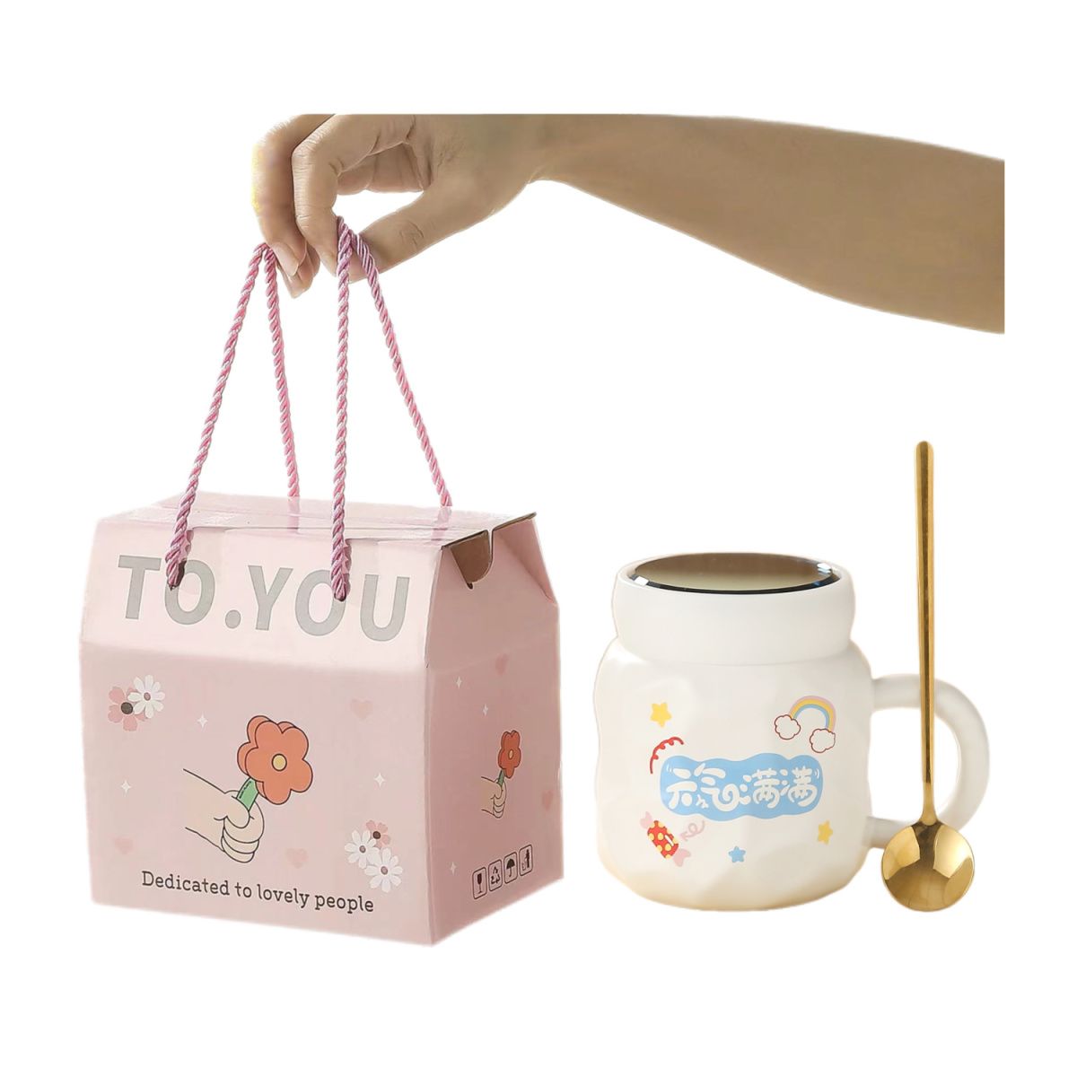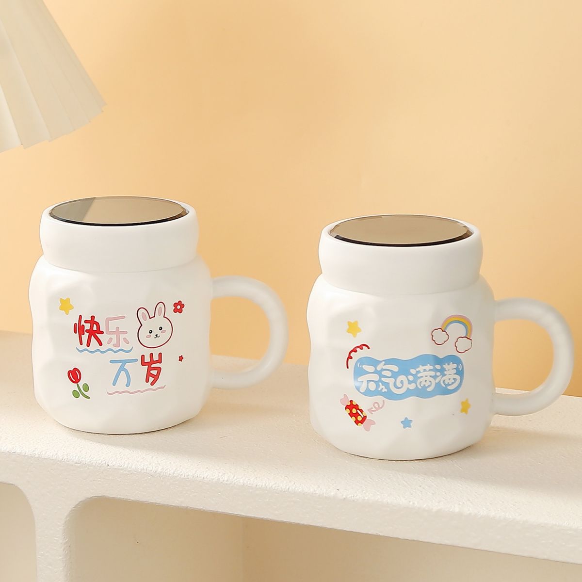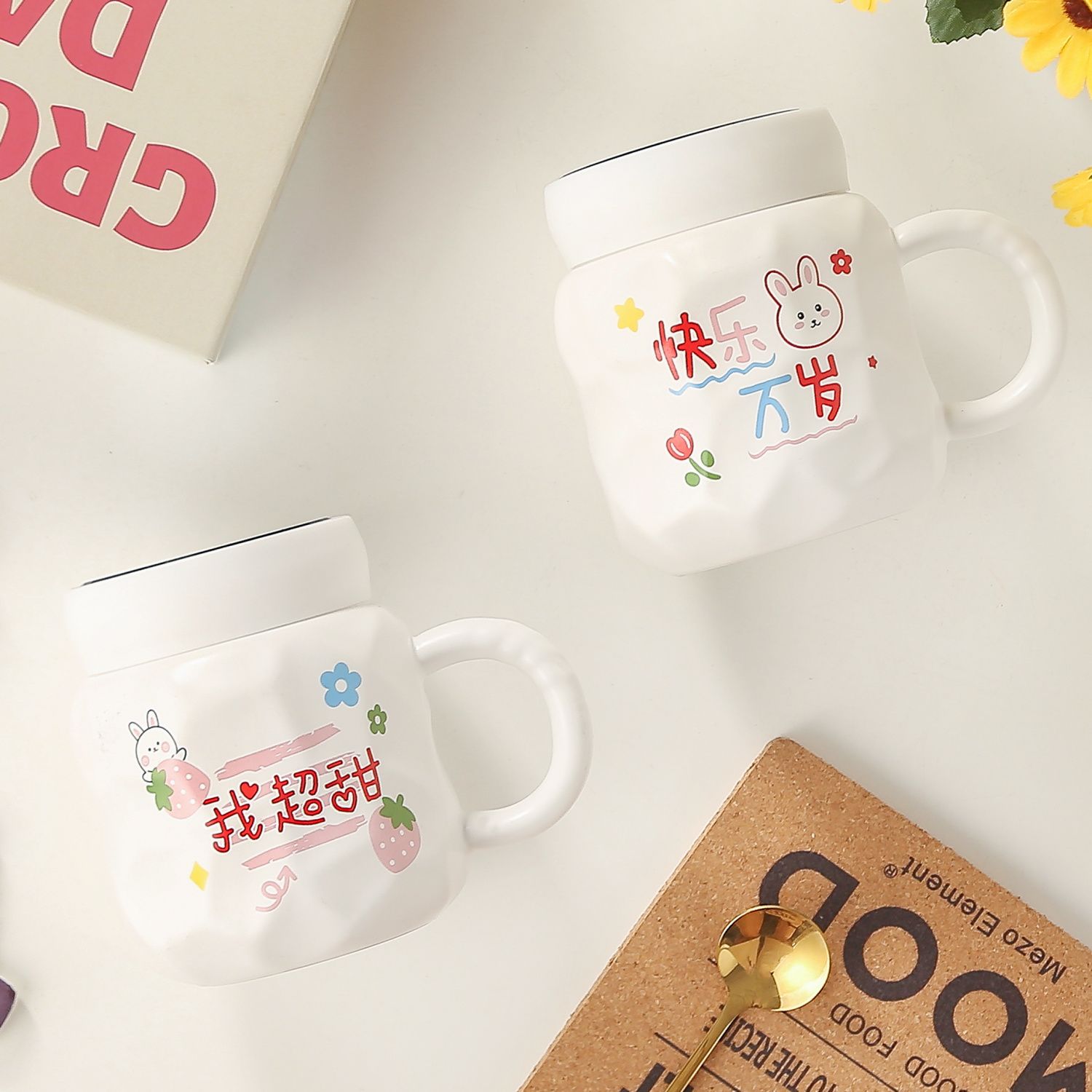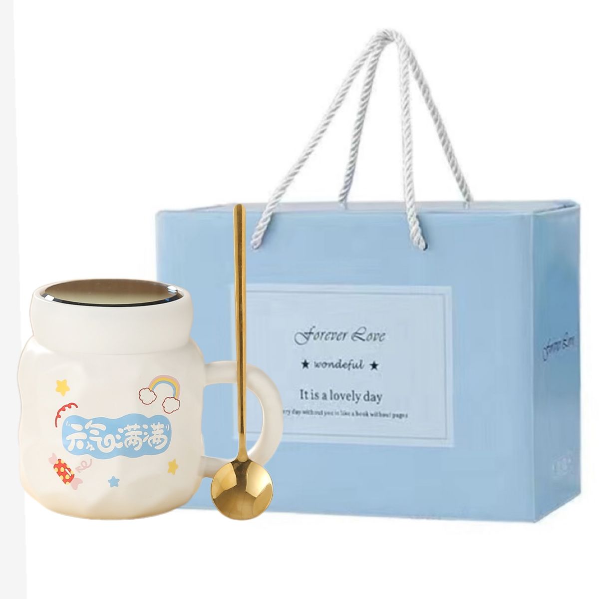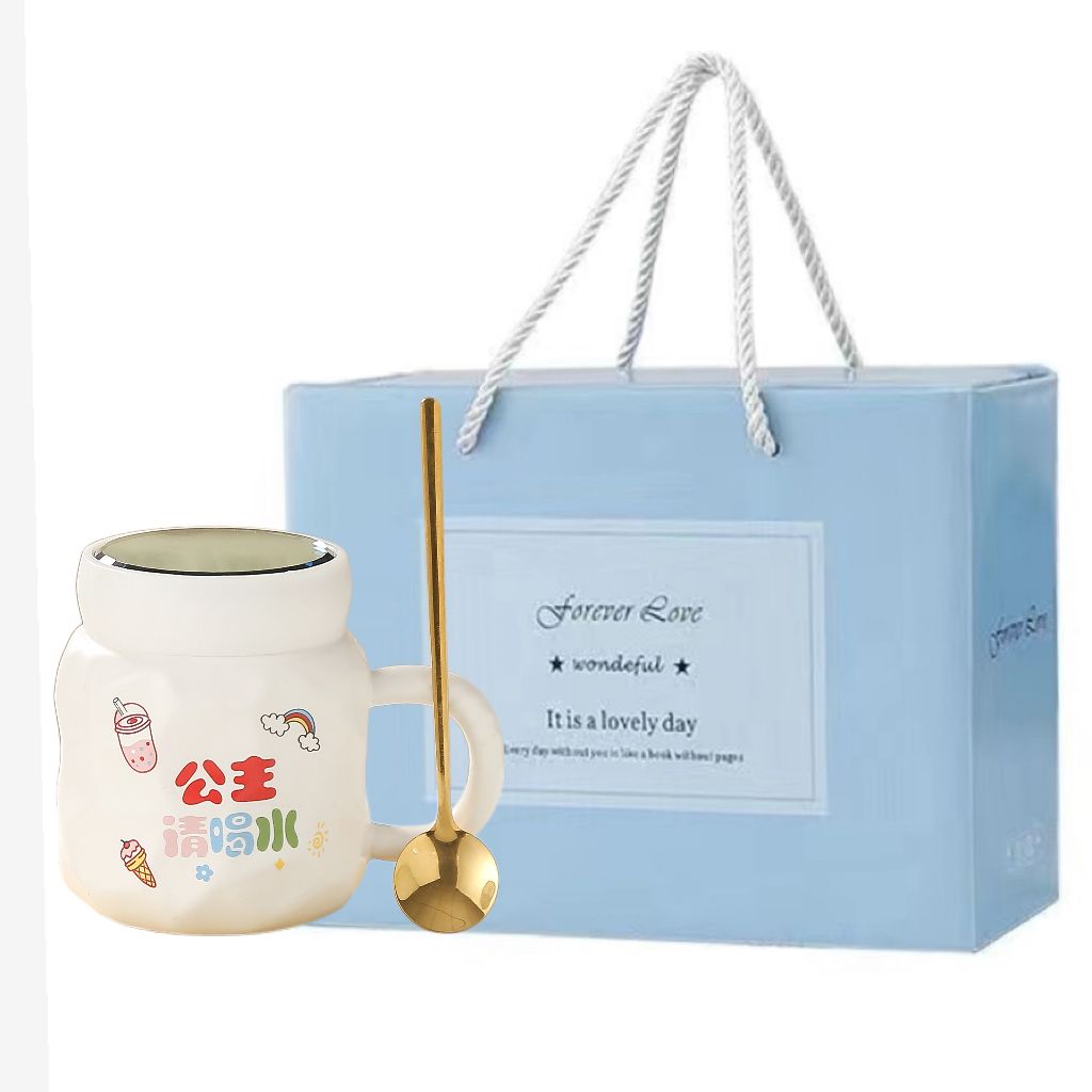 卡通马克杯带盖勺高颜值送女生闺蜜生日礼物家用办公牛奶咖啡杯