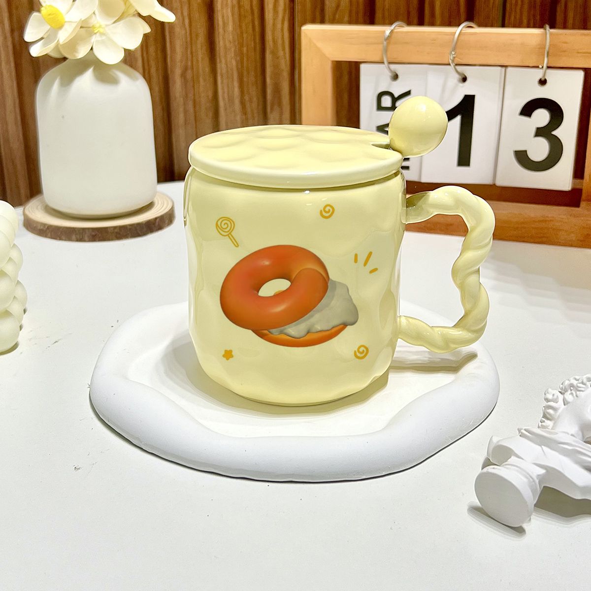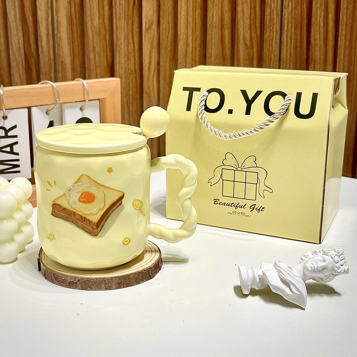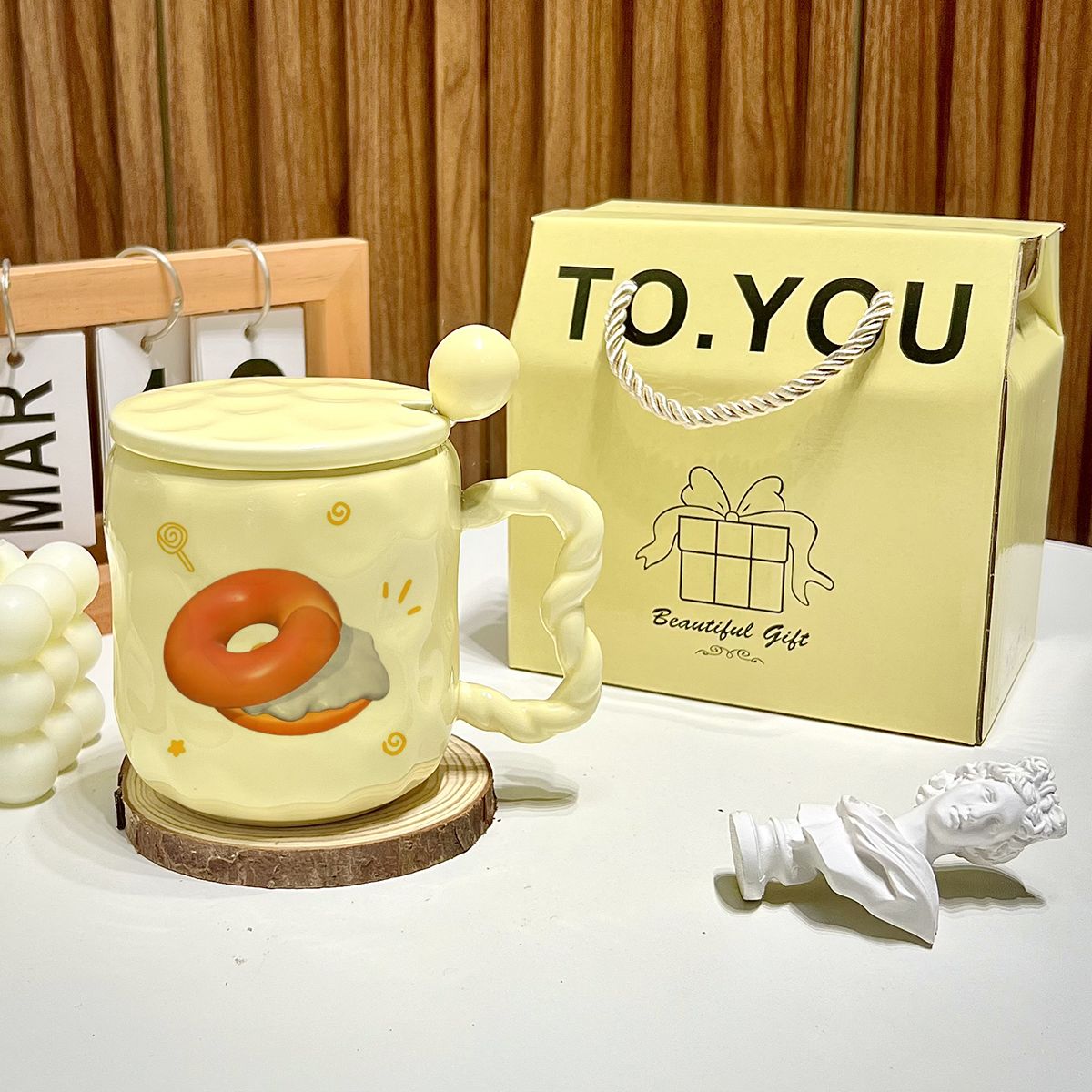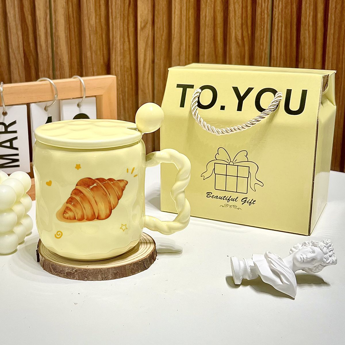 可爱奶fufu生日可颂马克杯带盖水杯生日礼物送女生闺蜜有意义礼品