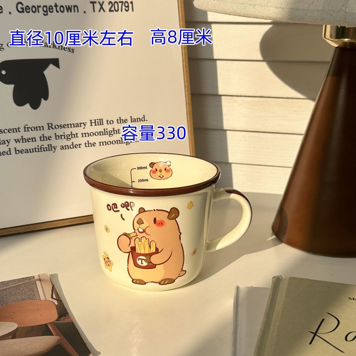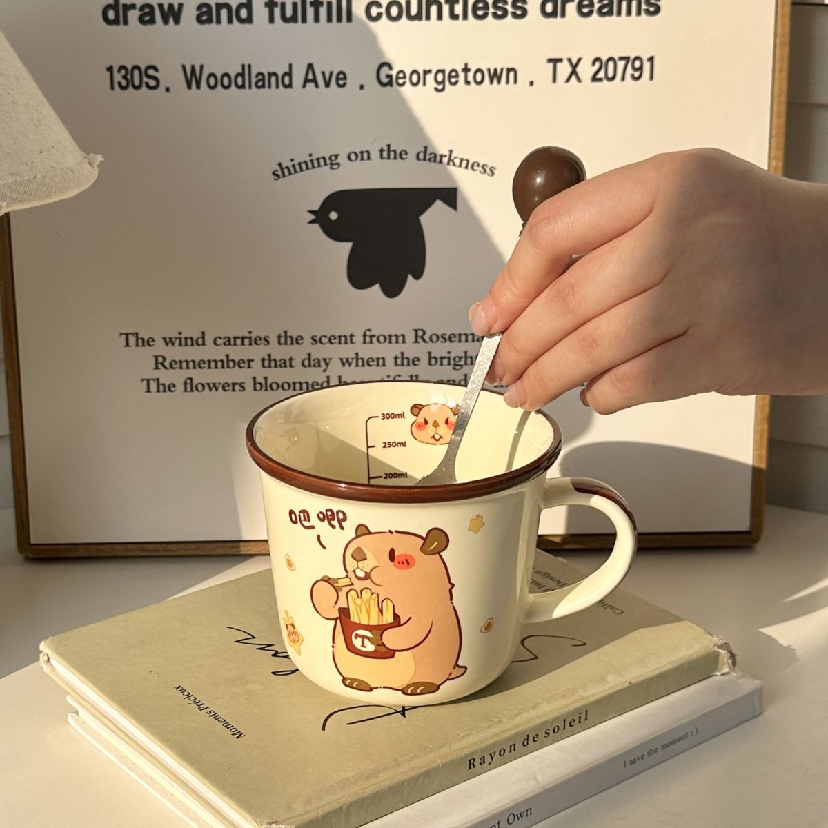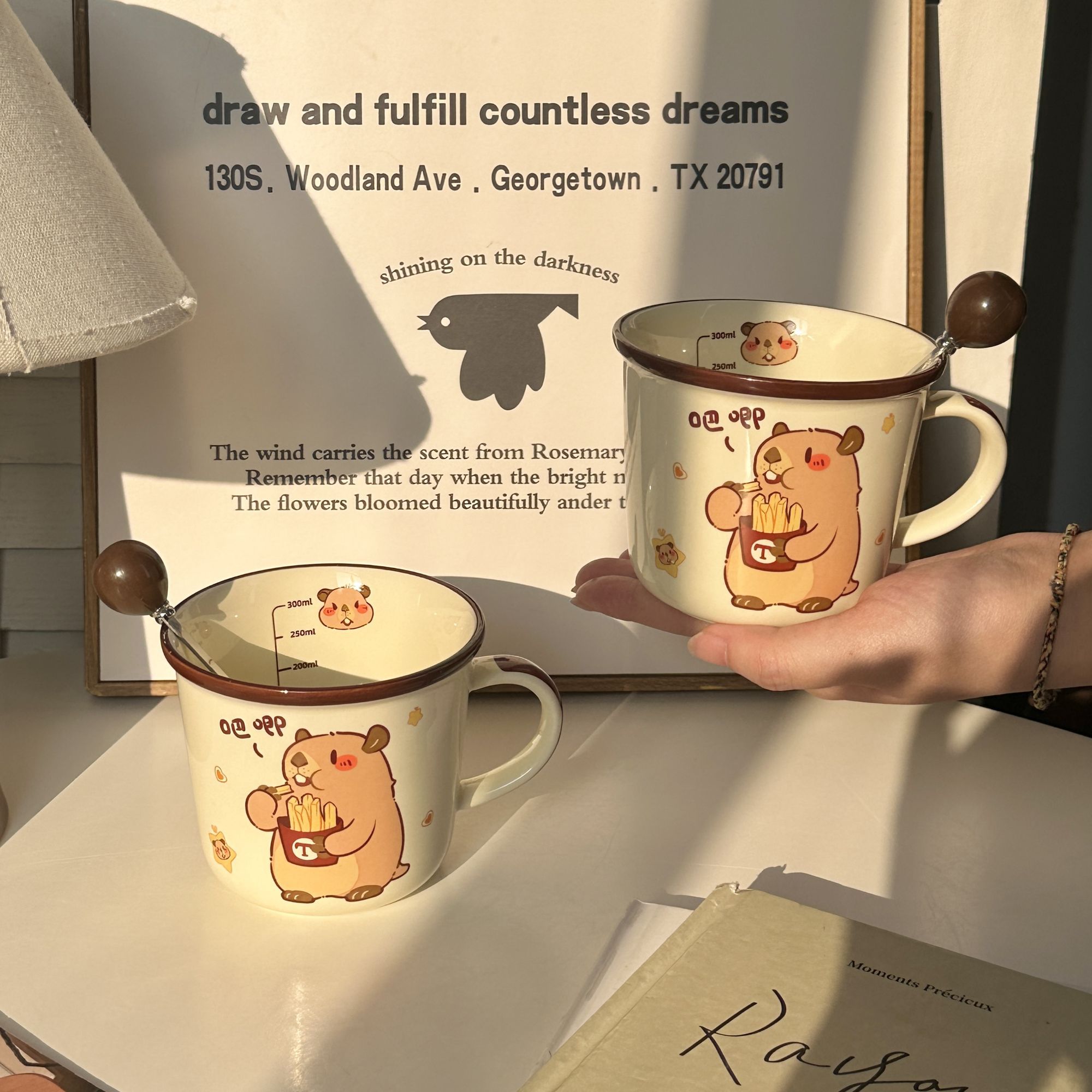 陶瓷刻度杯子卡皮巴拉马克杯咖啡杯可爱高颜值喝水杯子带勺子礼盒