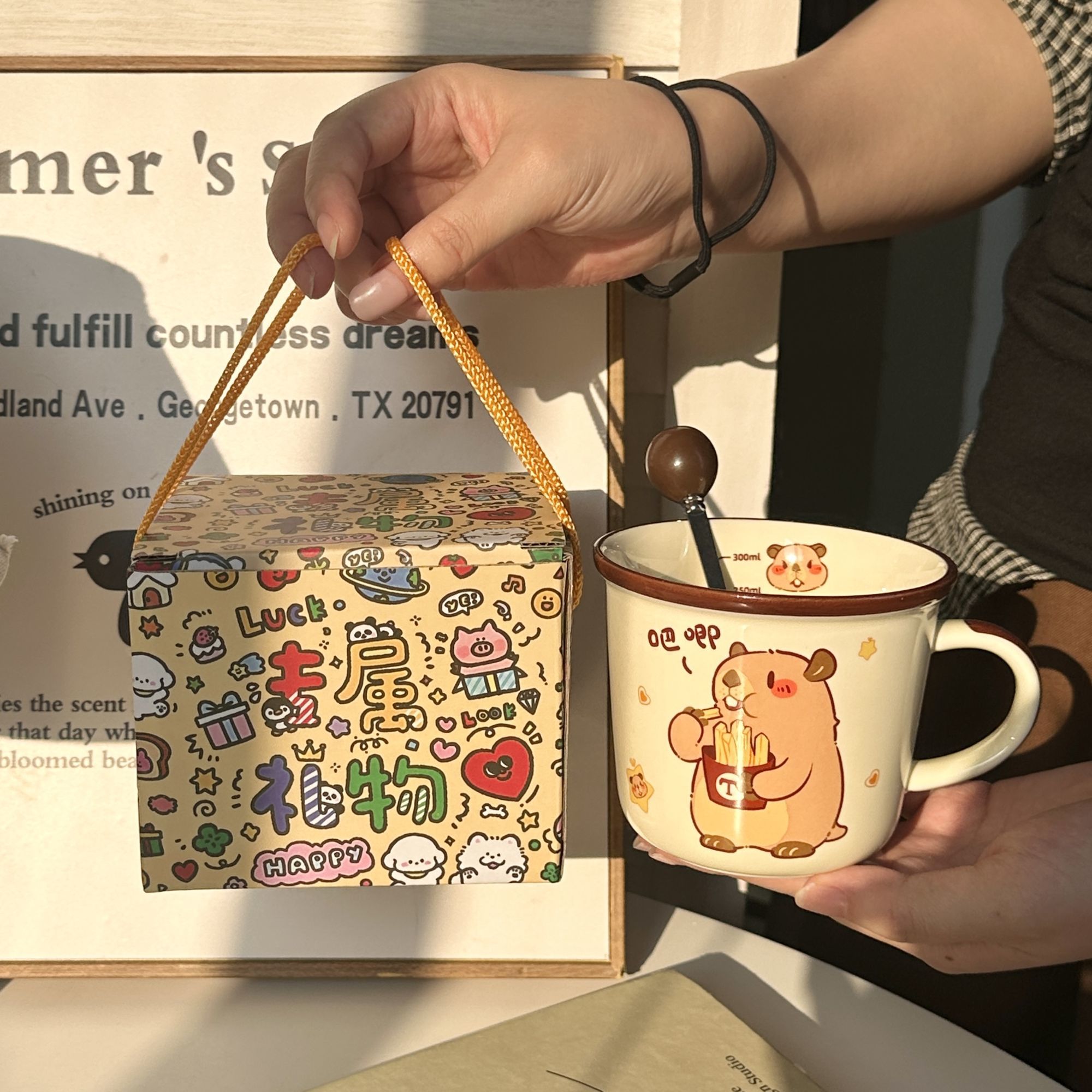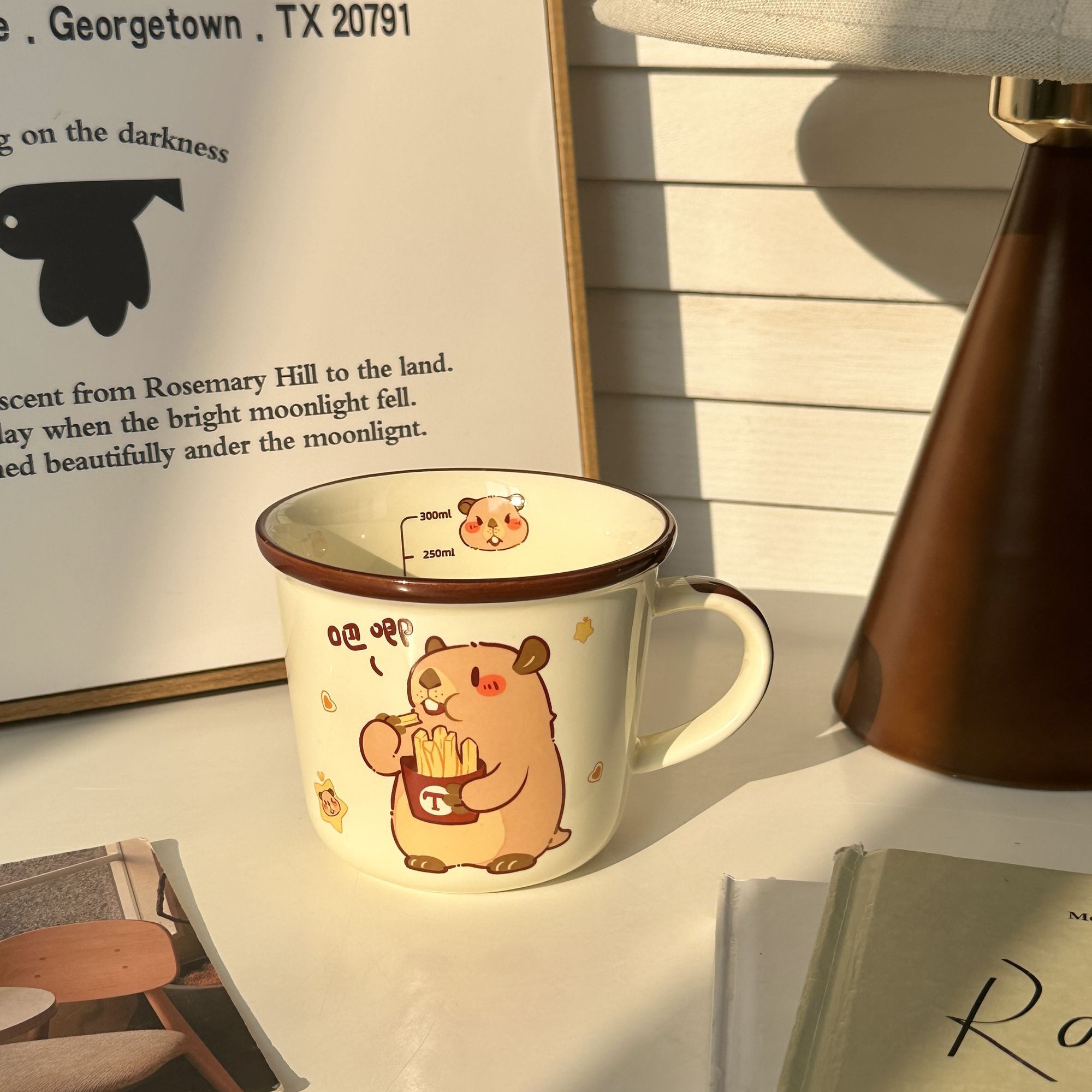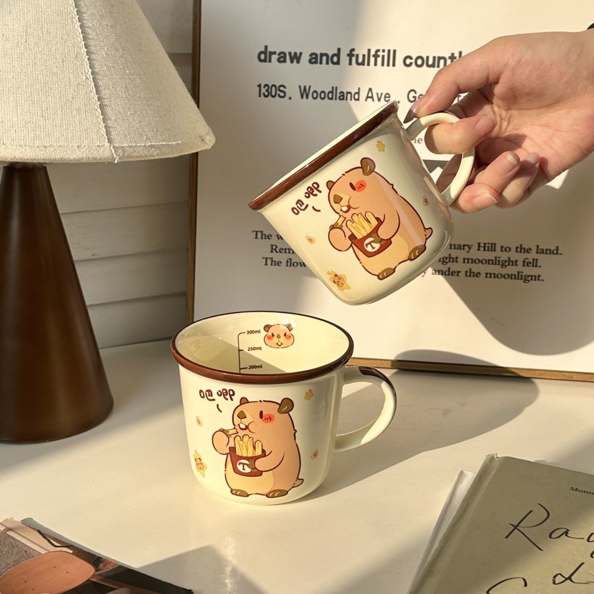 陶瓷刻度杯子卡皮巴拉马克杯咖啡杯可爱高颜值喝水杯子带勺子礼盒