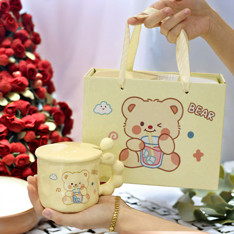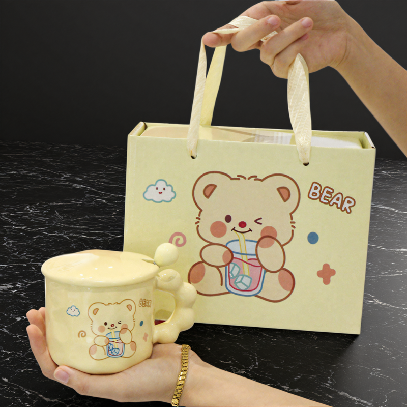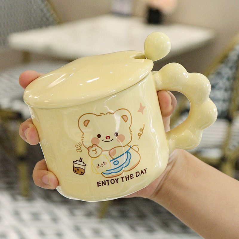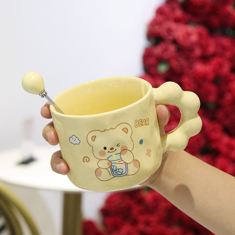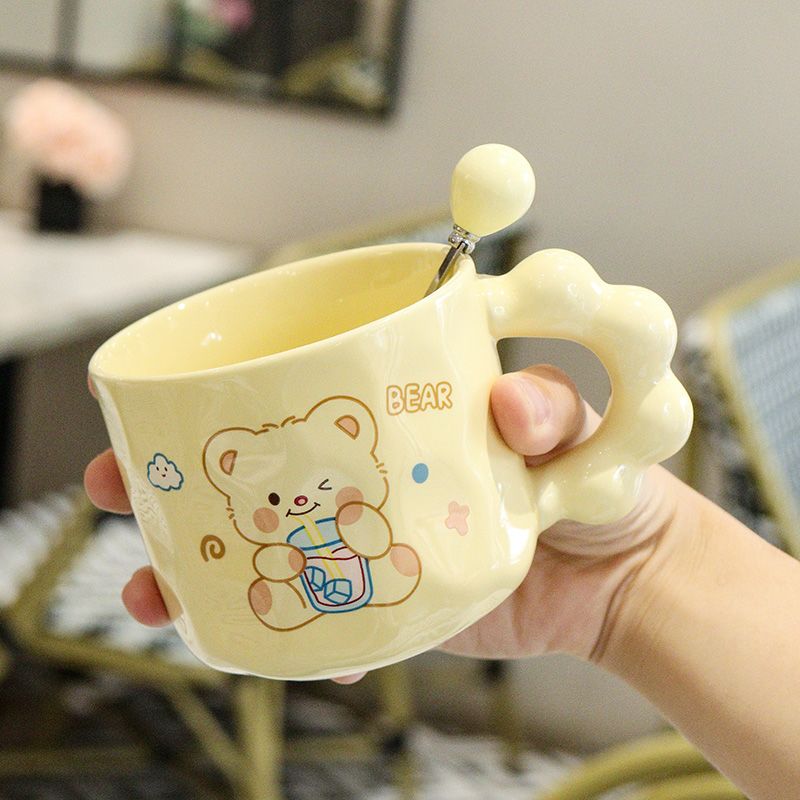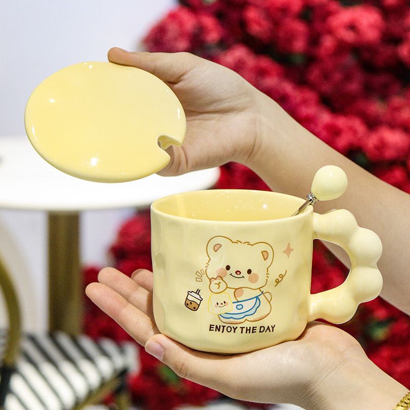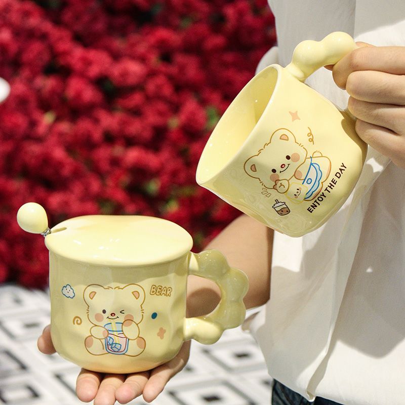 可爱陶瓷杯马克杯带盖带勺小熊高颜值生日礼物送女友有意义情侣款