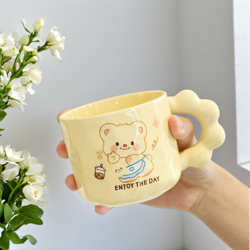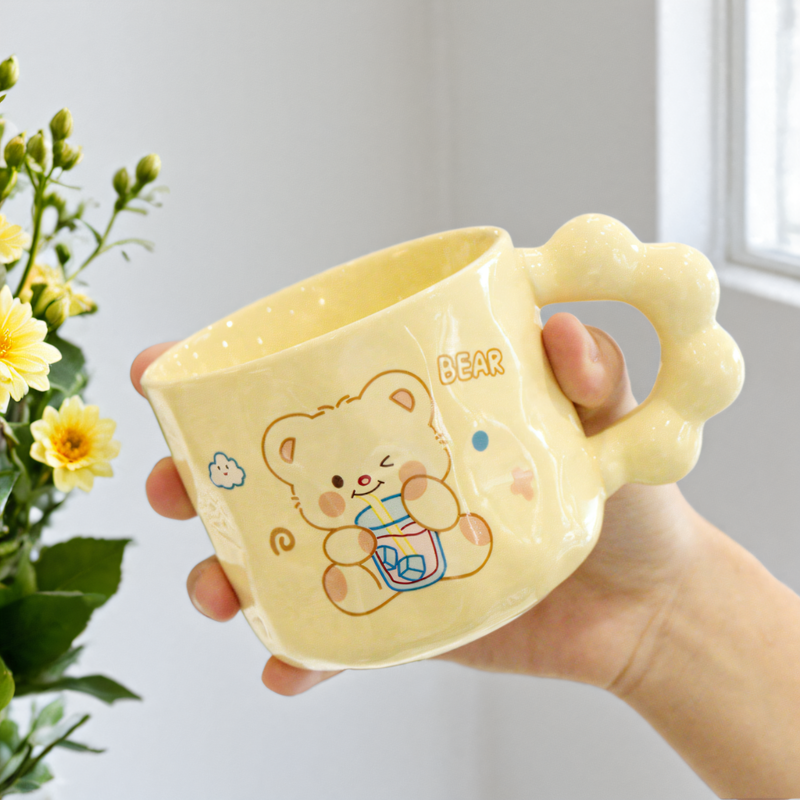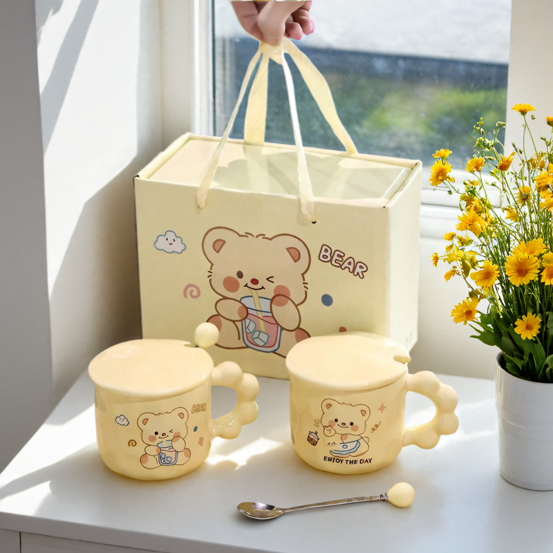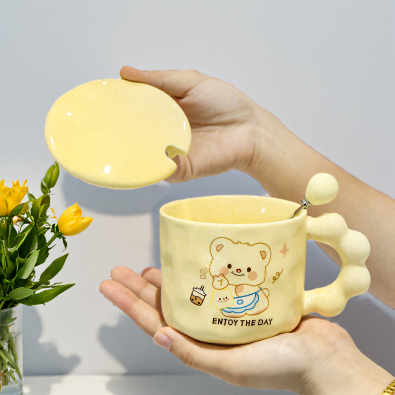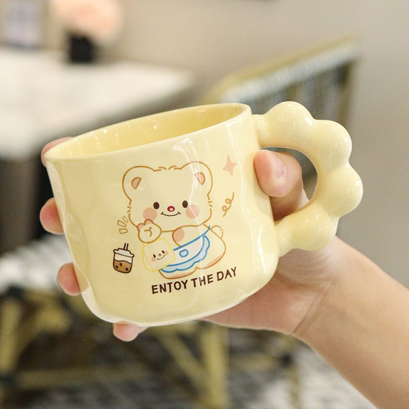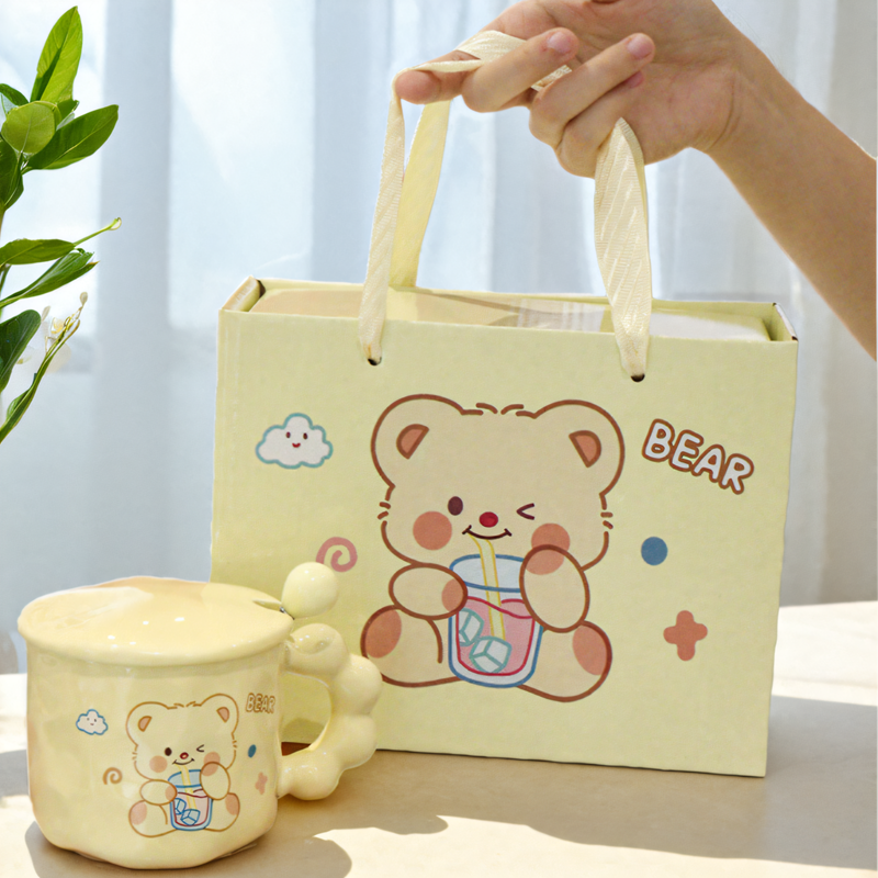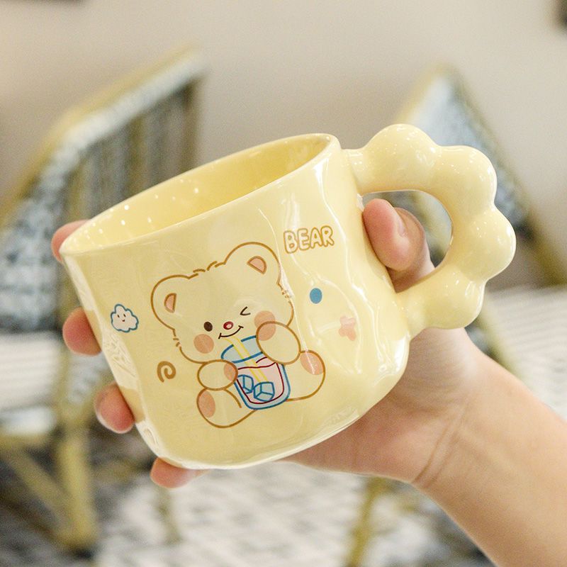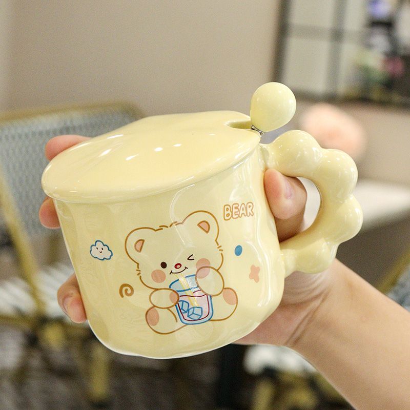 可爱陶瓷杯马克杯带盖带勺小熊高颜值生日礼物送女友有意义情侣款
