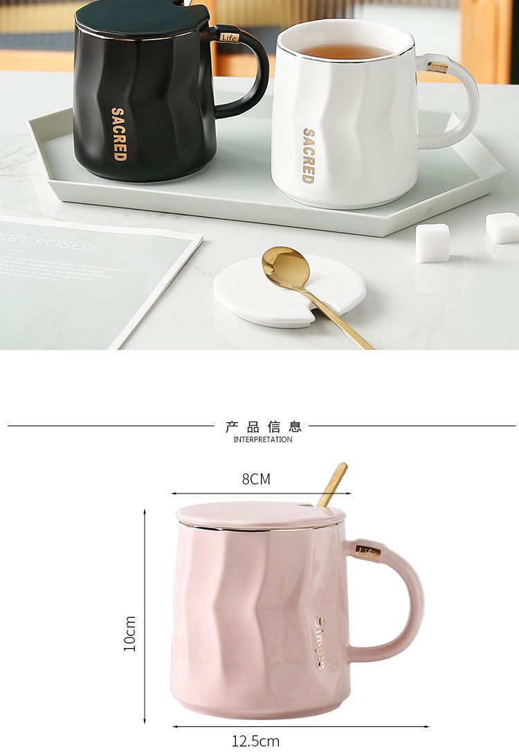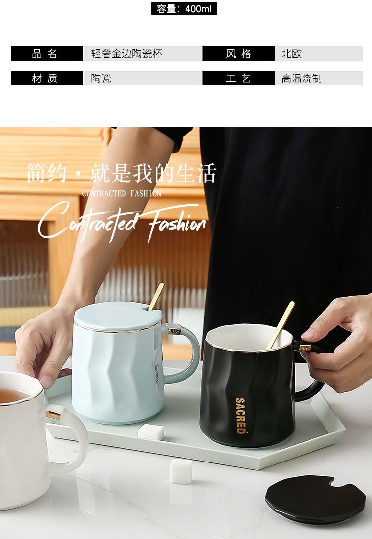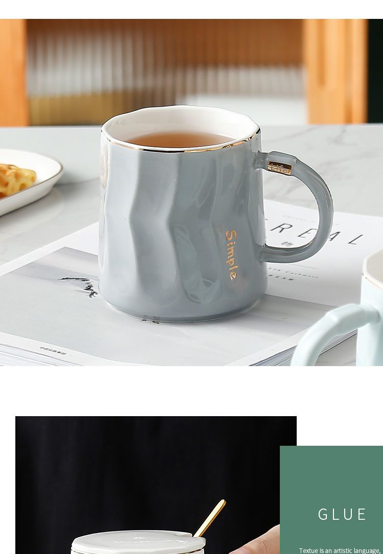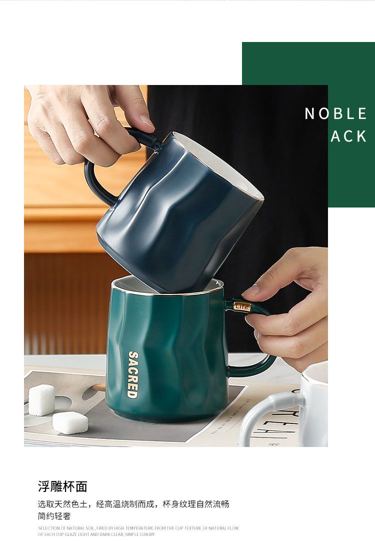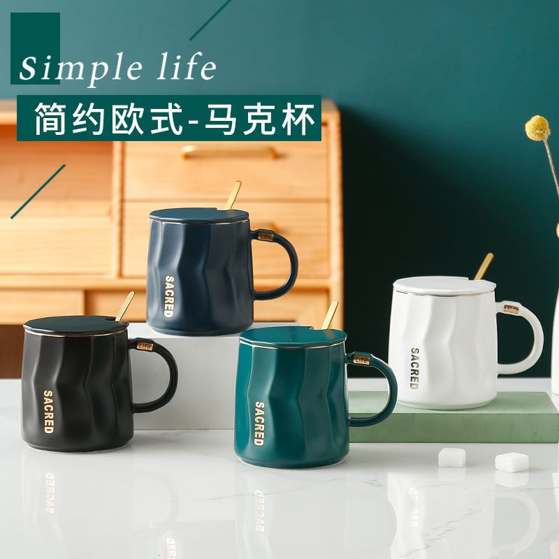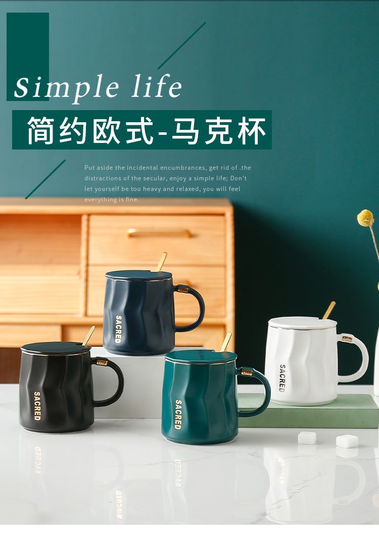 带盖马克杯子ins风男生家用女办公室咖啡陶瓷情侣款喝水杯高级感