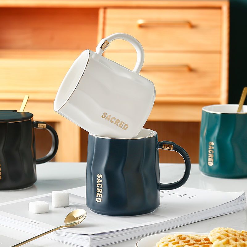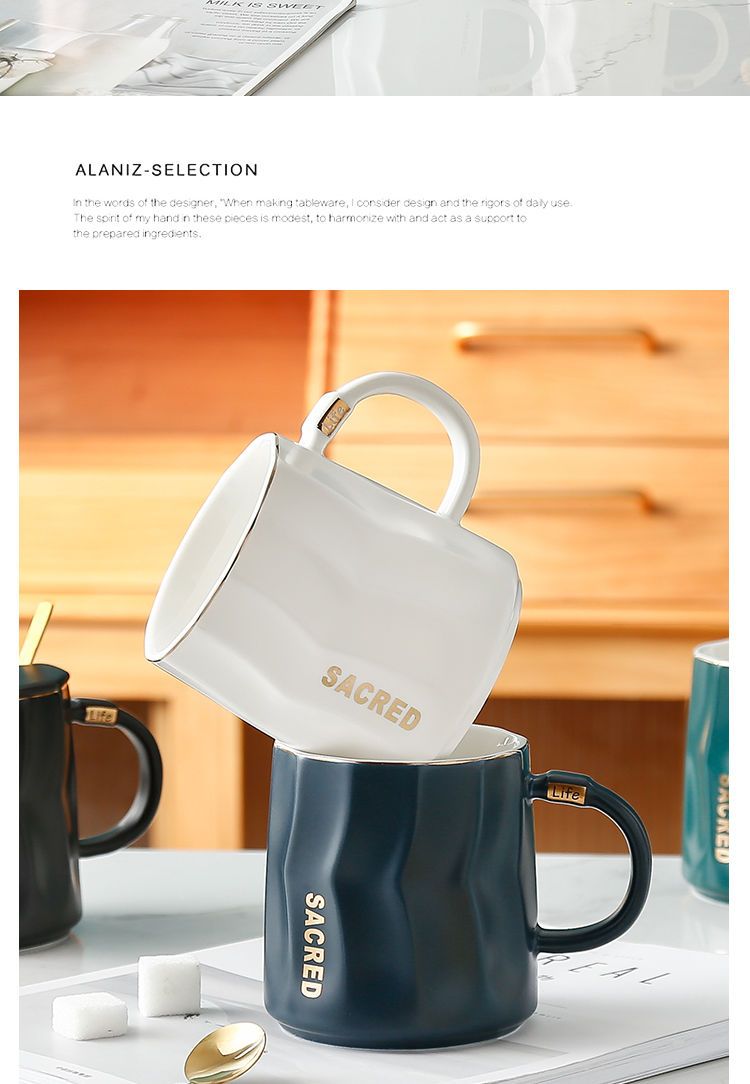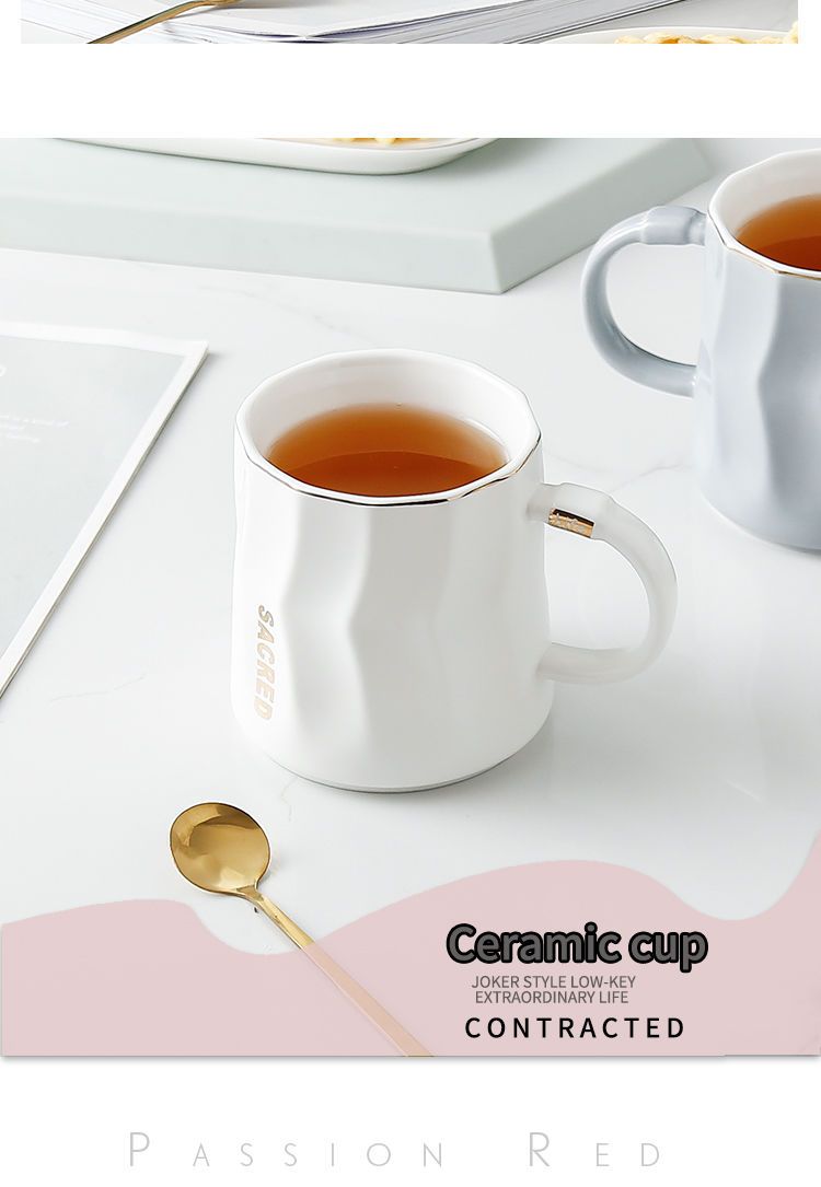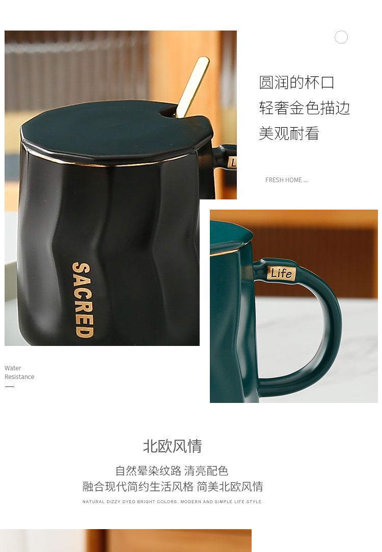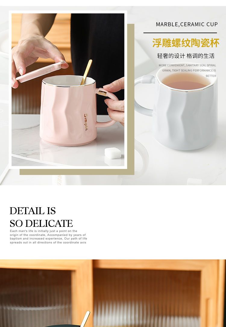 带盖马克杯子ins风男生家用女办公室咖啡陶瓷情侣款喝水杯高级感