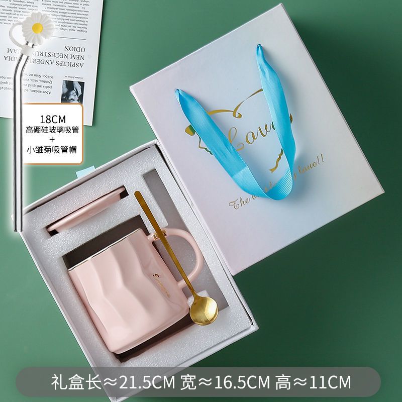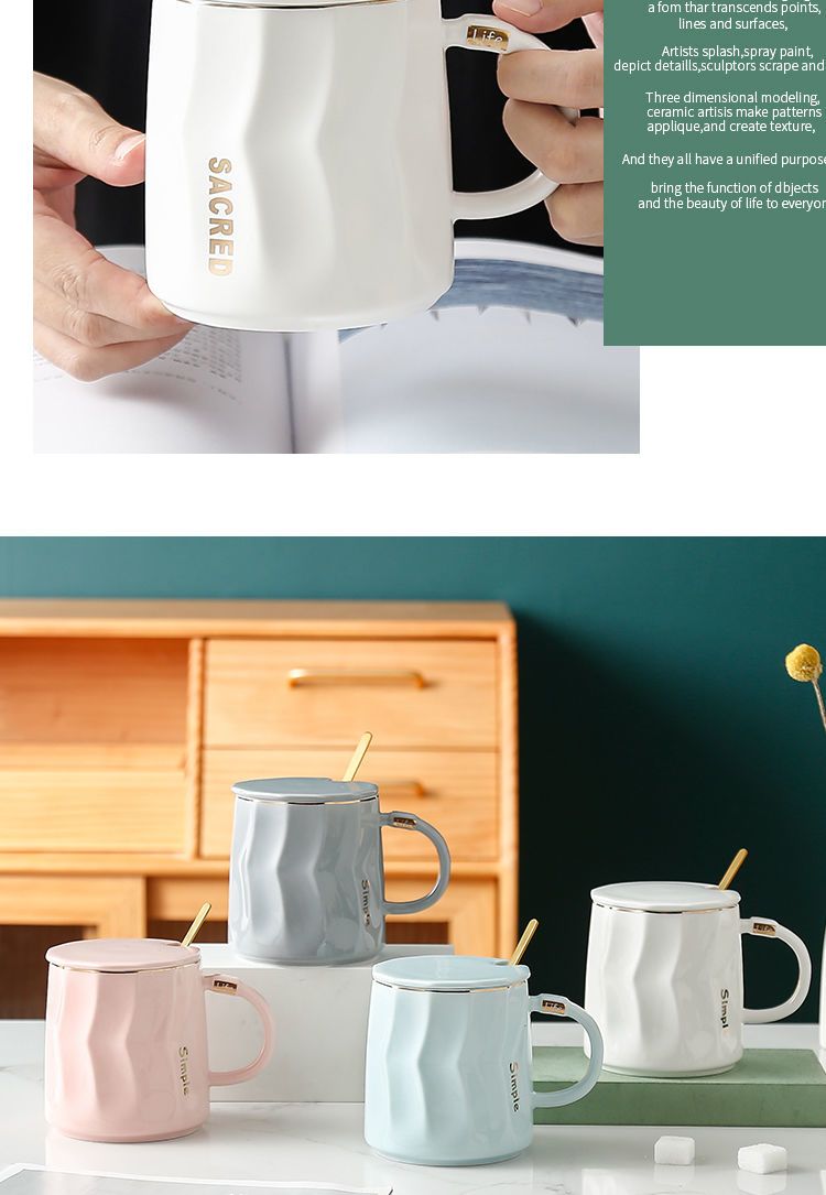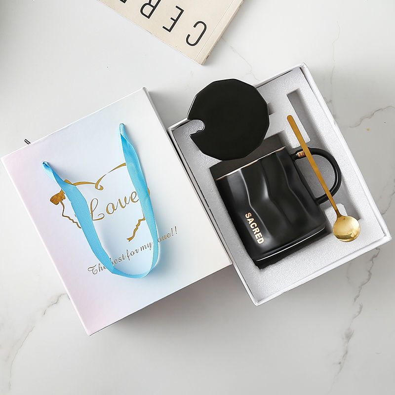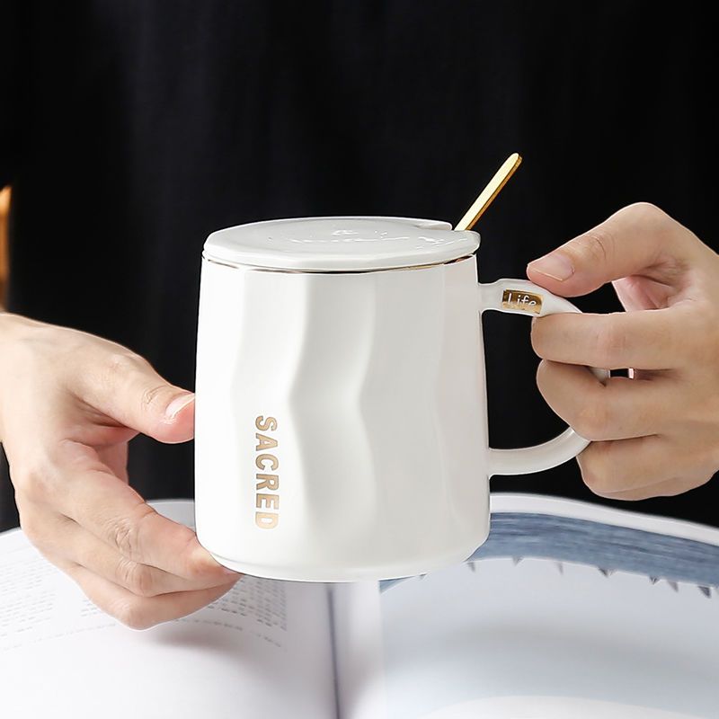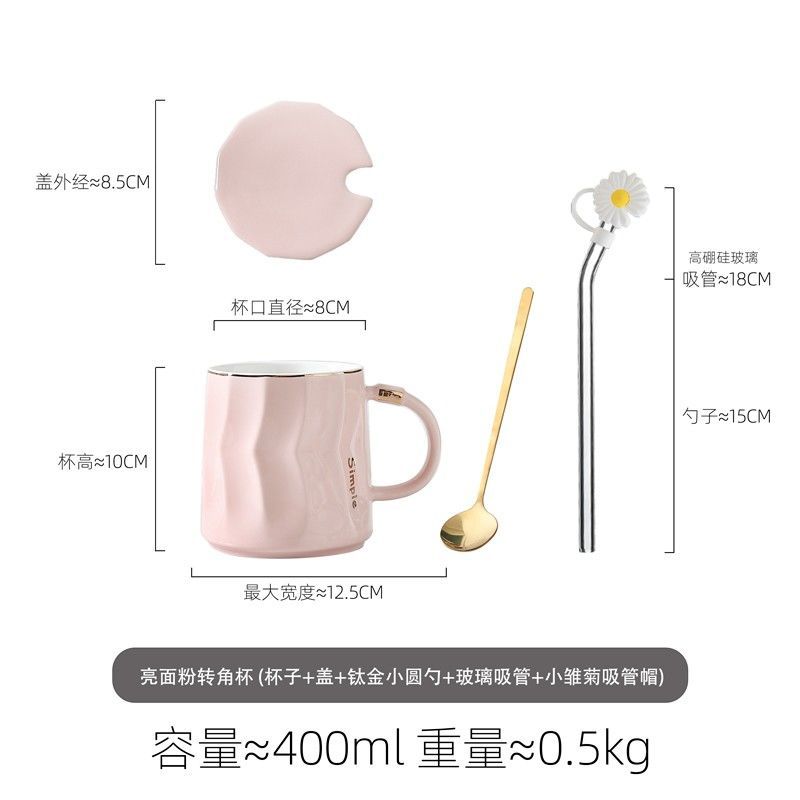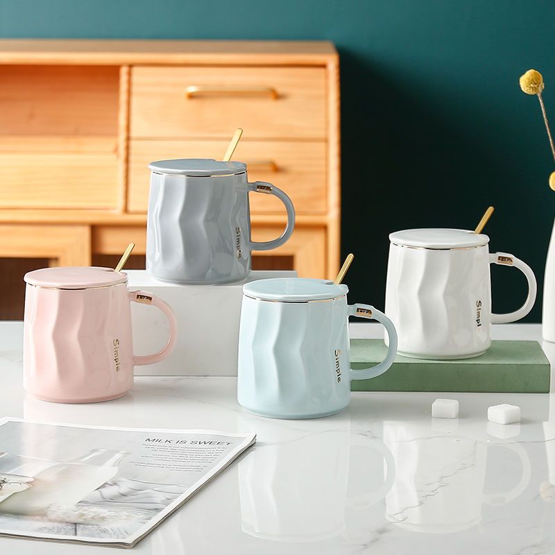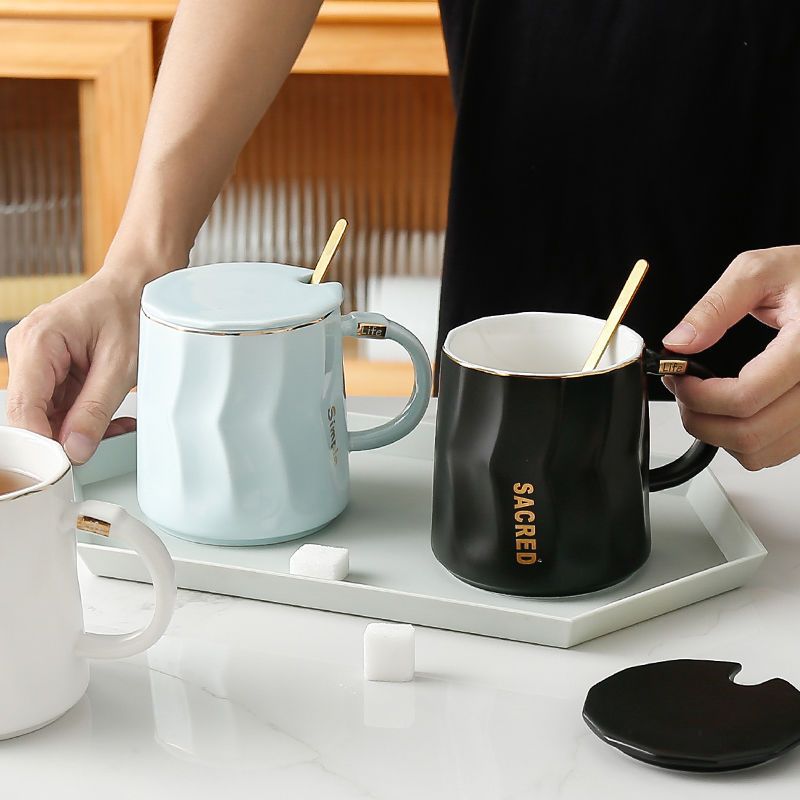 带盖马克杯子ins风男生家用女办公室咖啡陶瓷情侣款喝水杯高级感
