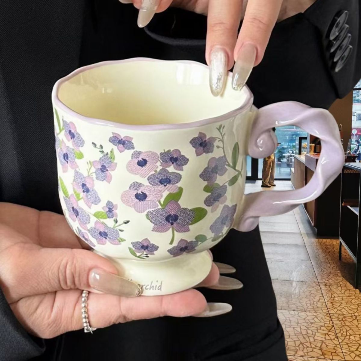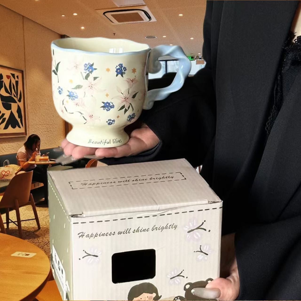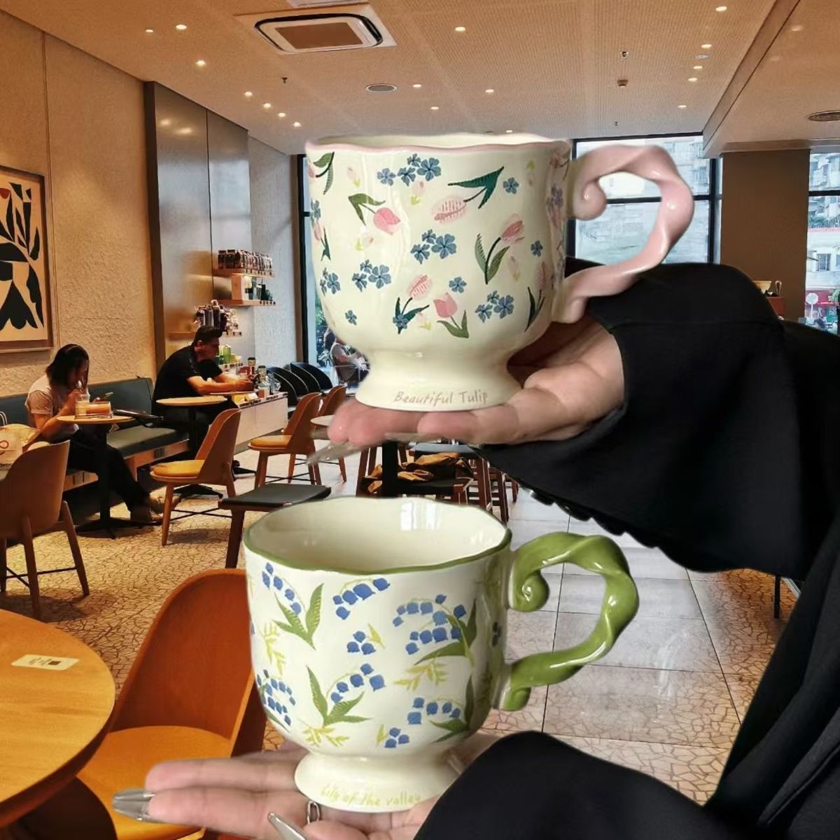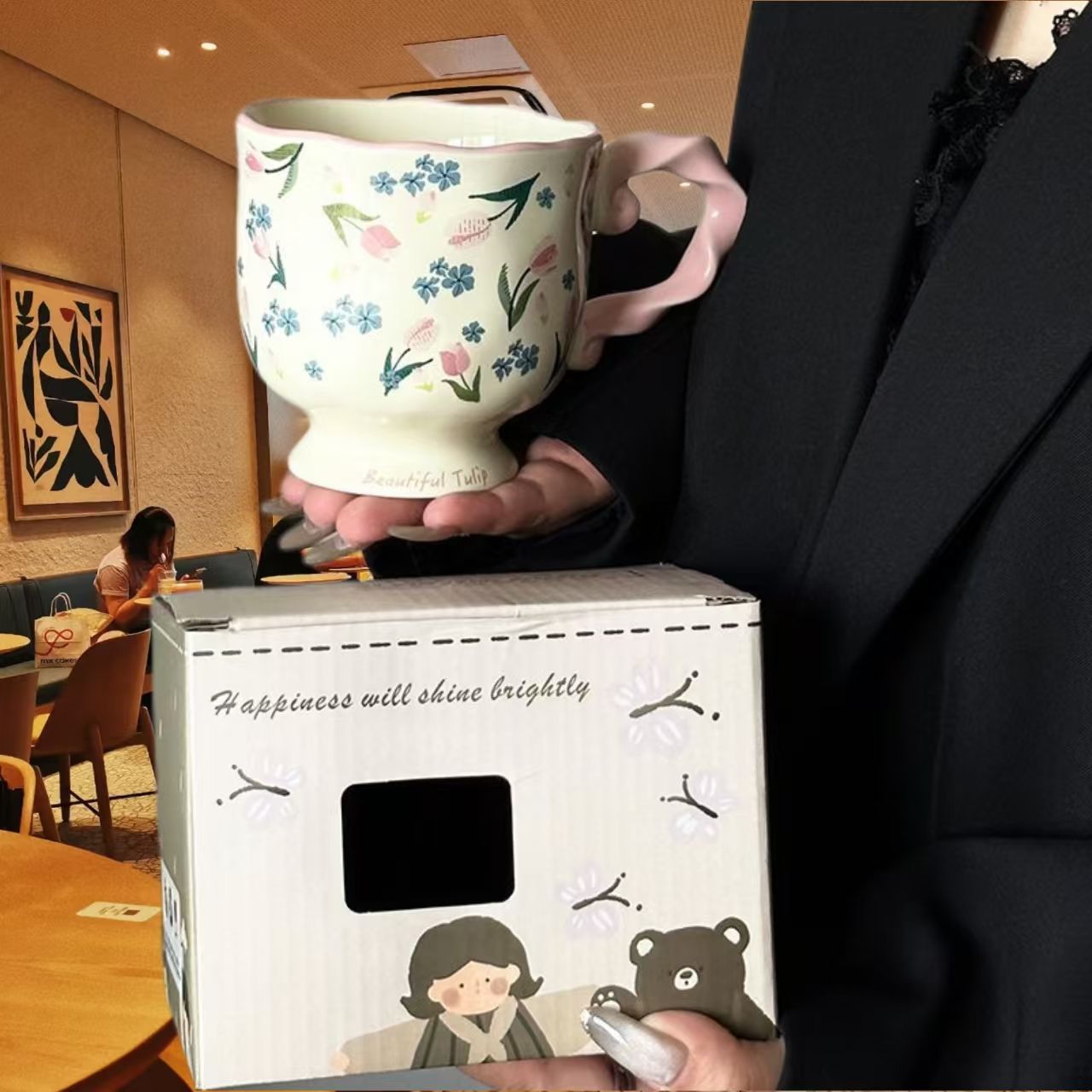 ins碎花高级陶瓷复古马克杯家用陶瓷咖啡杯高颜值水杯生日礼物