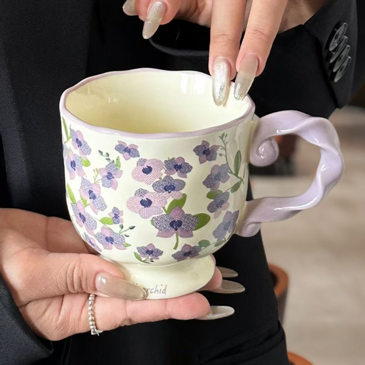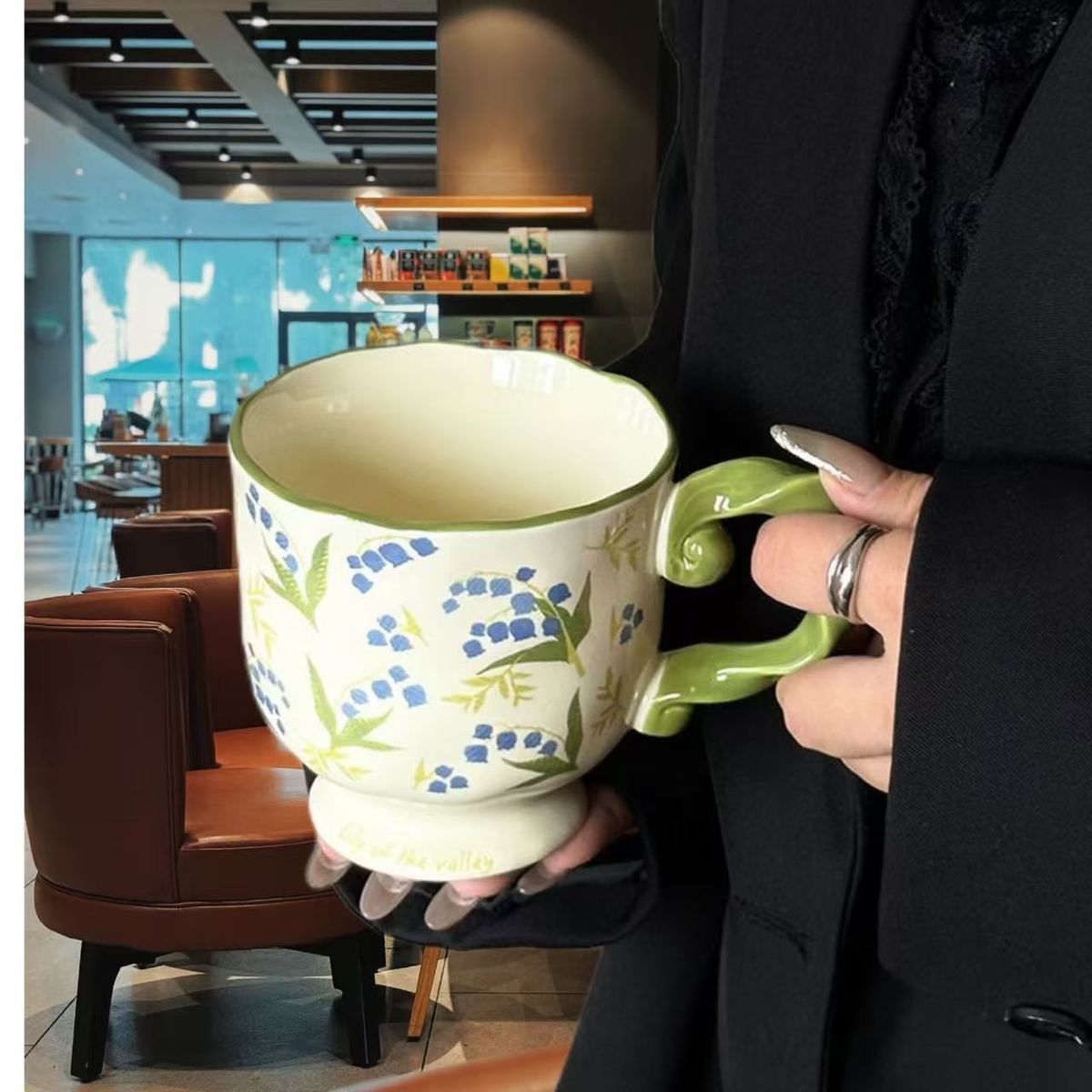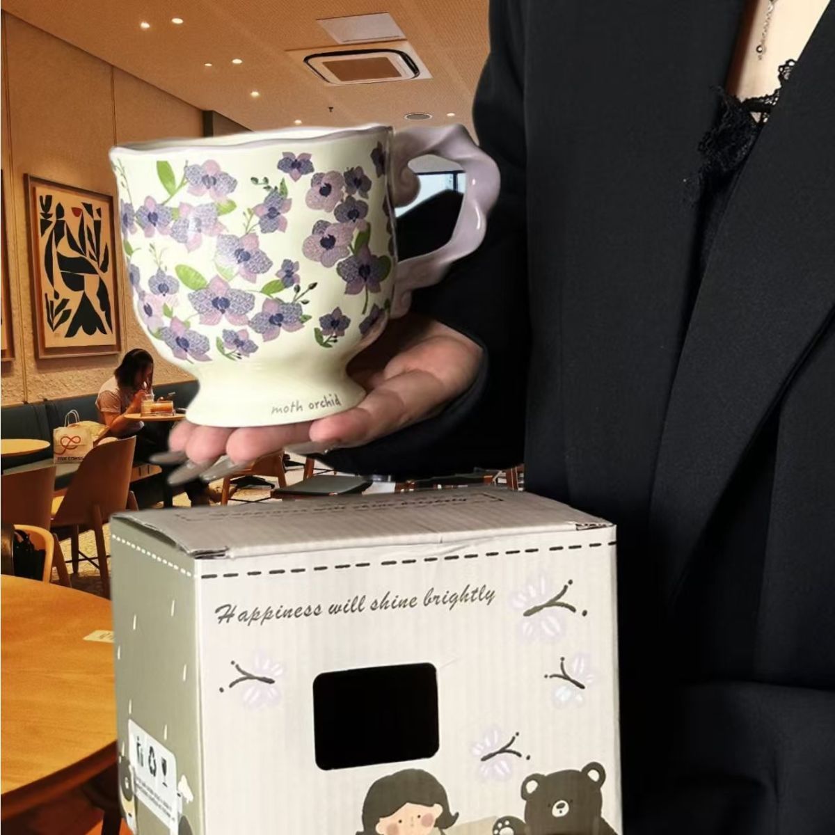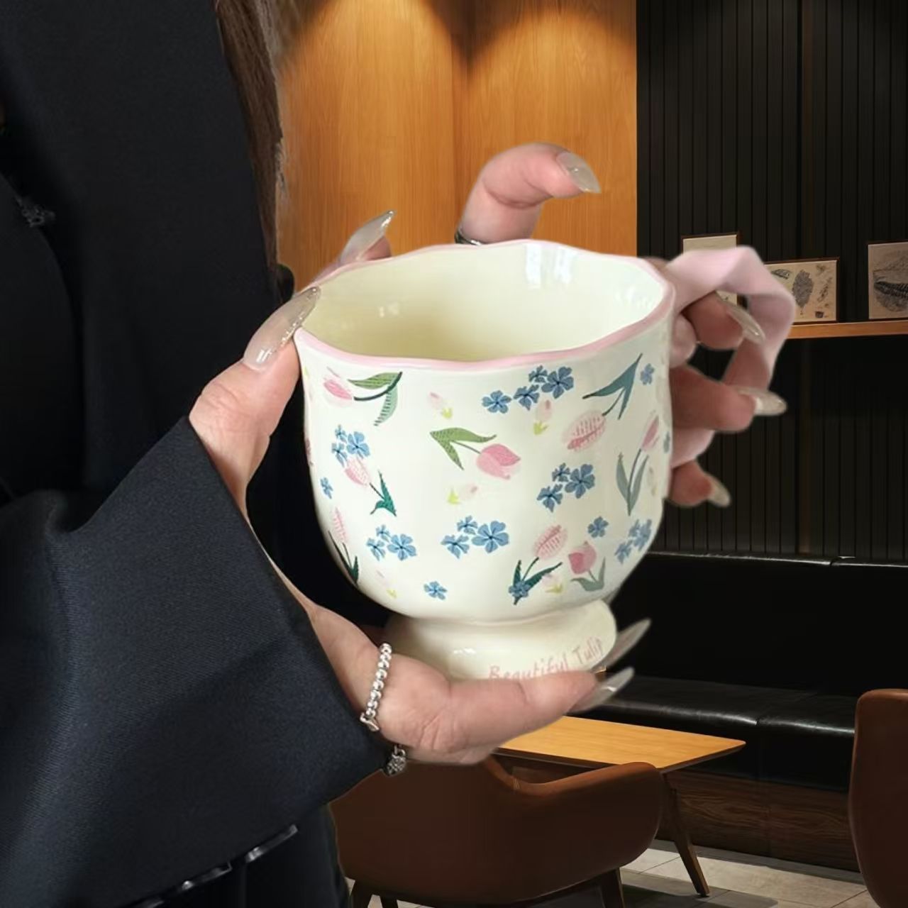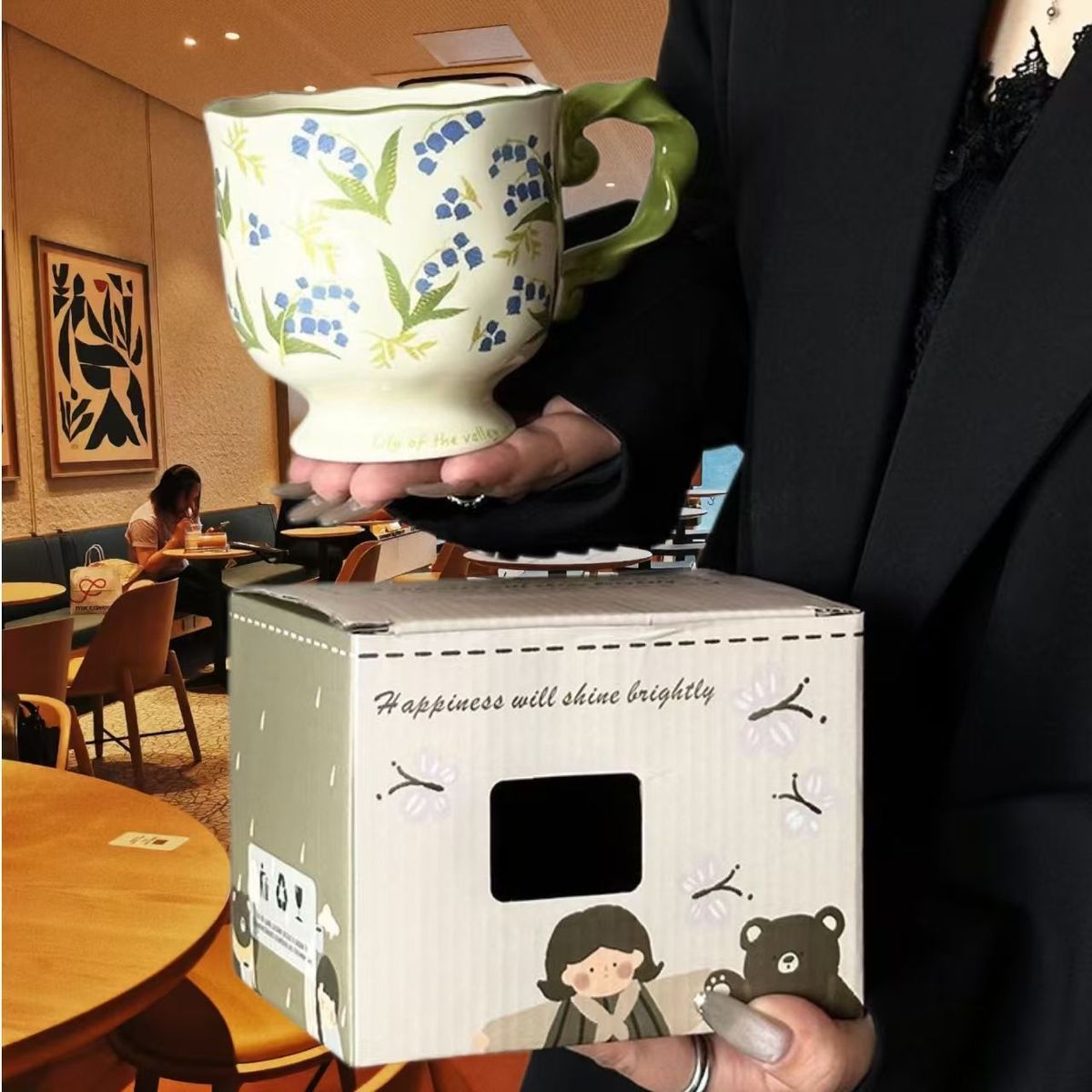 ins碎花高级陶瓷复古马克杯家用陶瓷咖啡杯高颜值水杯生日礼物