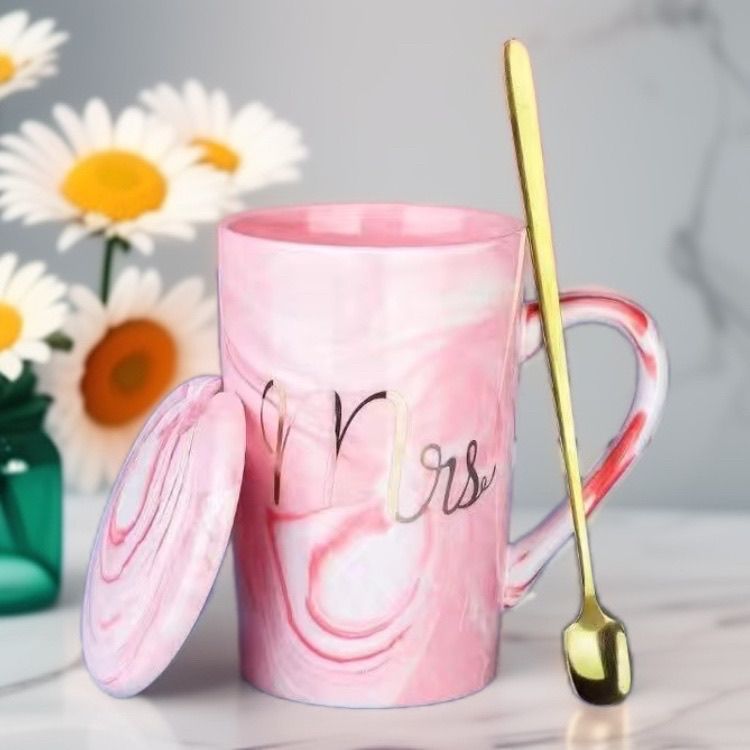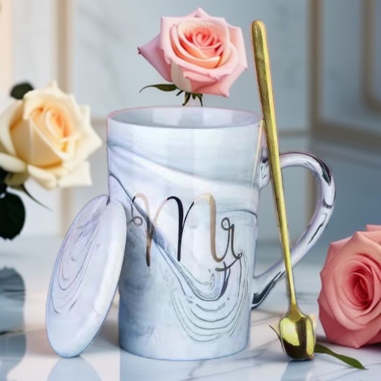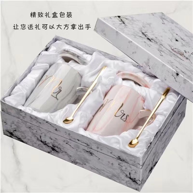 创意陶瓷杯子男女士高档水杯精致情侣水杯马克杯礼盒套装带盖带勺