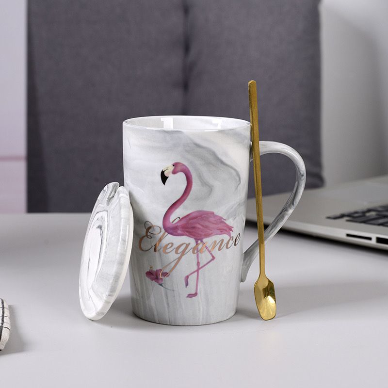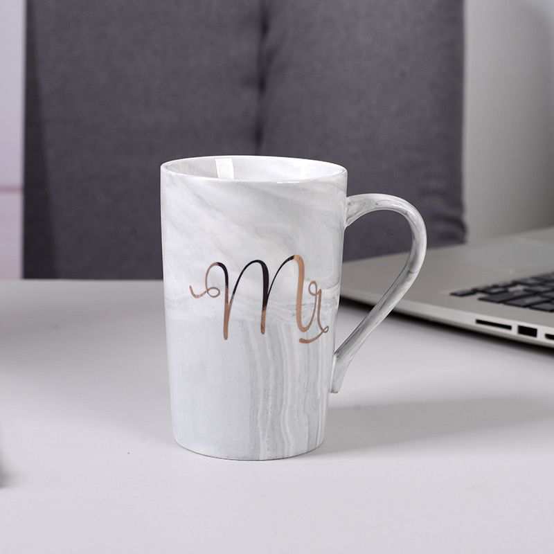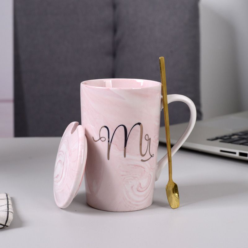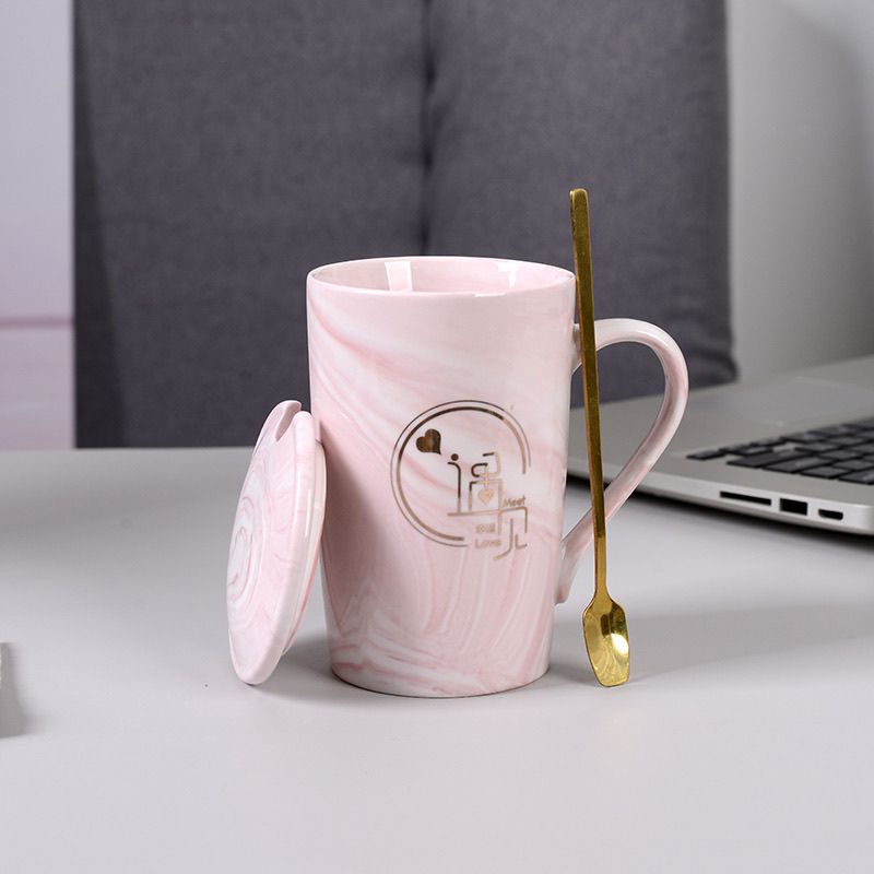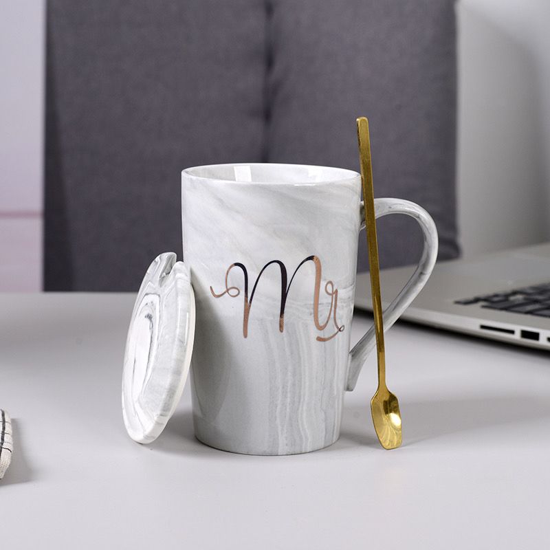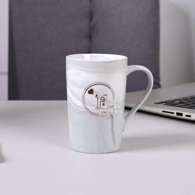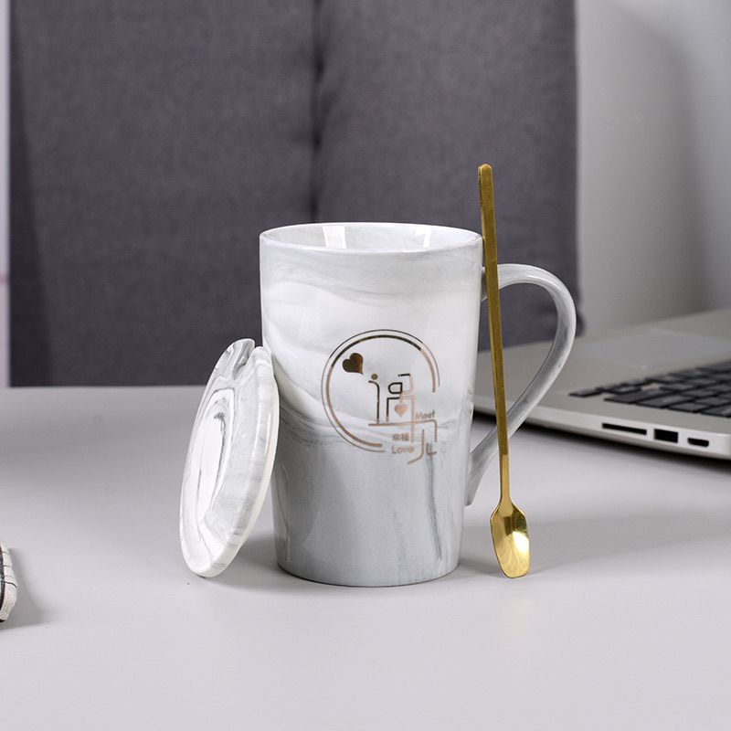 简约杯子创意陶瓷陶瓷杯水杯大理石马克杯带盖咖啡杯情侣伴手家用