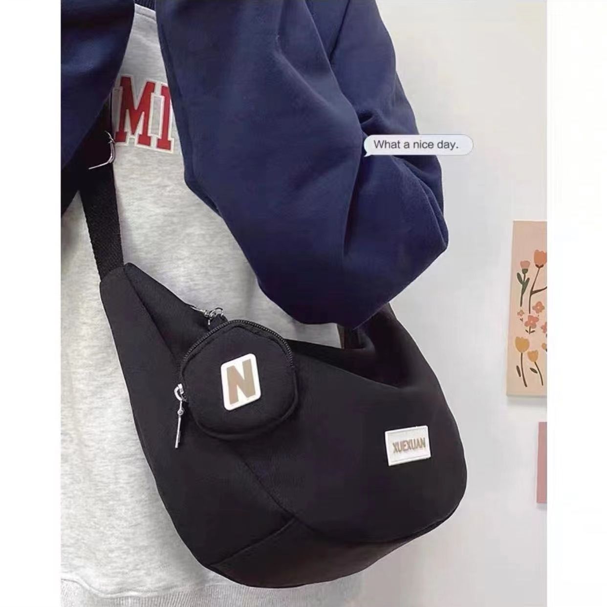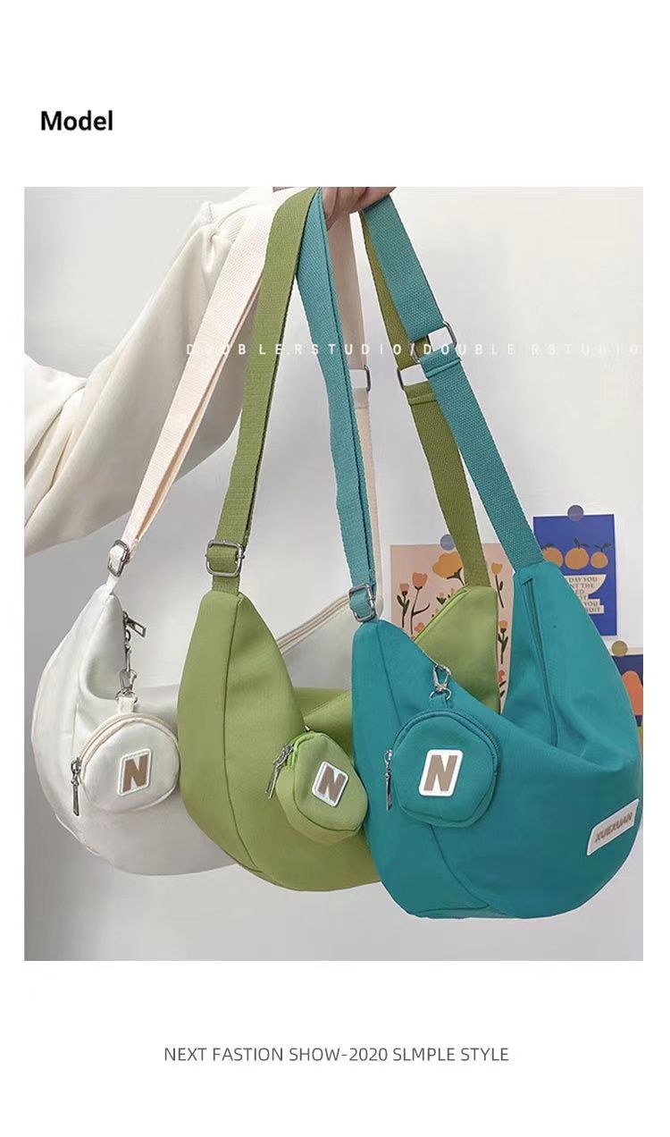 尼龙防水帆布包时尚潮包春夏森系文艺饺子包大学生上课单肩斜挎包