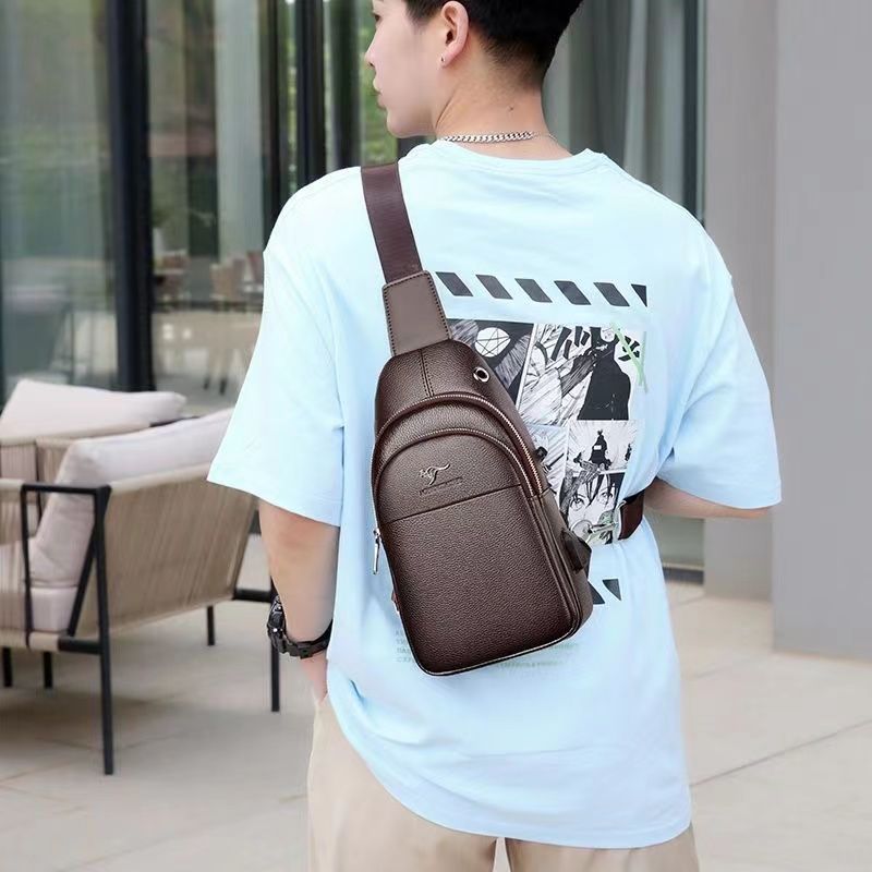 真皮质感男士斜挎包新款斜跨包胸包清仓多功能大容量新款耐磨外卖