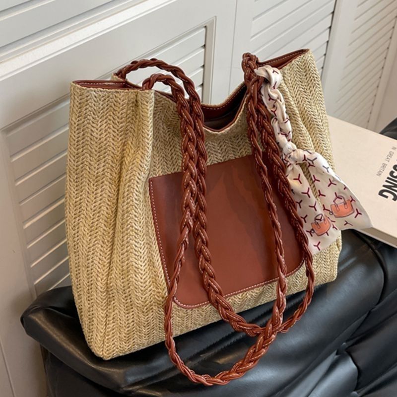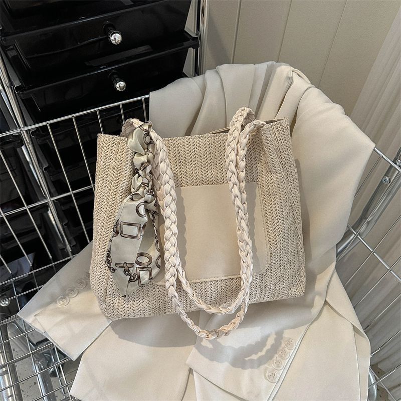 | 米白色草编包有丝巾 | USD $3.28 | 999999 piece available |
