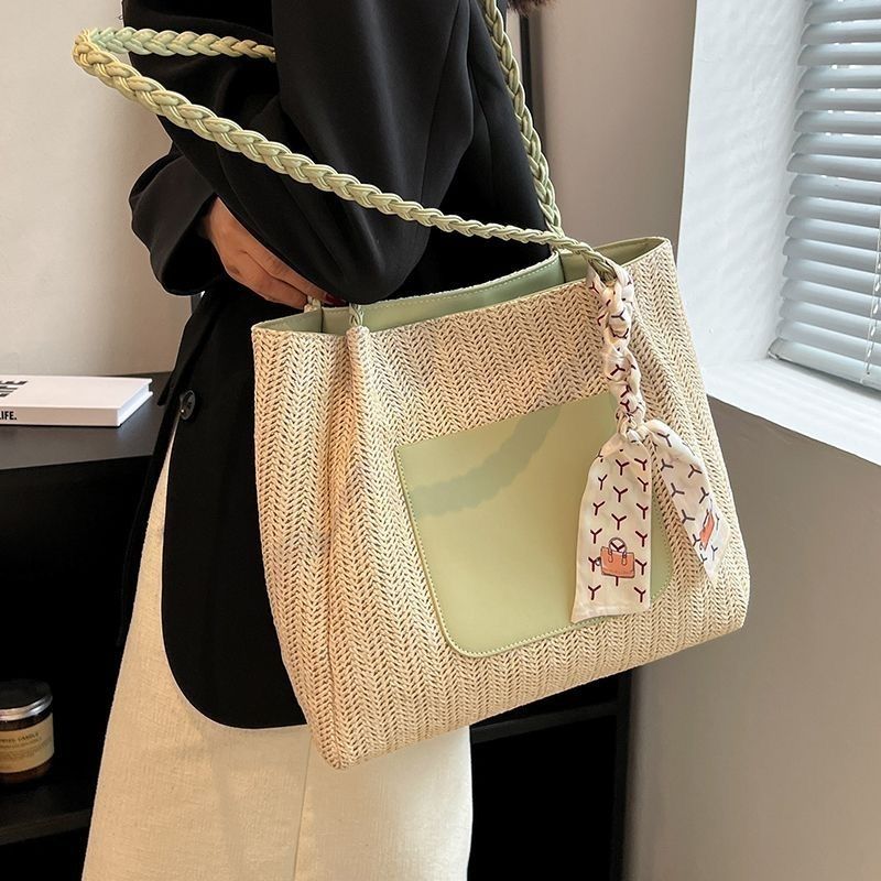 | green straw bag with silk scarf(绿色草编包有丝巾) | USD $3.28 | 999999 piece available |