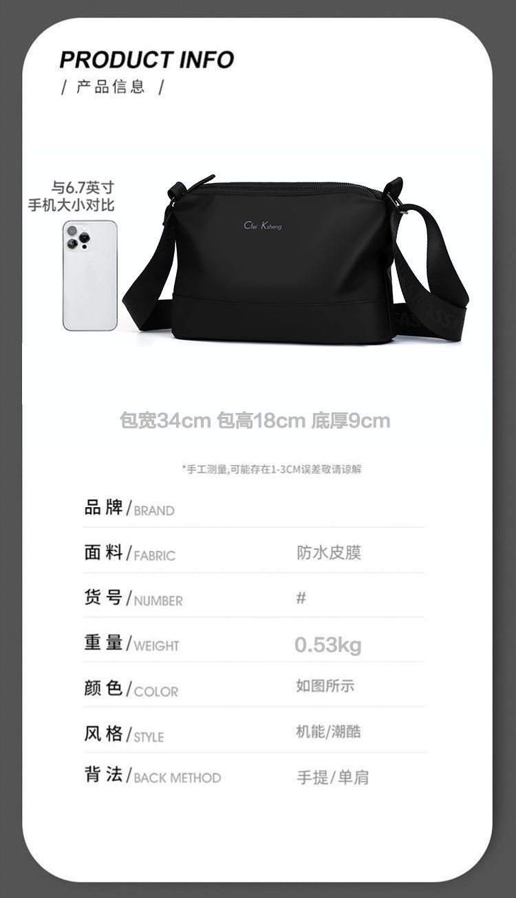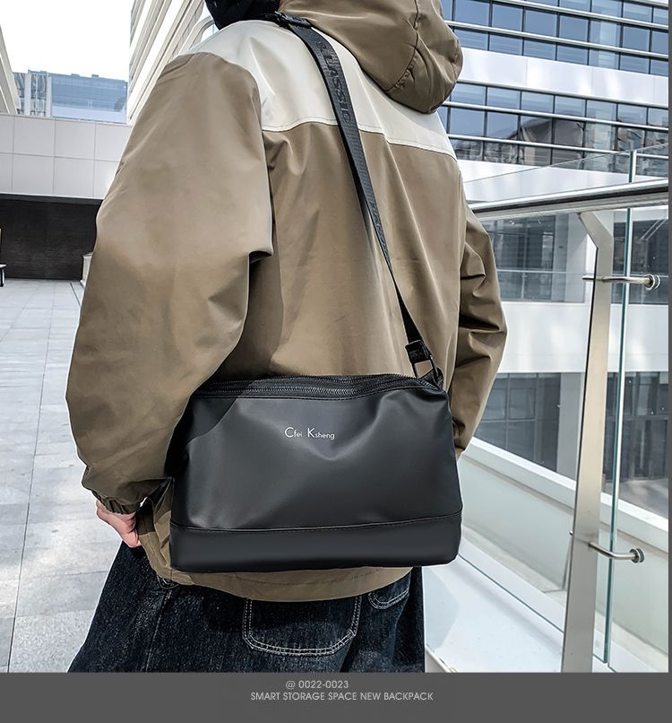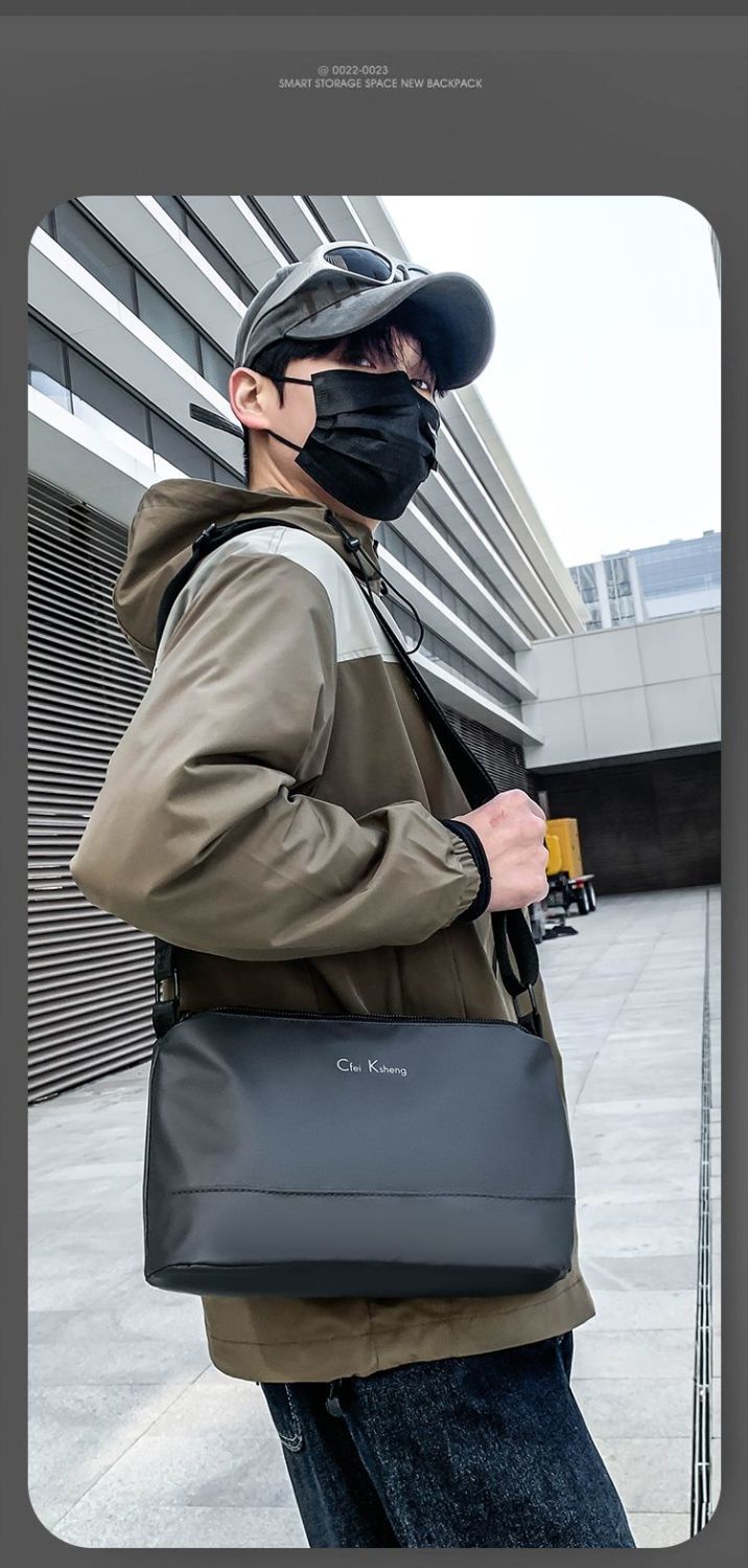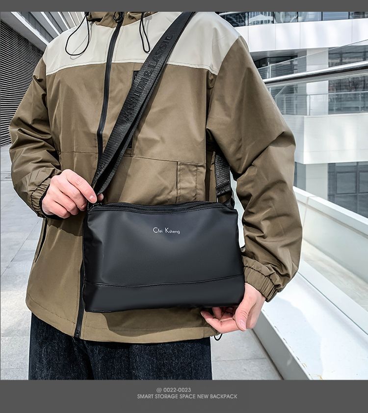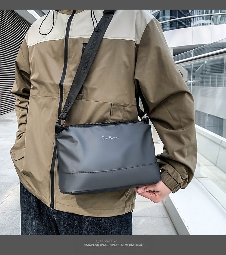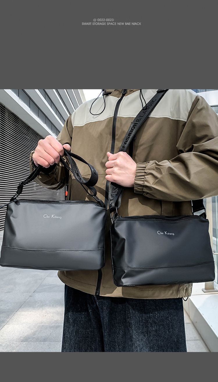(大号)欧美时尚潮牌男士皮膜三层大容量单肩斜跨包通勤小背包