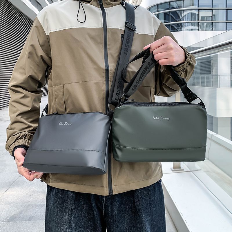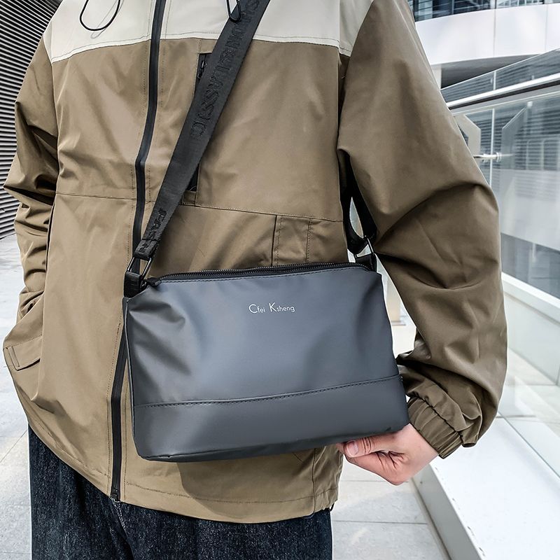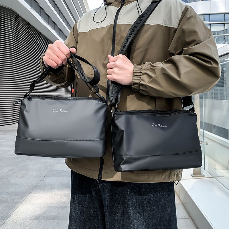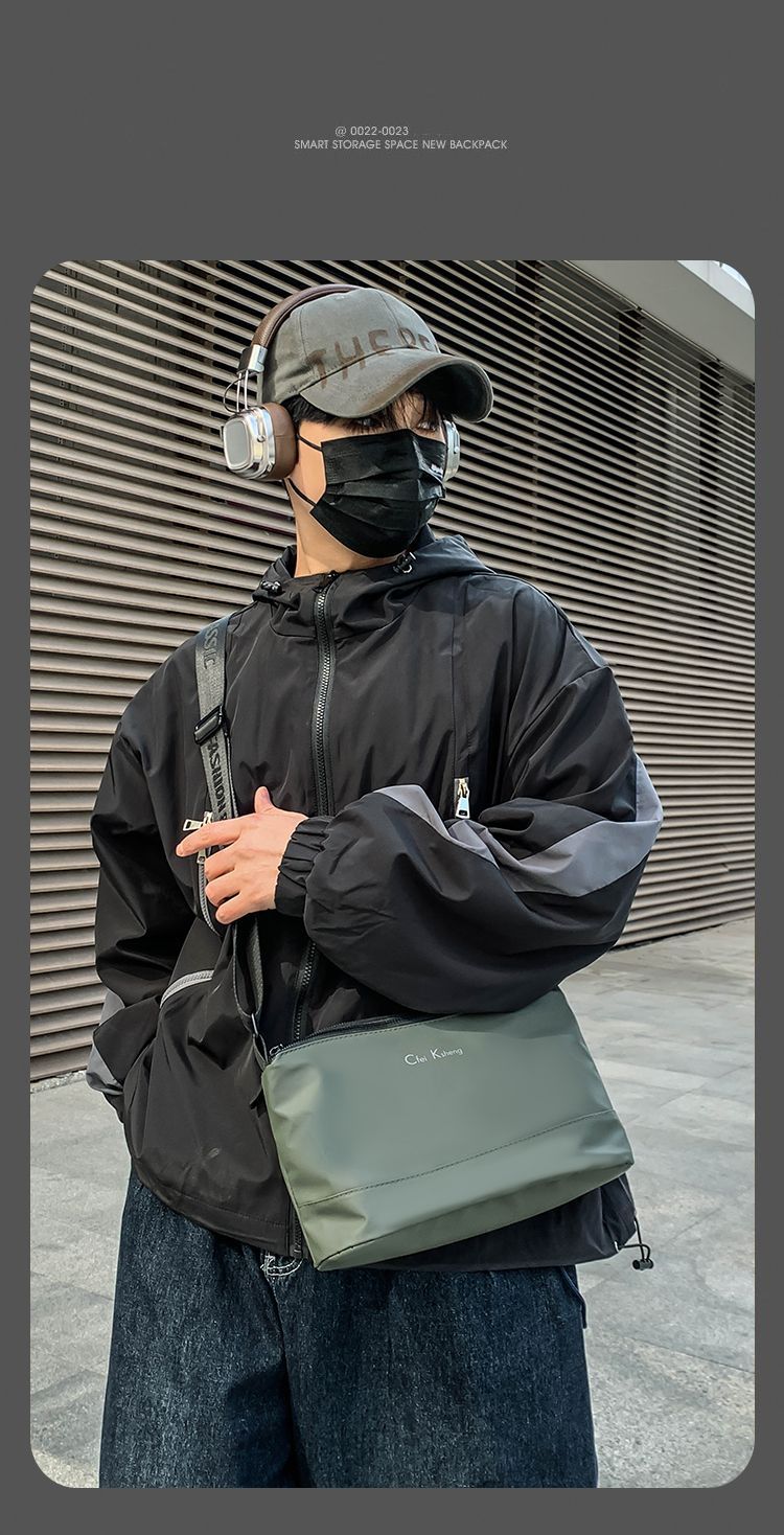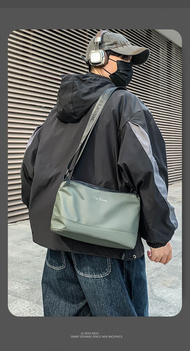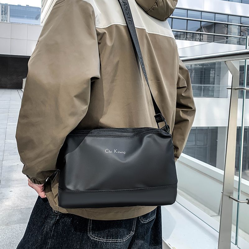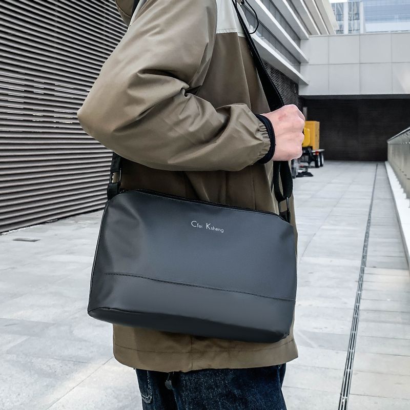 (大号)欧美时尚潮牌男士皮膜三层大容量单肩斜跨包通勤小背包