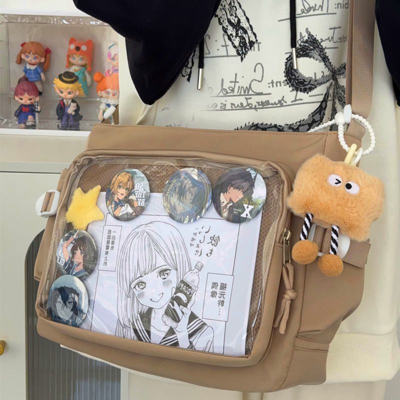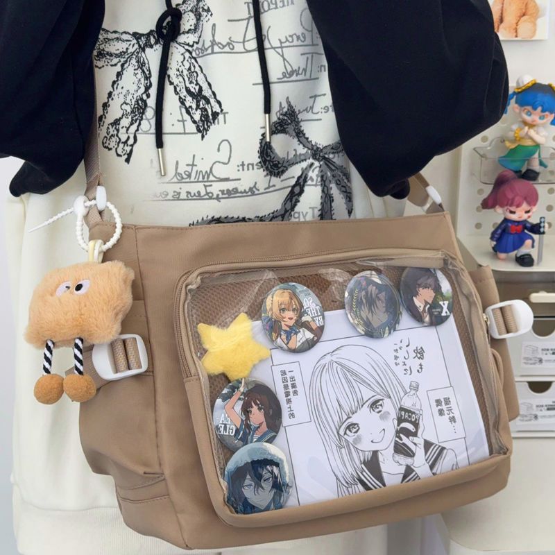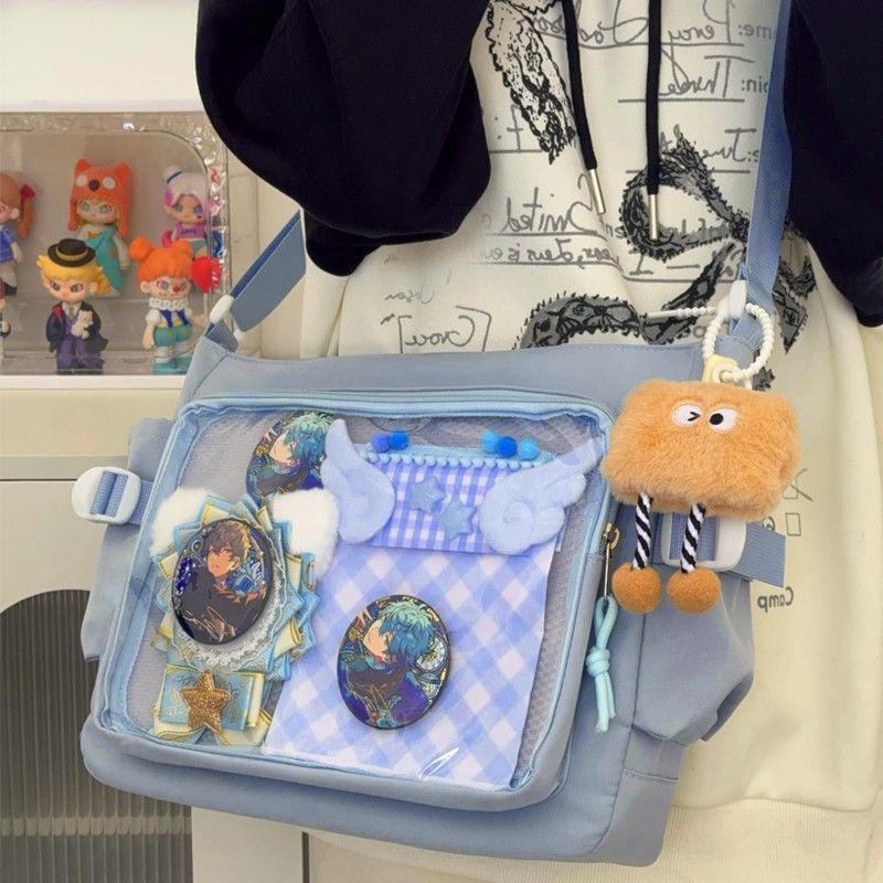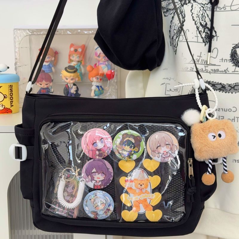 2025学院风百搭上课装书简约大容量邮差包女透明吧唧单肩包痛包