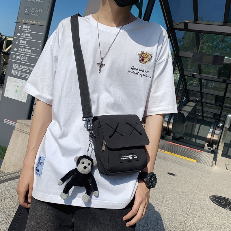 斜挎包男潮牌运动单肩小背包日系街头潮流情侣款休闲包