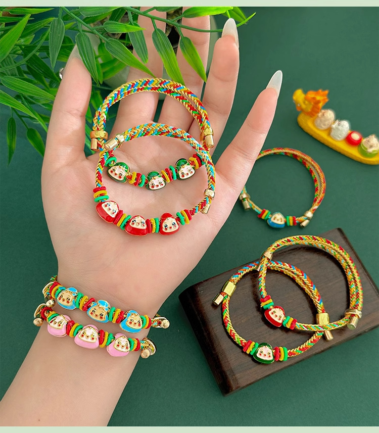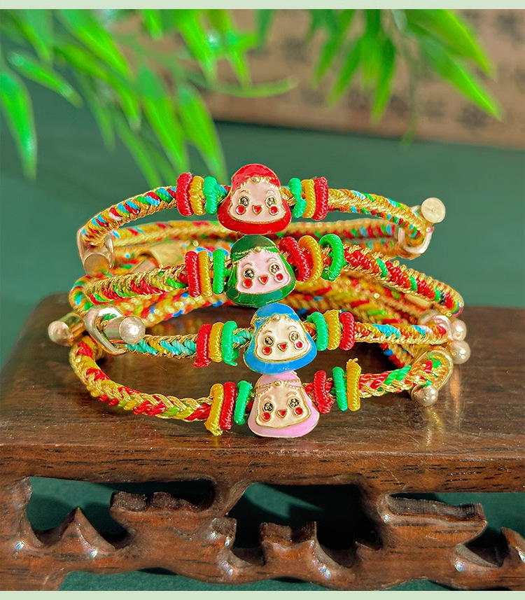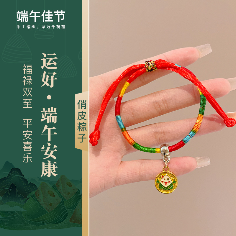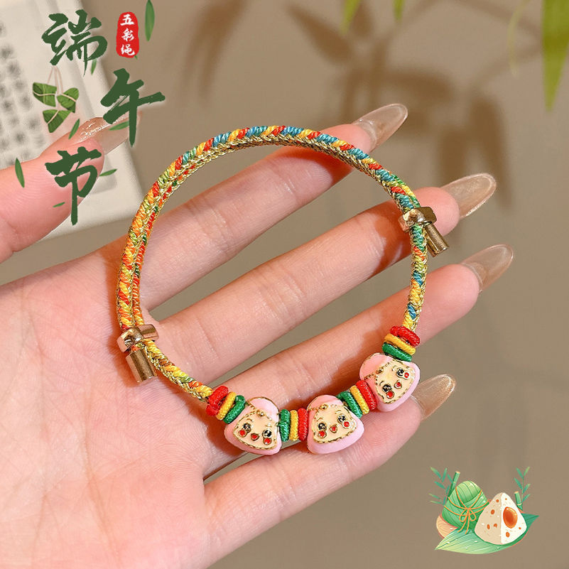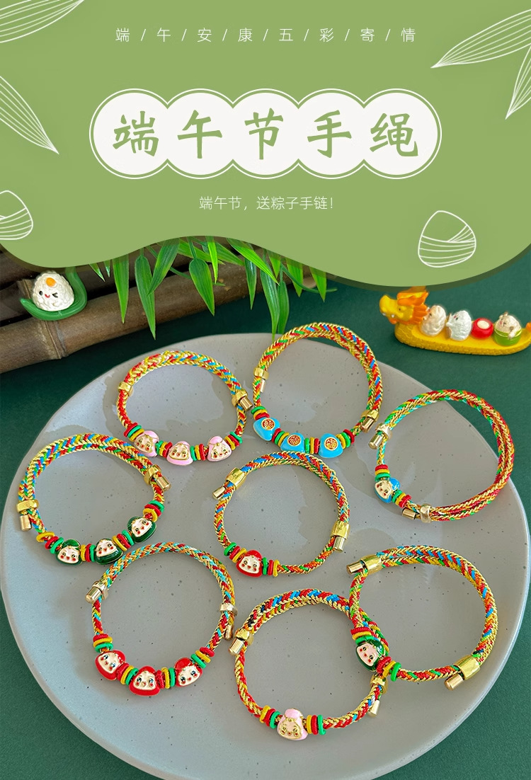 端午节五彩绳手链手工编织老虎头香包小粽子手绳儿童宝宝礼品手饰