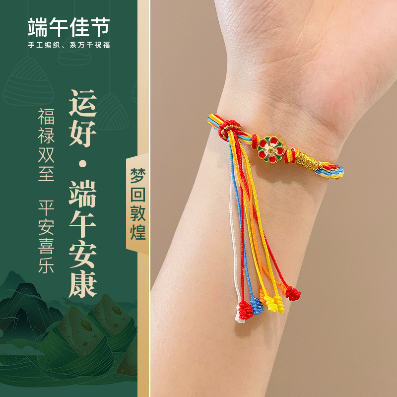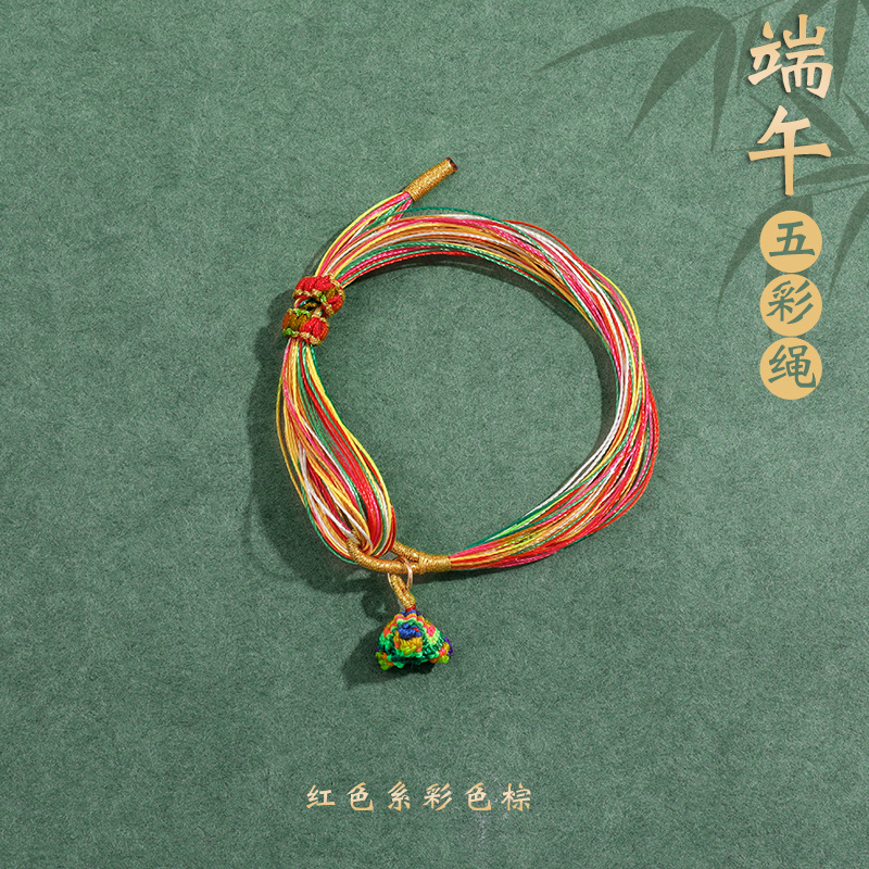 端午节五彩绳手工编织轮回手链大人儿童可调节五色线手绳国风手饰