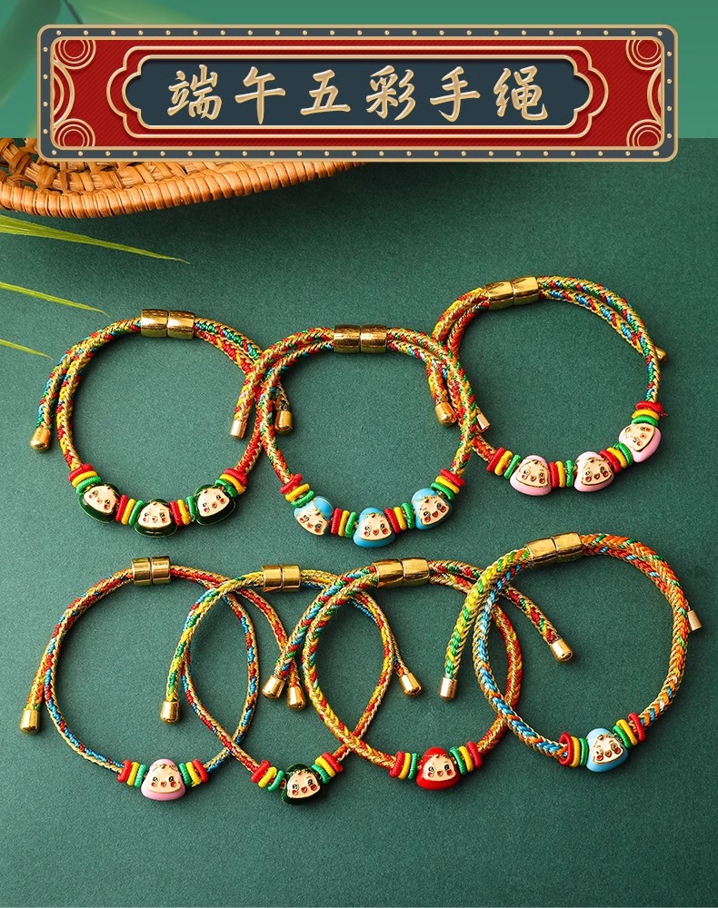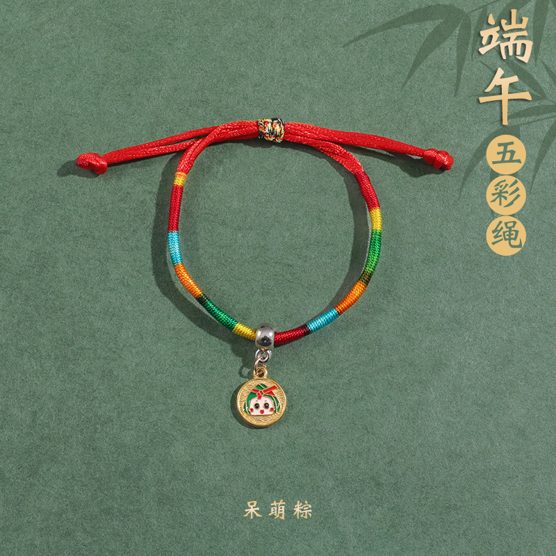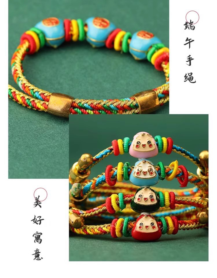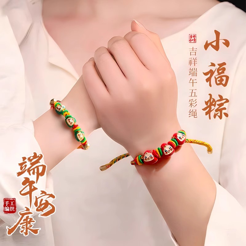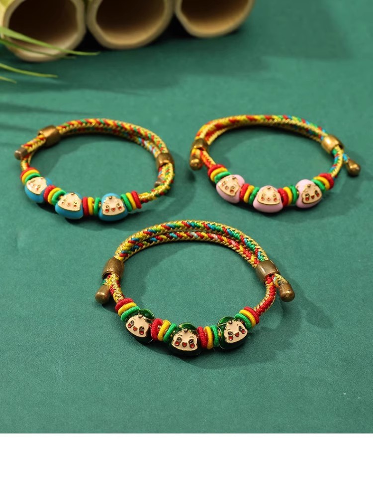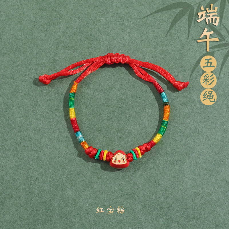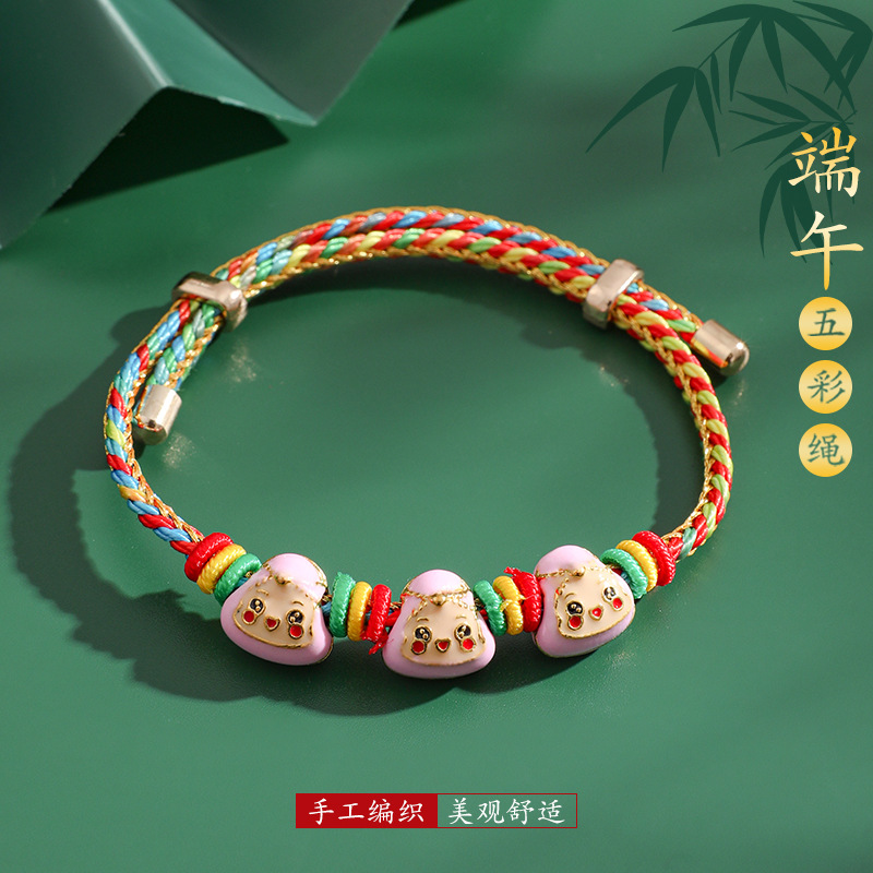 2025新款儿童编织手链端午节五彩绳民族风祈福手饰可爱小粽子手绳