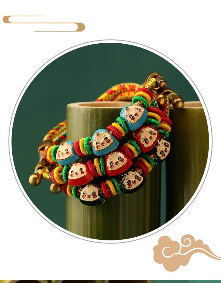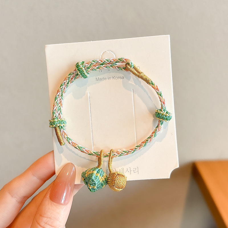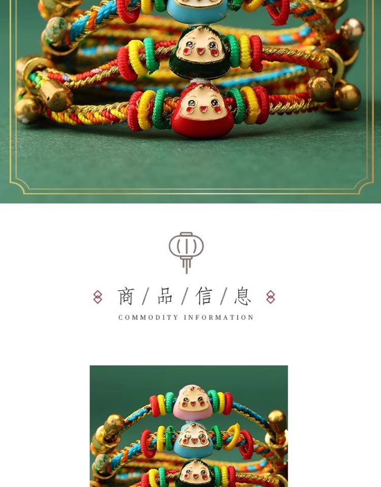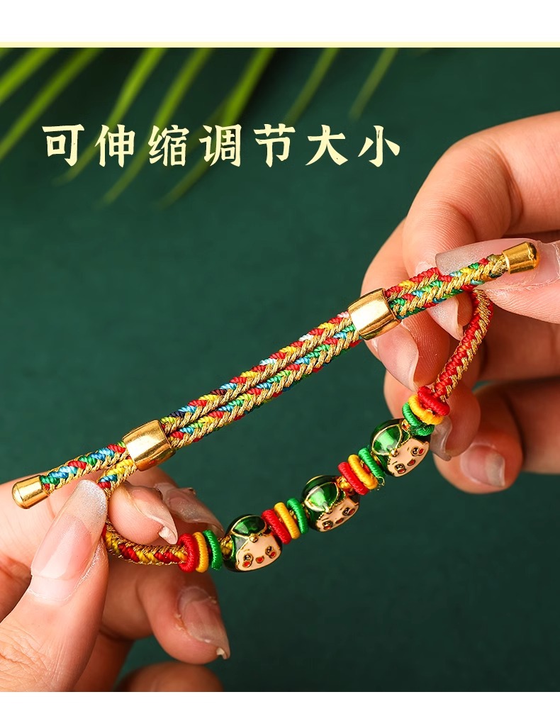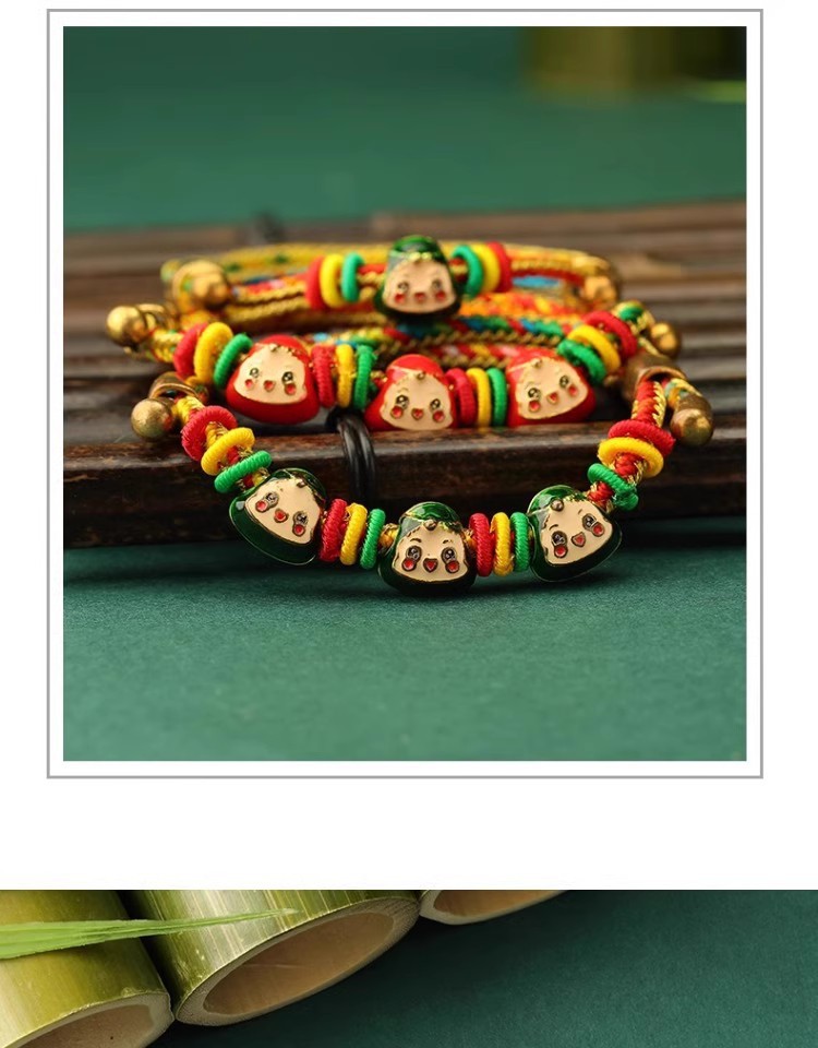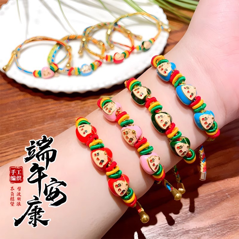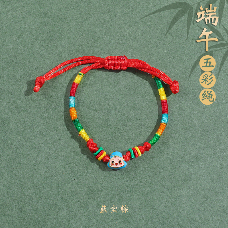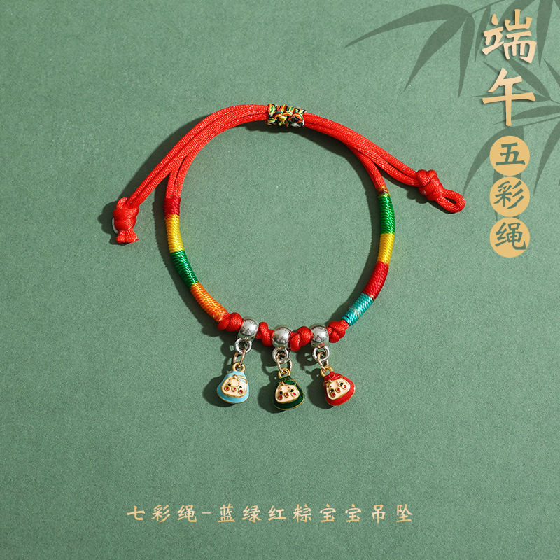 2025新款儿童编织手链端午节五彩绳民族风祈福手饰可爱小粽子手绳