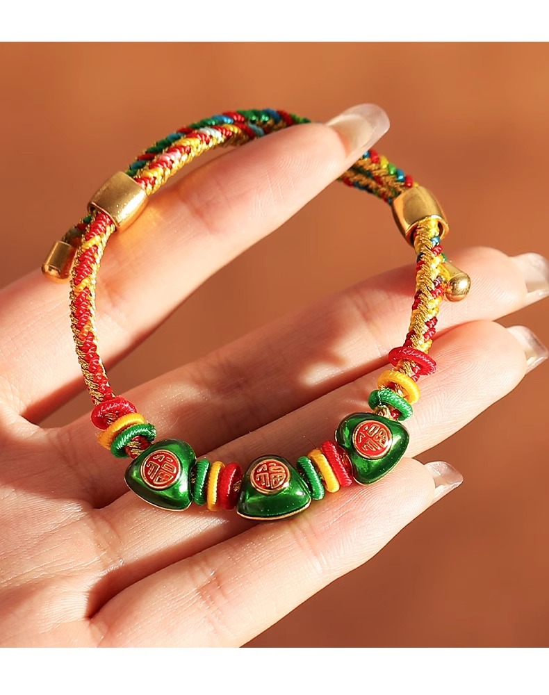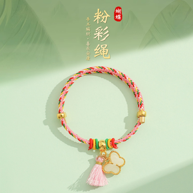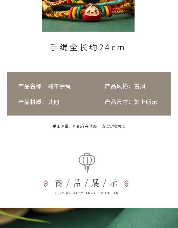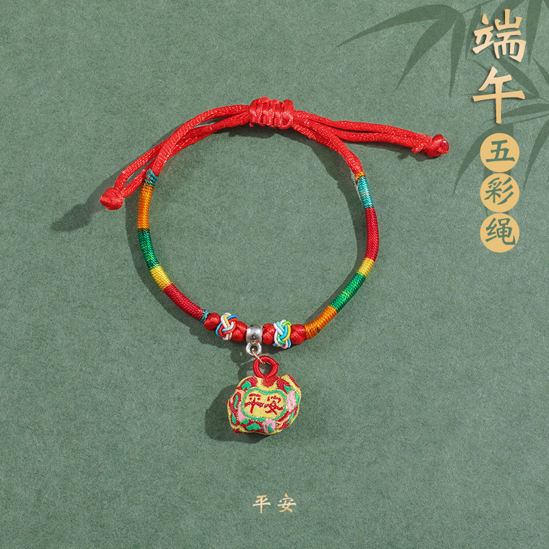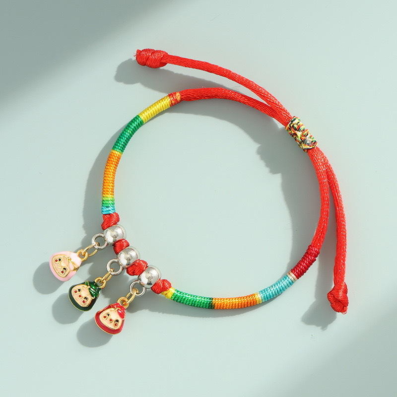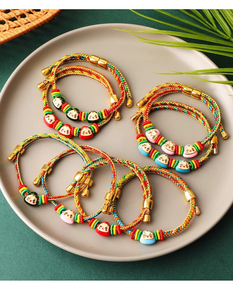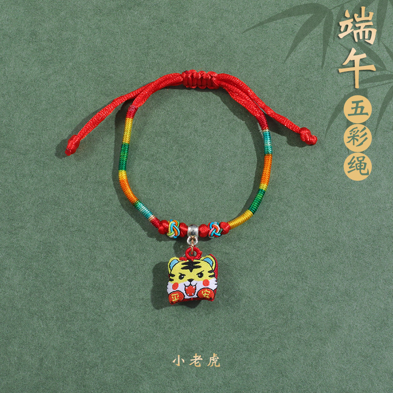 2025新款儿童编织手链端午节五彩绳民族风祈福手饰可爱小粽子手绳