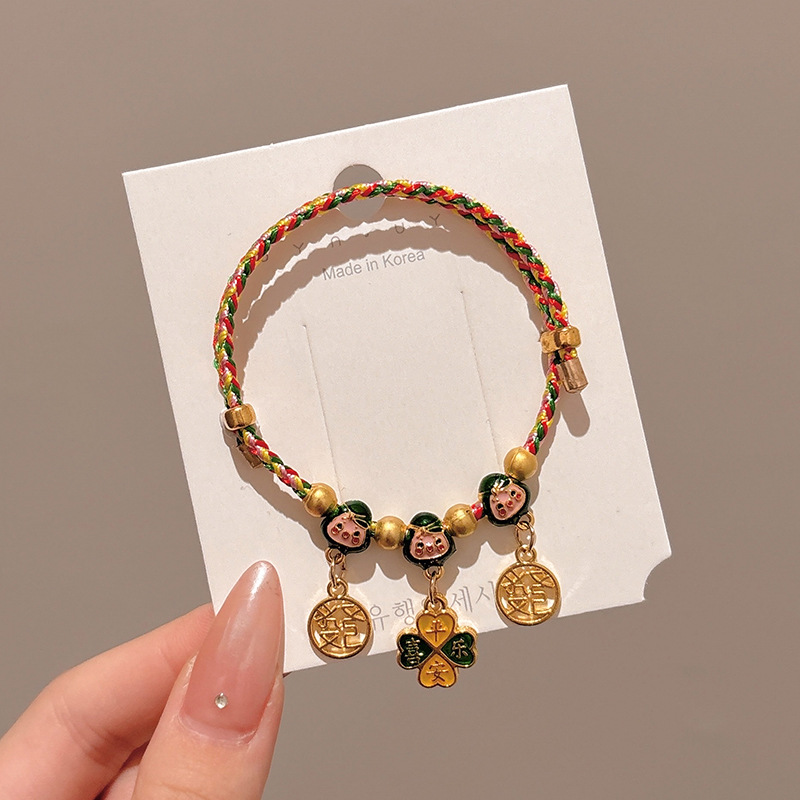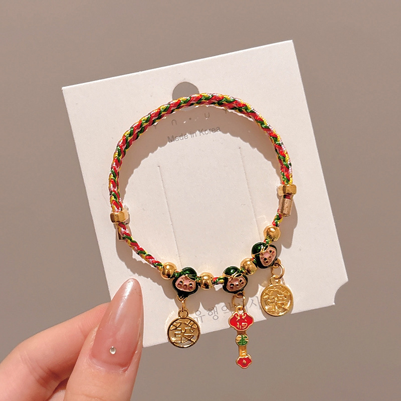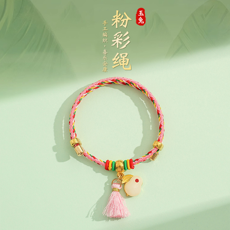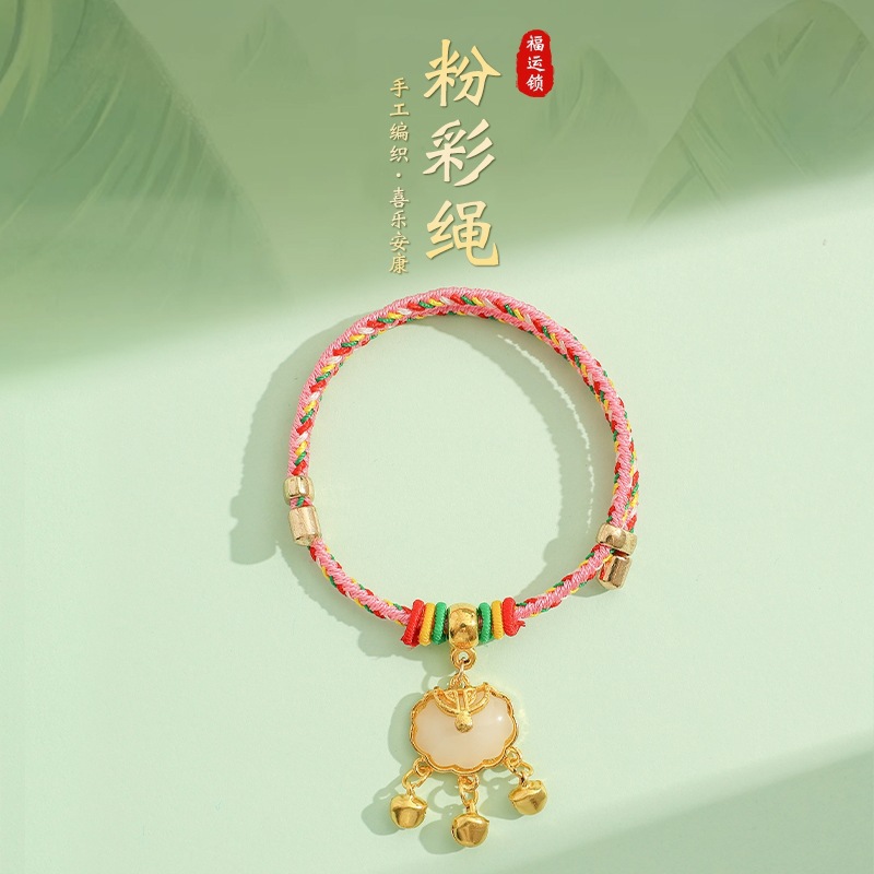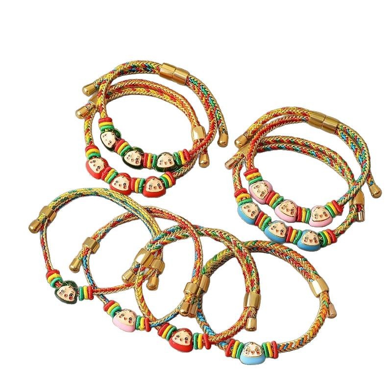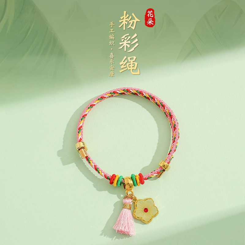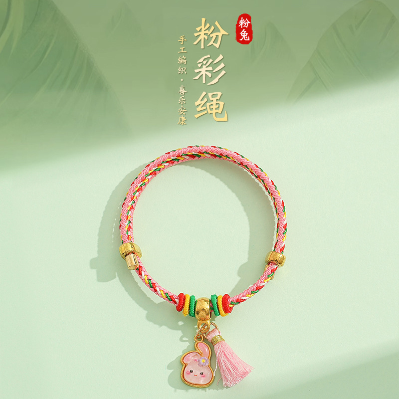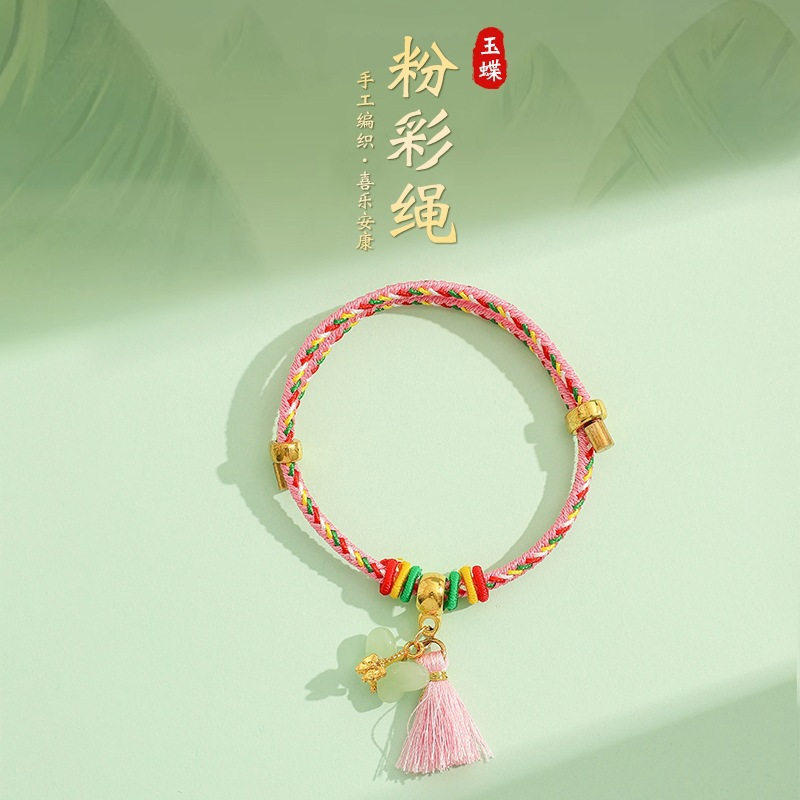 2025新款儿童编织手链端午节五彩绳民族风祈福手饰可爱小粽子手绳